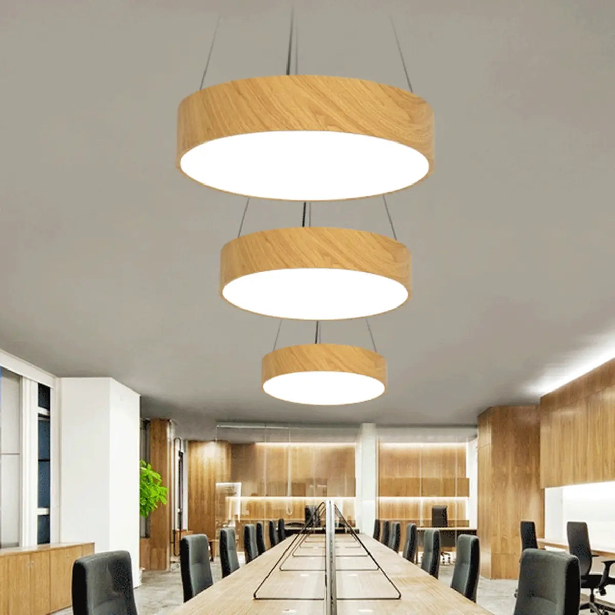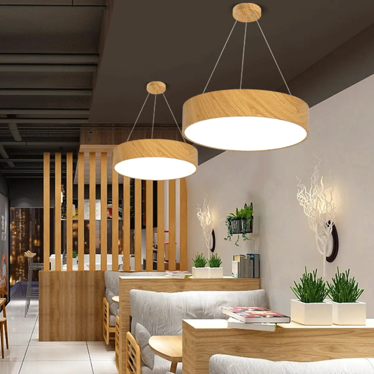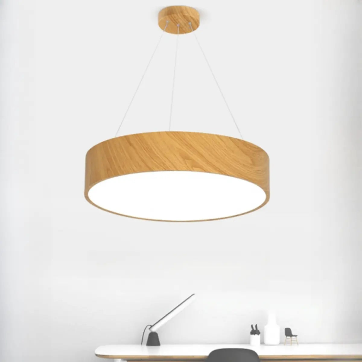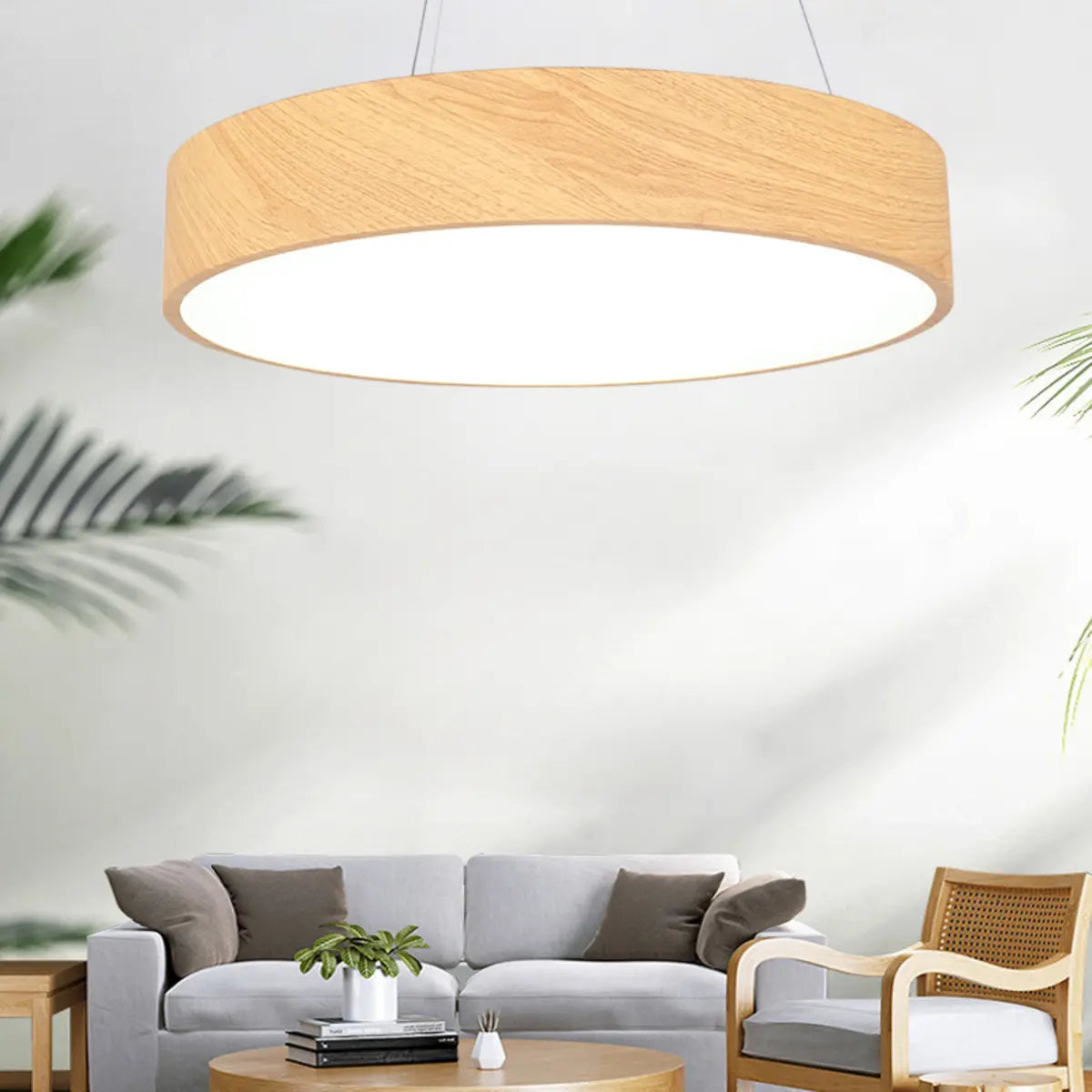 This modern and simple wooden drum-shaped chandelier combines the warm texture of wood with bright and soft light, bringing a comfortable and pleasant atmosphere to the space.