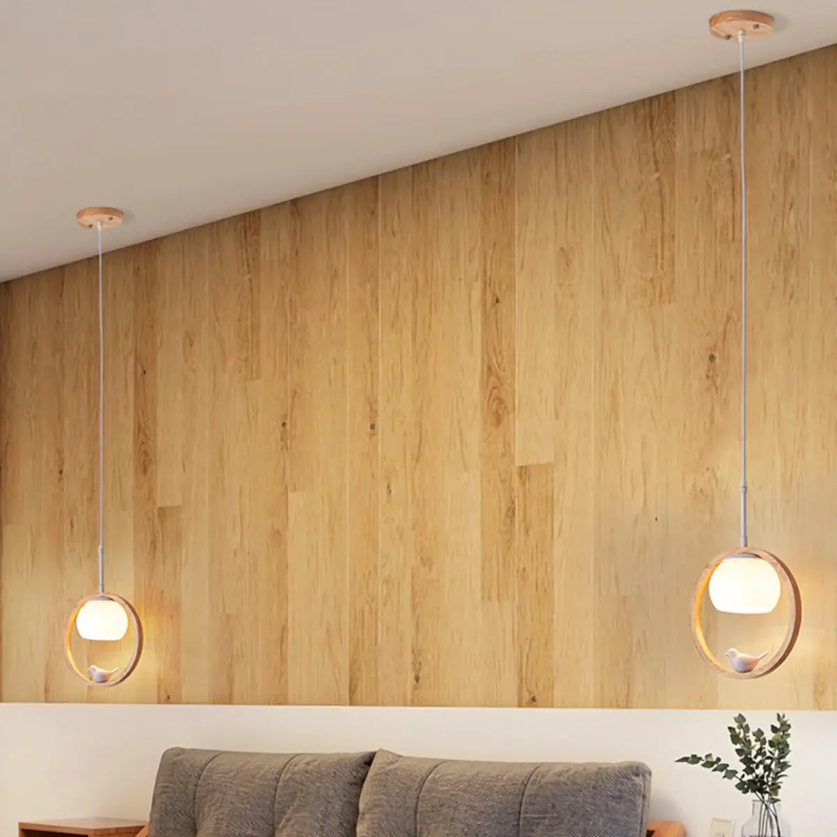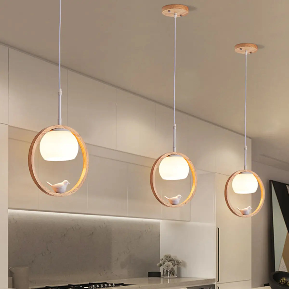 ZOWALA - Simplicity Bird White Dome Wood Ring Pendant Light