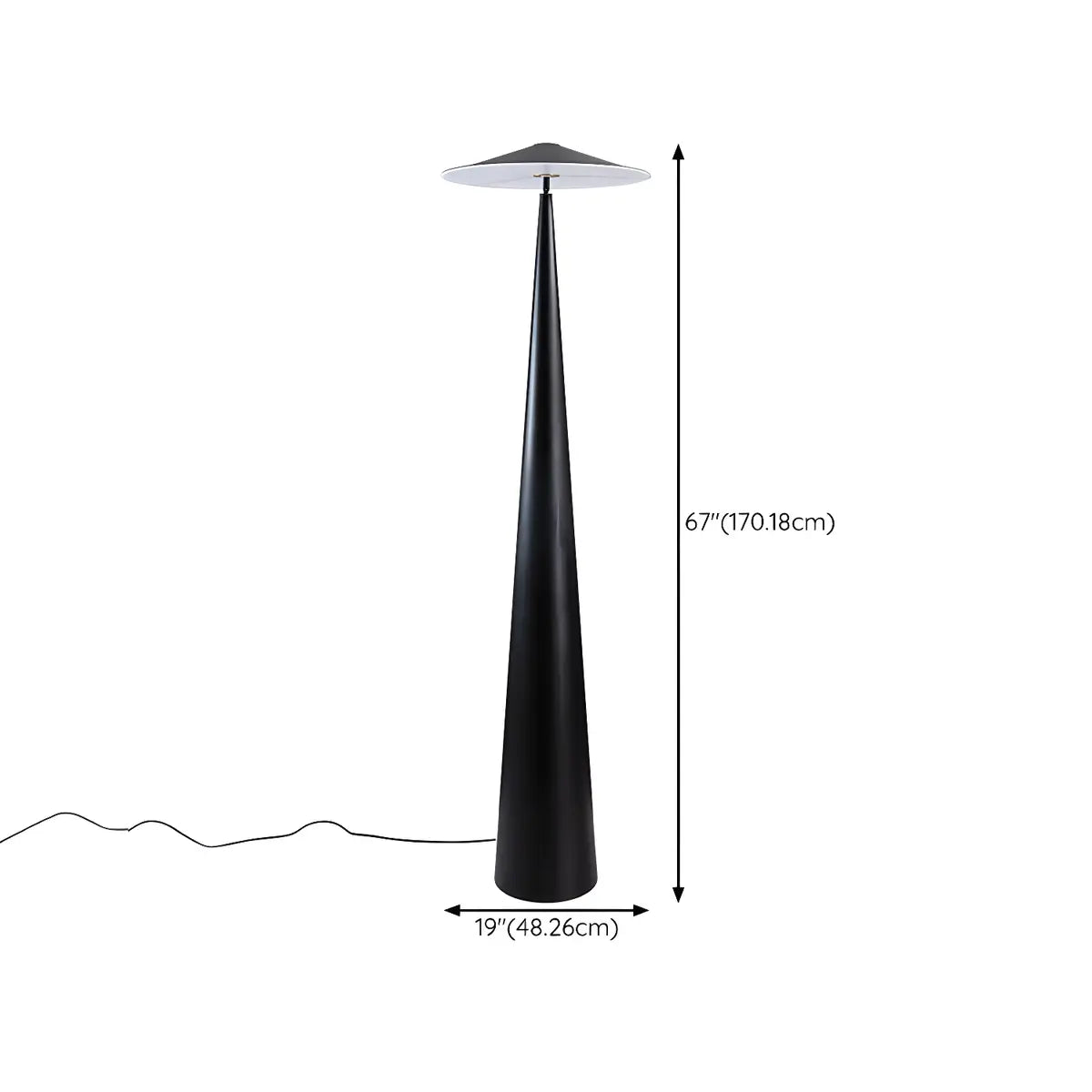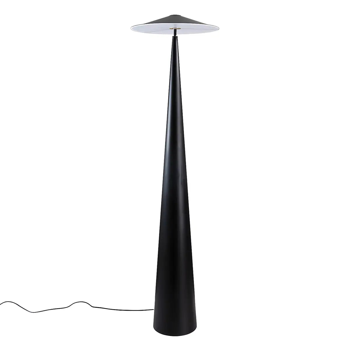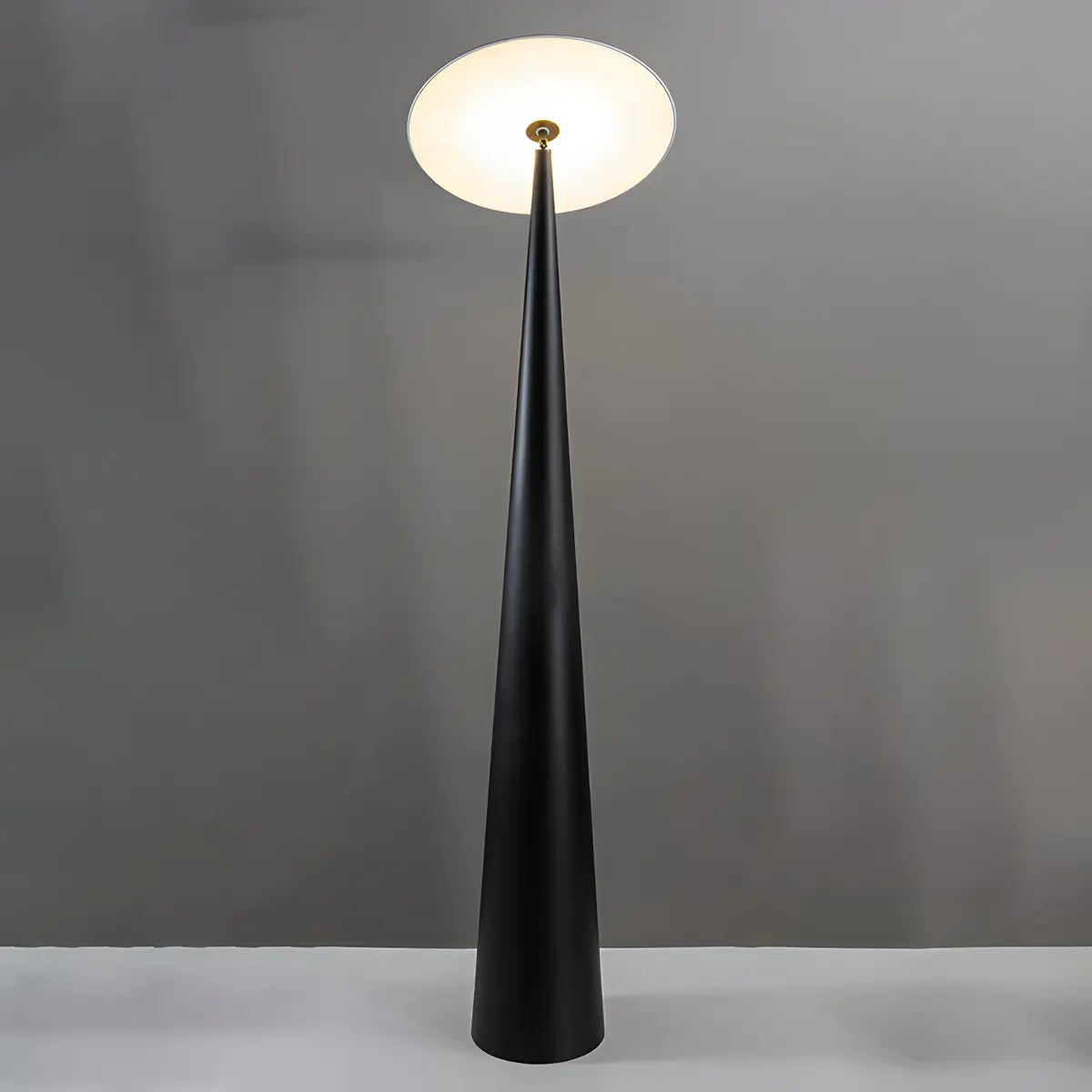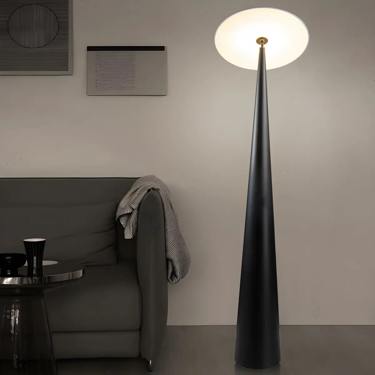 This floor lamp is inspired by modern style. The black metal material and mushroom-shaped lampshade show a minimalist and elegant aesthetic.