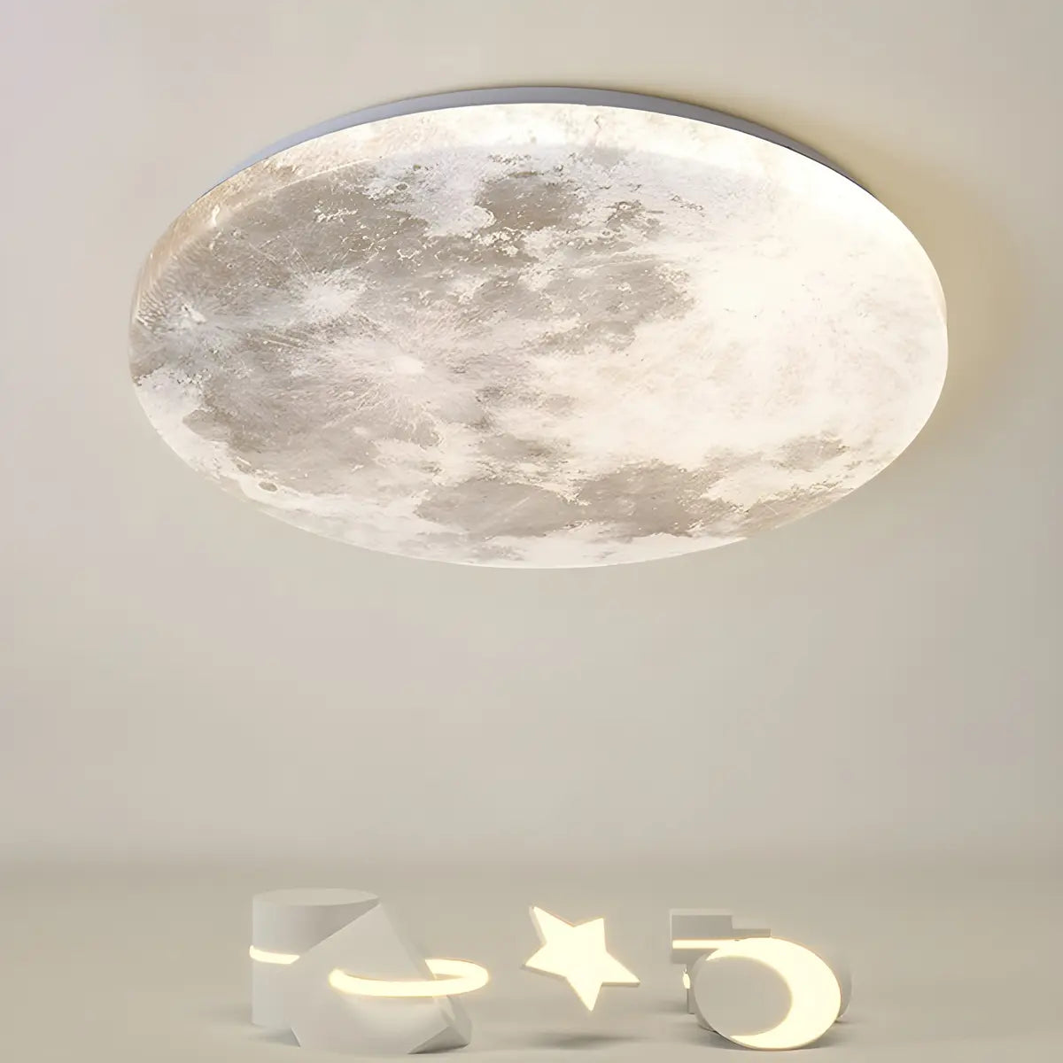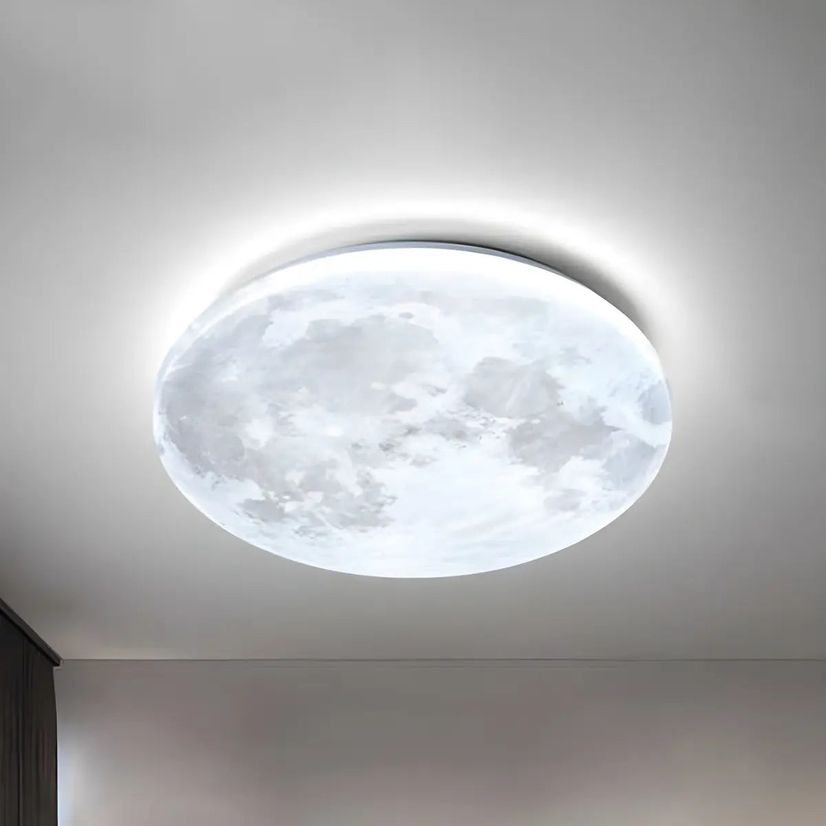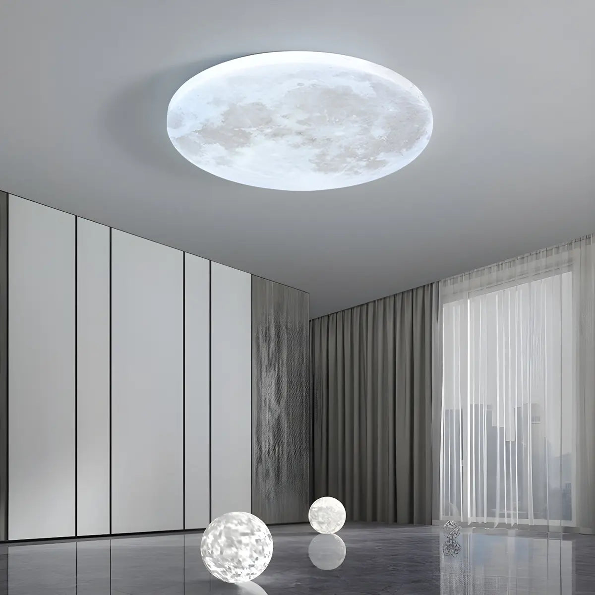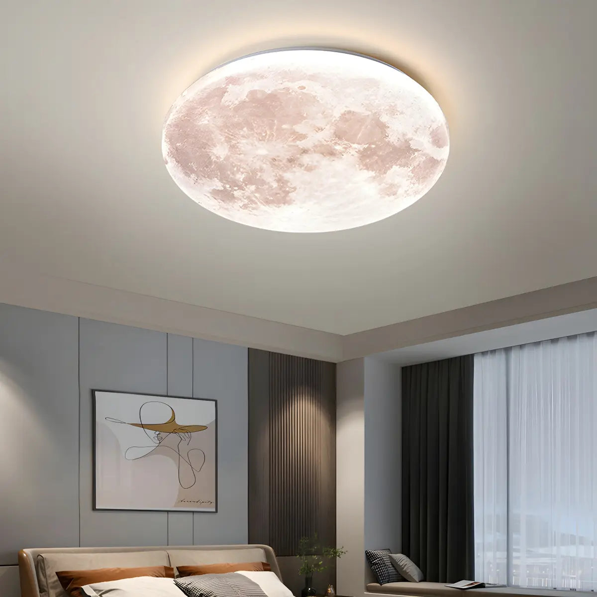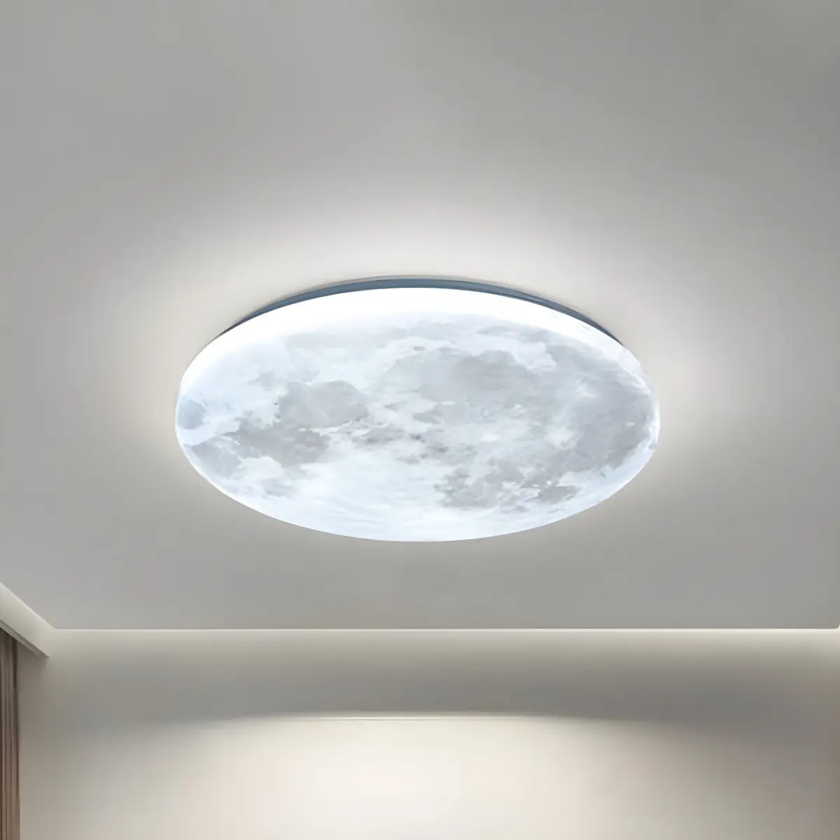 Inspired by the beautiful pattern of the moon, this modern round ceiling lamp brings the poetry of nature into the interior space. The lamp emits a gentle and peaceful light, providing a dreamy atmosphere for your home while enhancing the decorative taste of the entire room.
