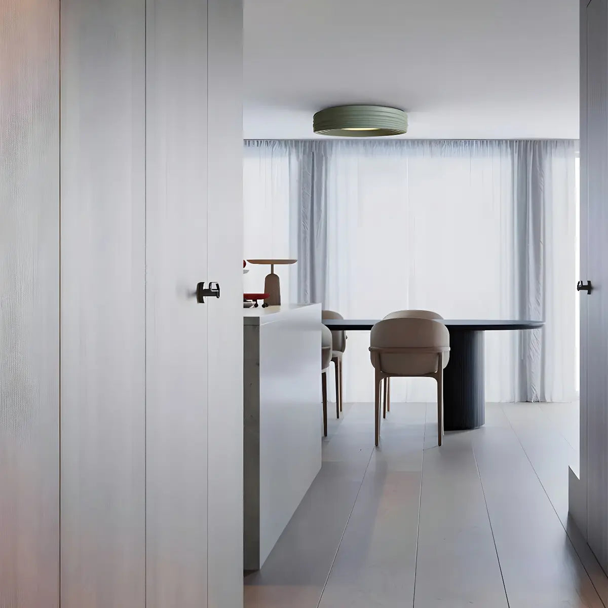 This green round ceiling lamp, with its unique ripple design combined with a simple and modern style, not only illuminates the space, but also gives the room a soft and elegant atmosphere. The light and shadow spread beautifully on the ceiling, adding an artistic touch to your home environment.