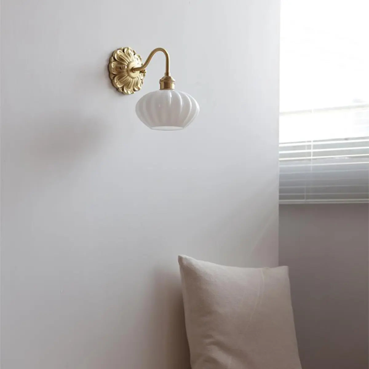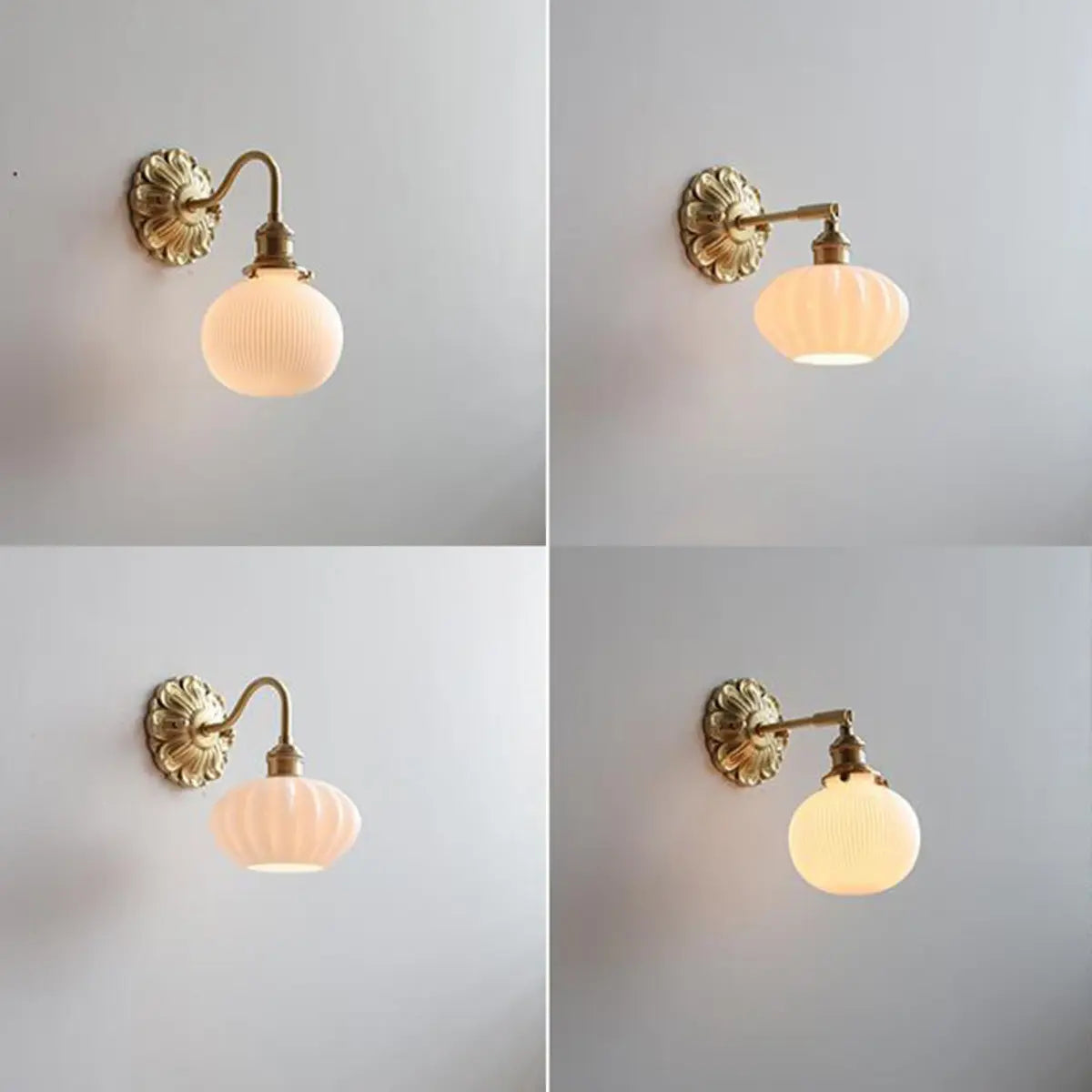 ZOWALA - Modish Gold Striped Milk Glass Globe Wall Light