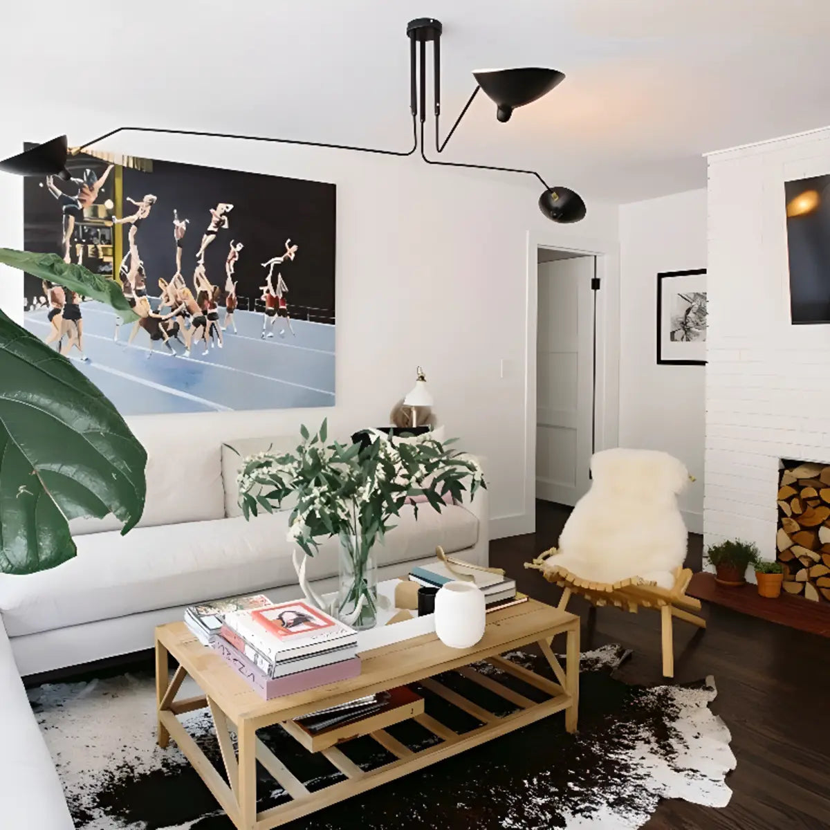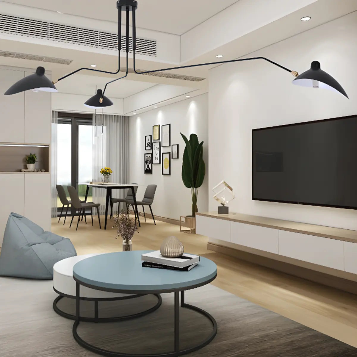 This ZOWALA black iron chandelier adds a modern touch to your living room with its geometric shape and minimalist design. It combines functionality with beauty, making it suitable as a centerpiece for a modern home.