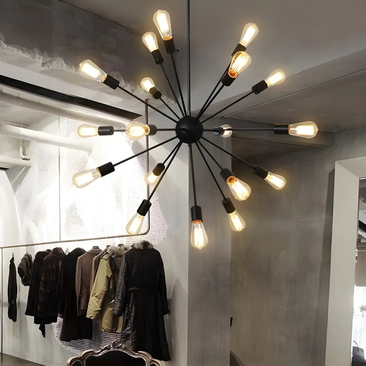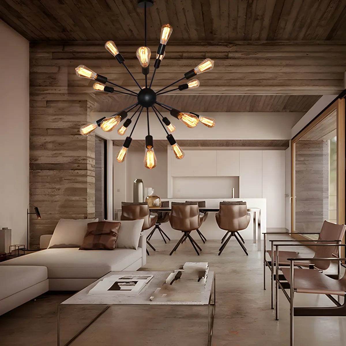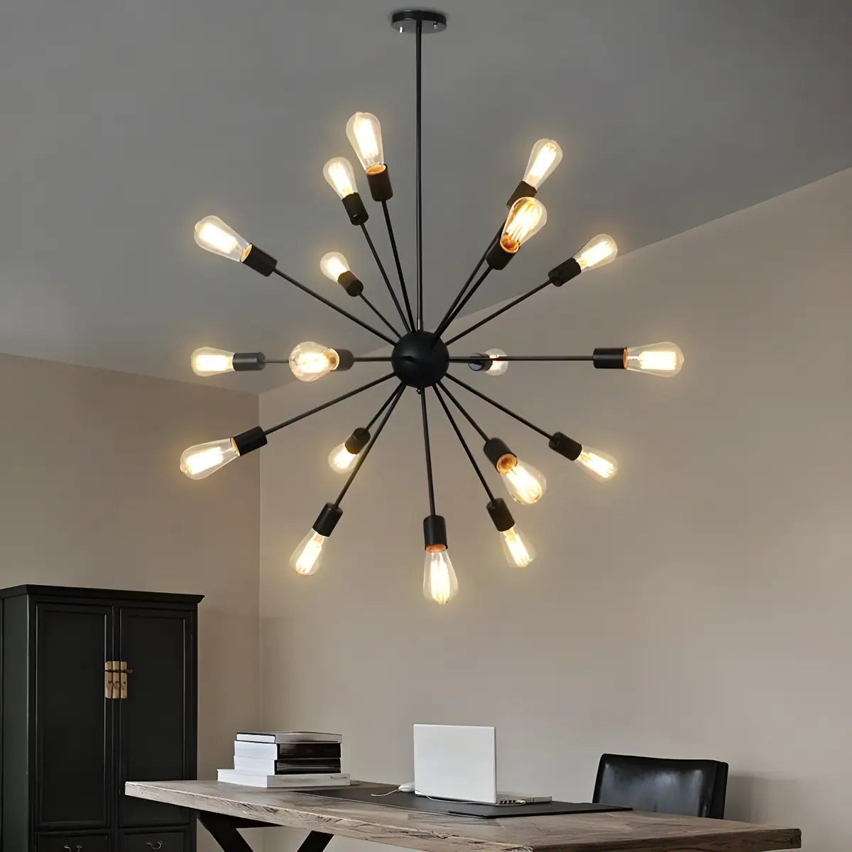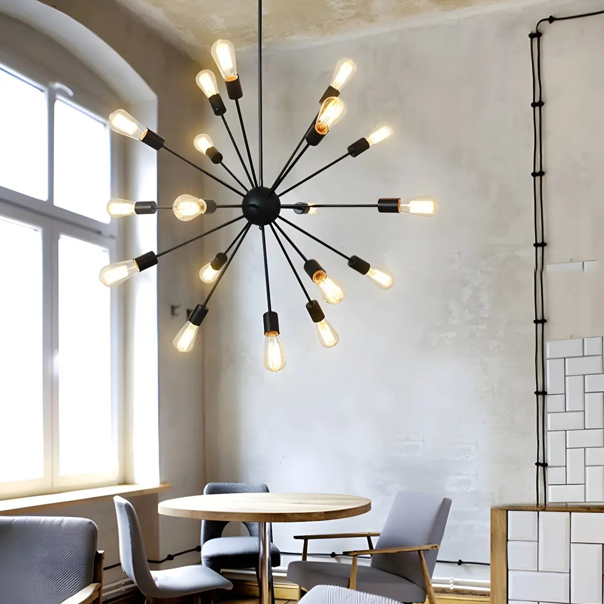 This modern black Sputnik pendant lamp brings unparalleled style and elegance to any room with its bold design and functionality. The large size is perfect for large spaces, providing ample lighting and a high-end visual feel.