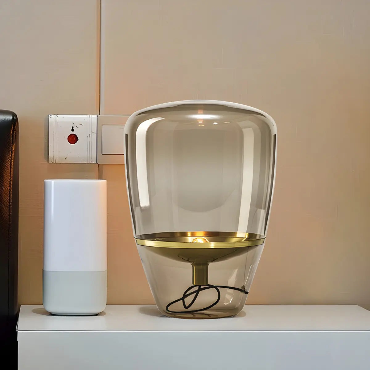 Made from high-quality smoked grey glass, this modern table lamp has an elegant design and is perfect for stylish home decor.