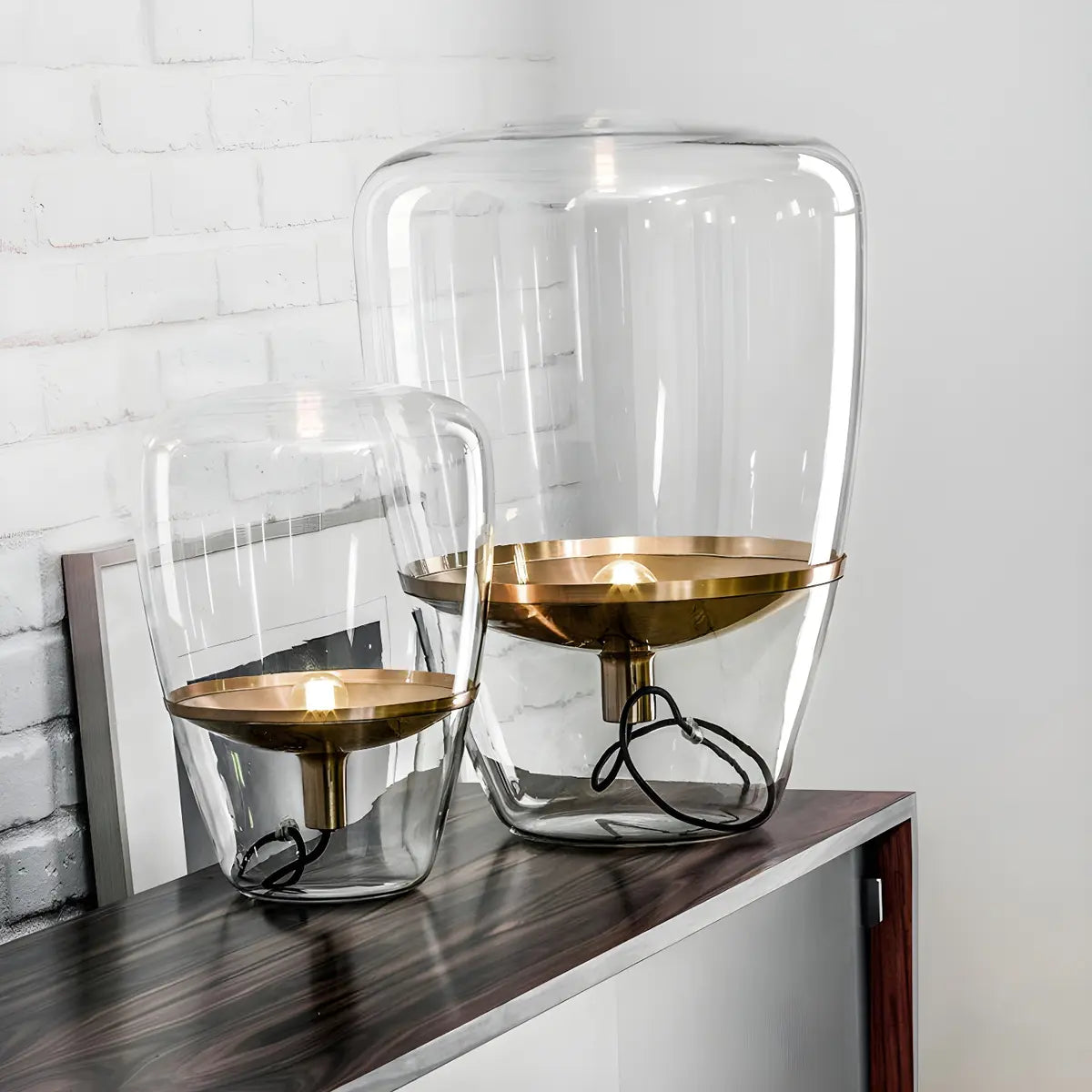 ZOWALA - Stylish Amber Glass Brass Bowl Table Lamp