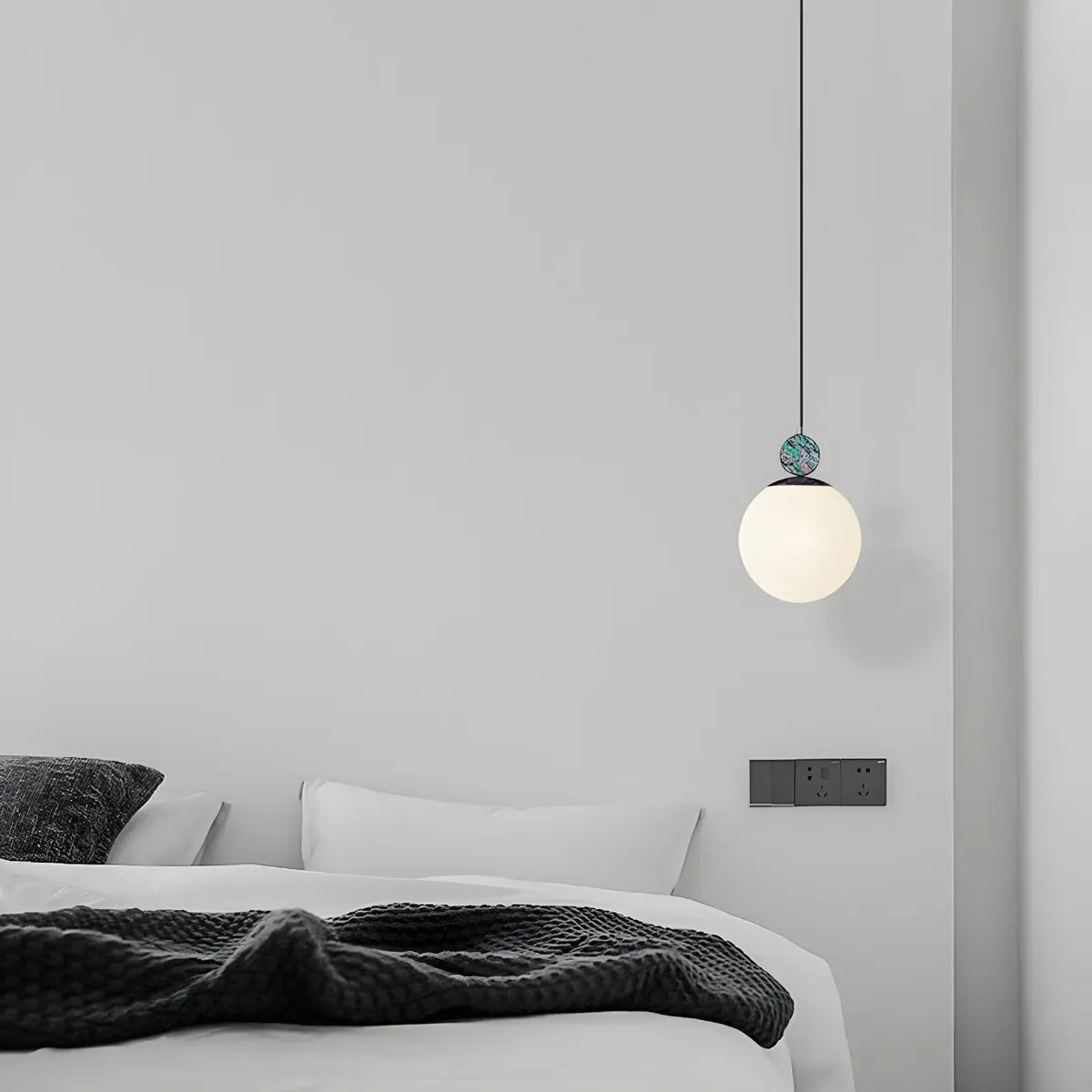 This pendant light adopts a simple and modern design. The black metal material is matched with an elegant glass lampshade, creating a delicate environment. The spherical lampshade, under the background of light, gives the space a unique artistic atmosphere, making it a highlight of kitchen decoration.