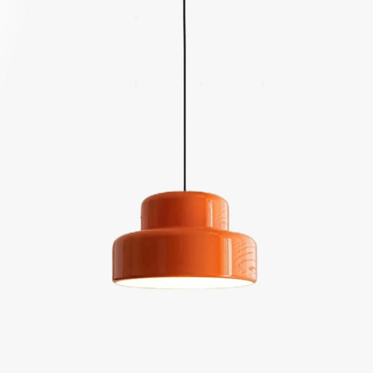 With its bold orange metal shade, this pendant lamp is a unique and contemporary design that complements minimalist style perfectly, adding a dynamic and decorative touch to your kitchen.