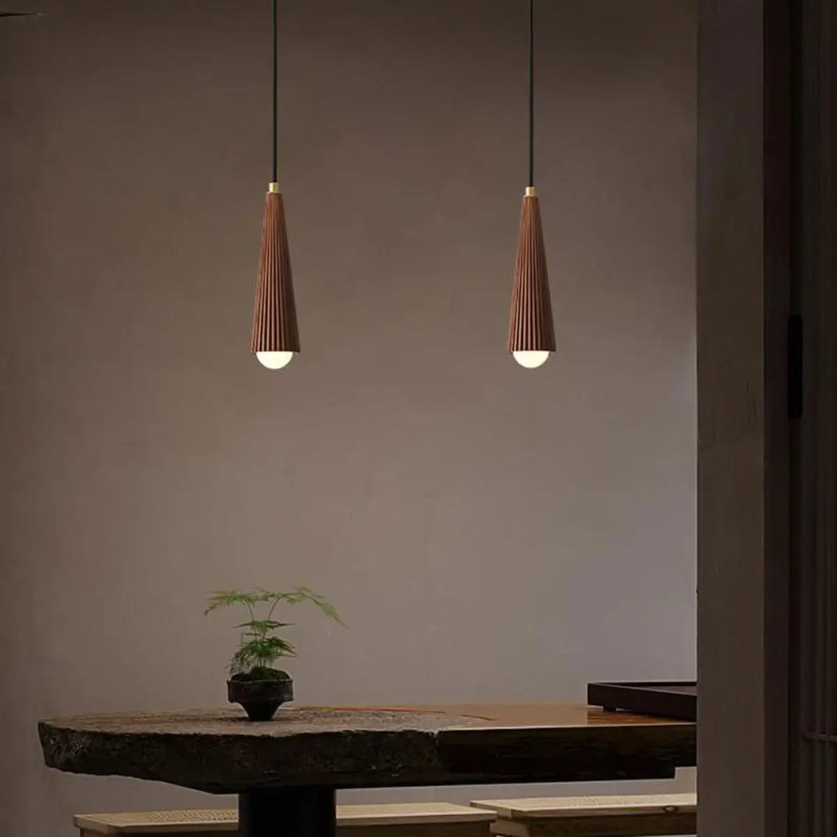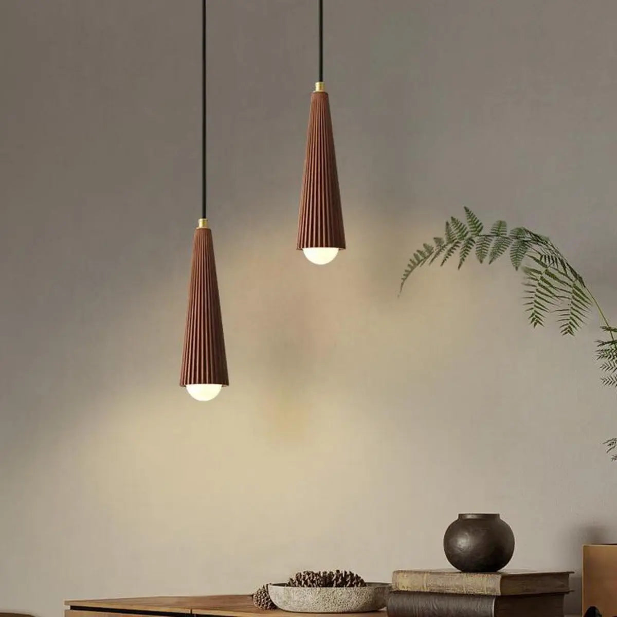 ZOWALA - Stylish Pleated Walnut Wood Cone Pendant Light