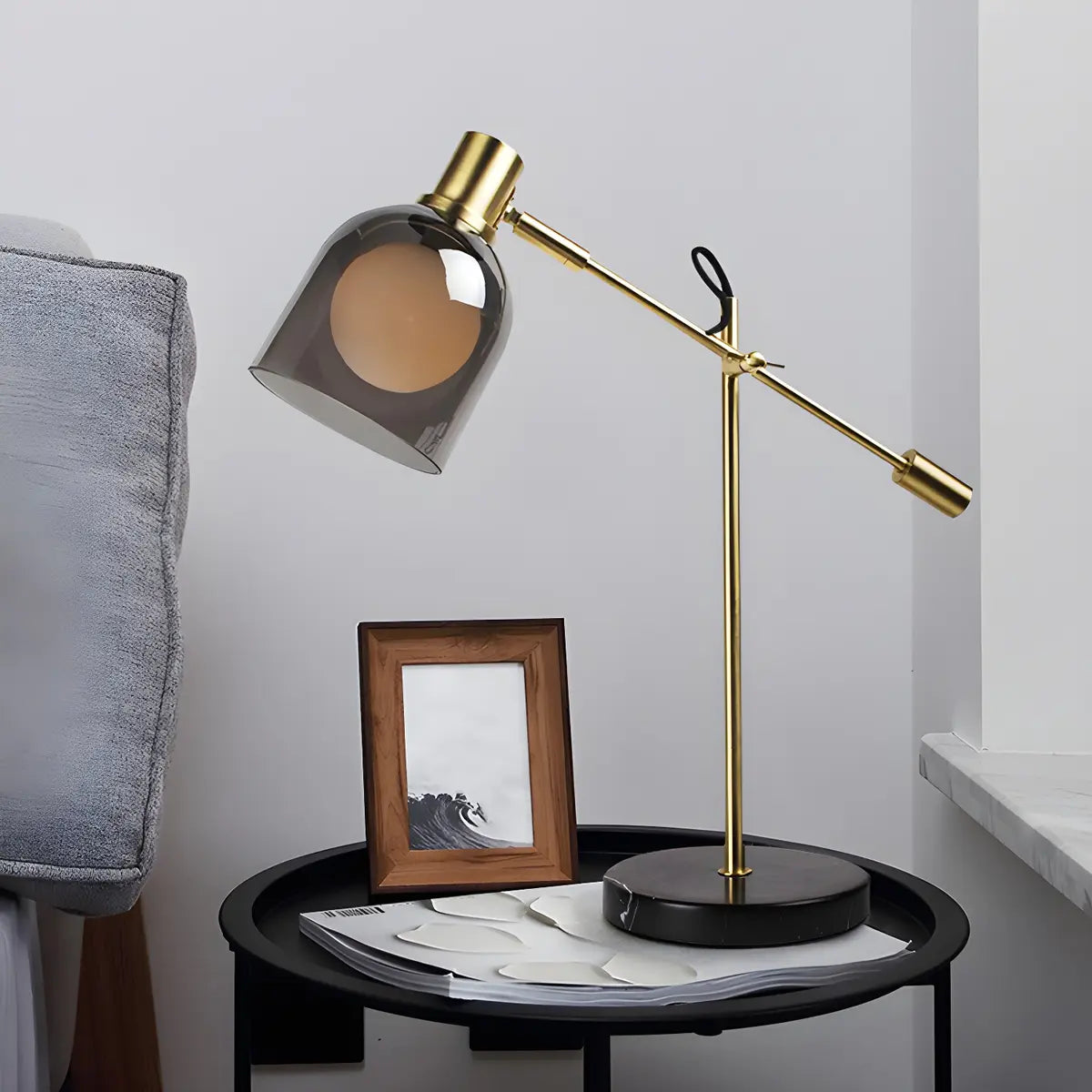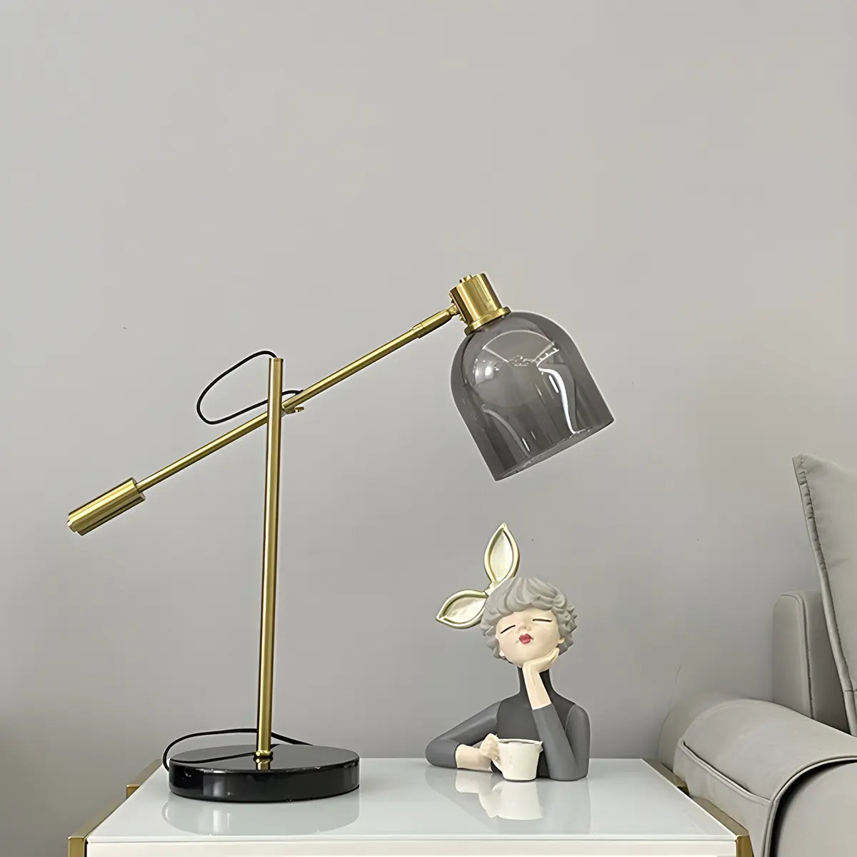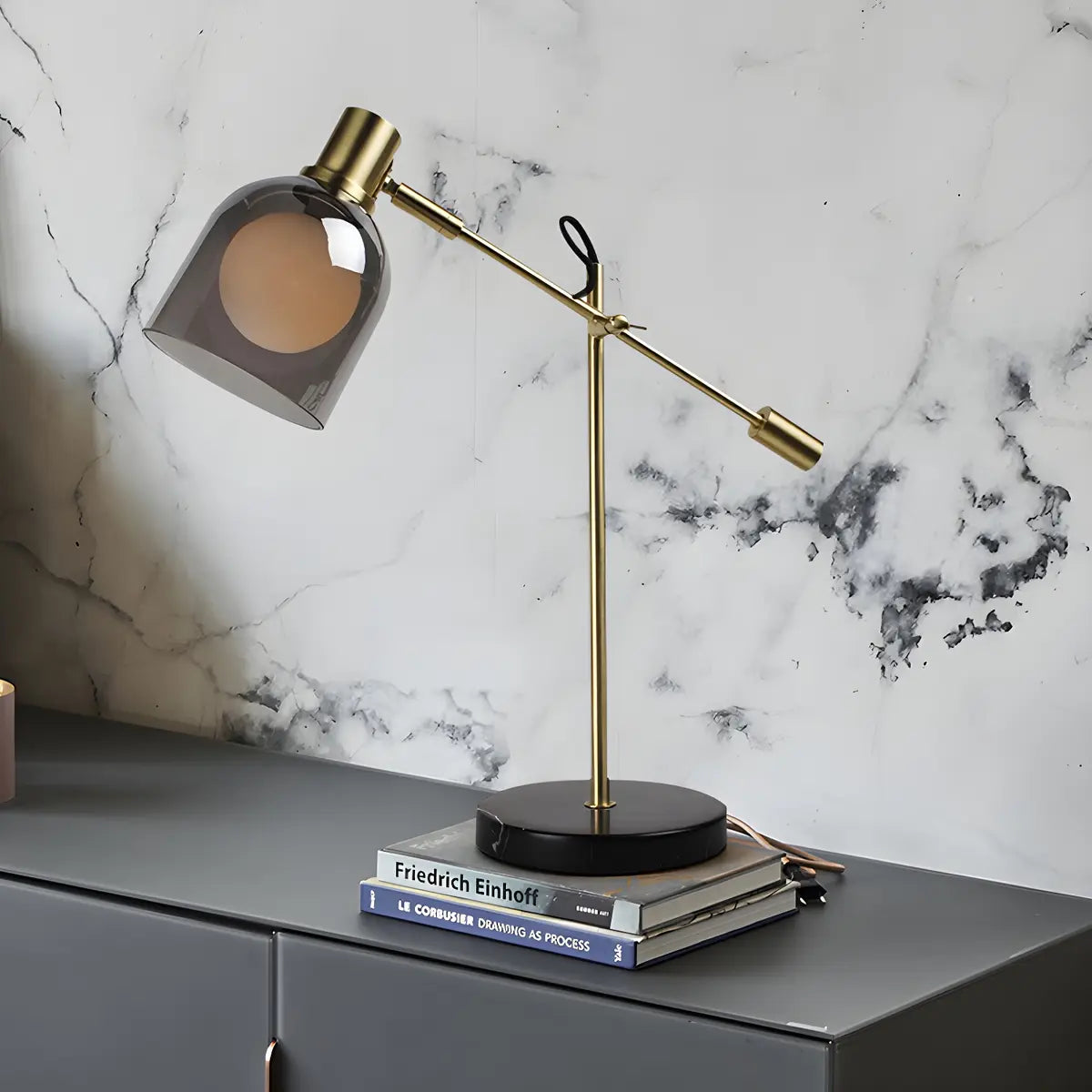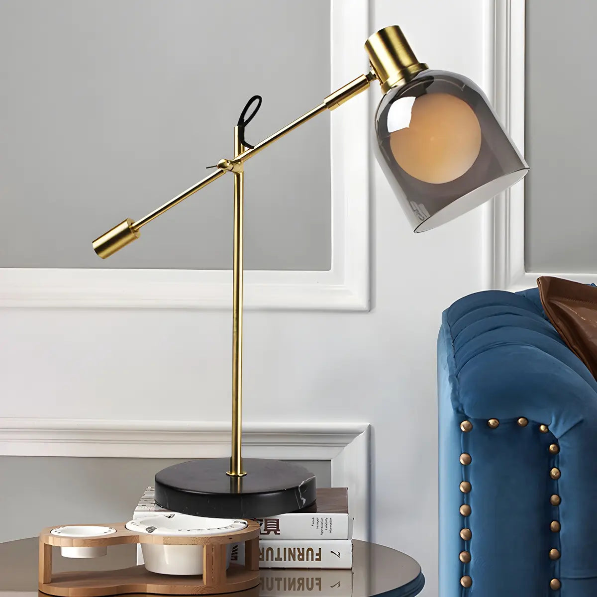 ZOWALA - Stylish Reading Gold Balance Arm Grey Glass Table Lamp