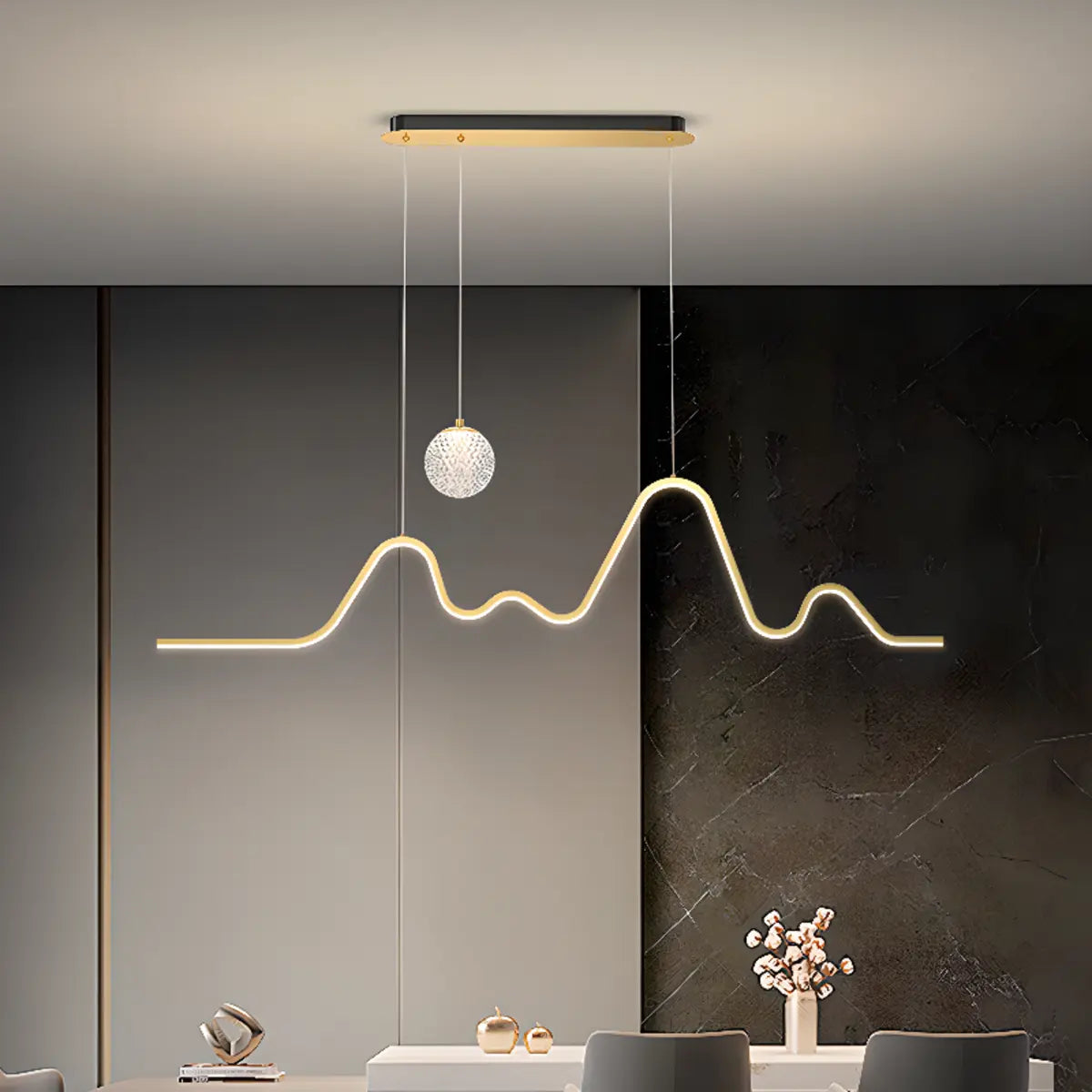 Ideal for a kitchen or island, this modern wavy metal pendant light adds an artistic touch to the space with its unique wave design.