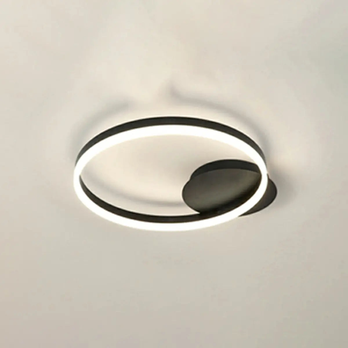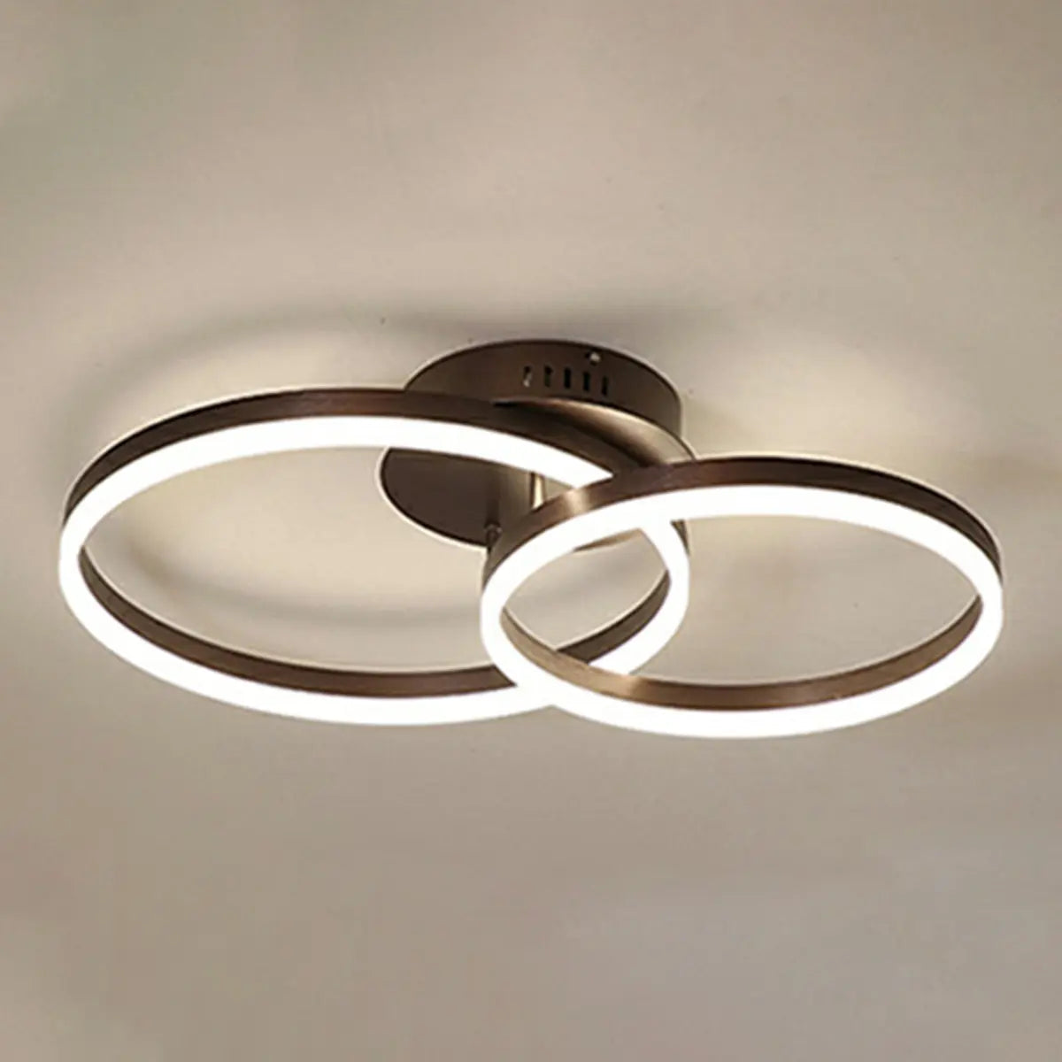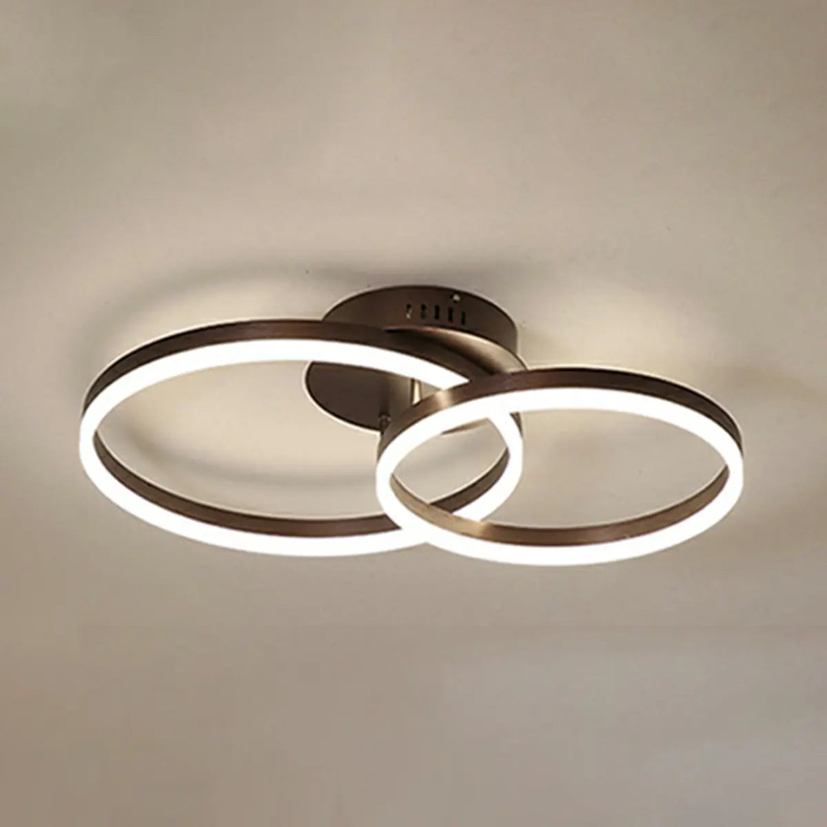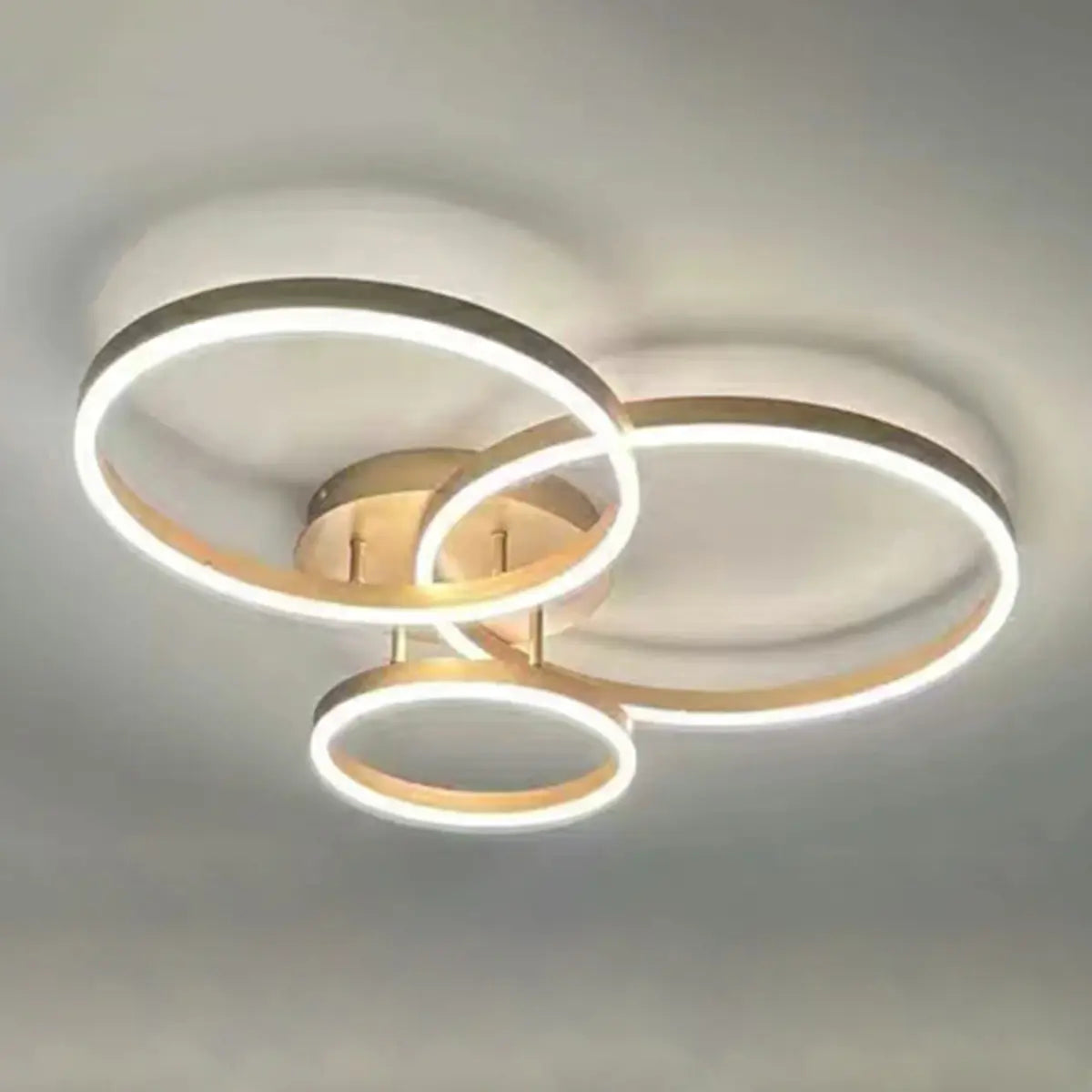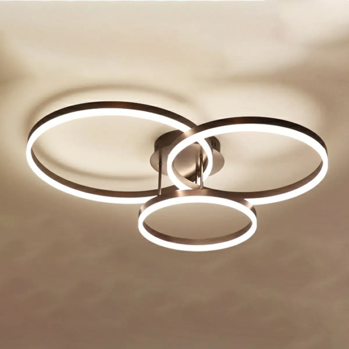 This modern and simple LED semi-ceiling lamp is designed in the shape of three concentric circles, with smooth lines and unique shape. Made of metal material, it has a sophisticated and fashionable appearance and exudes a modern texture.