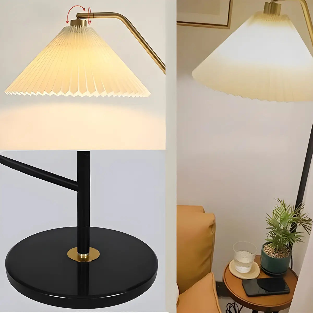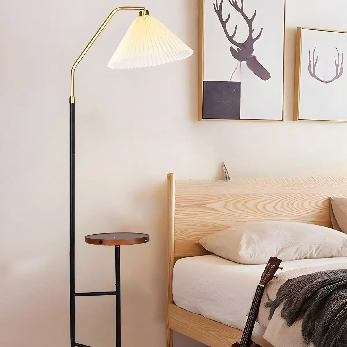 ZOWALA - Traditional Pleated Fabric Floor Lamp with Shelf