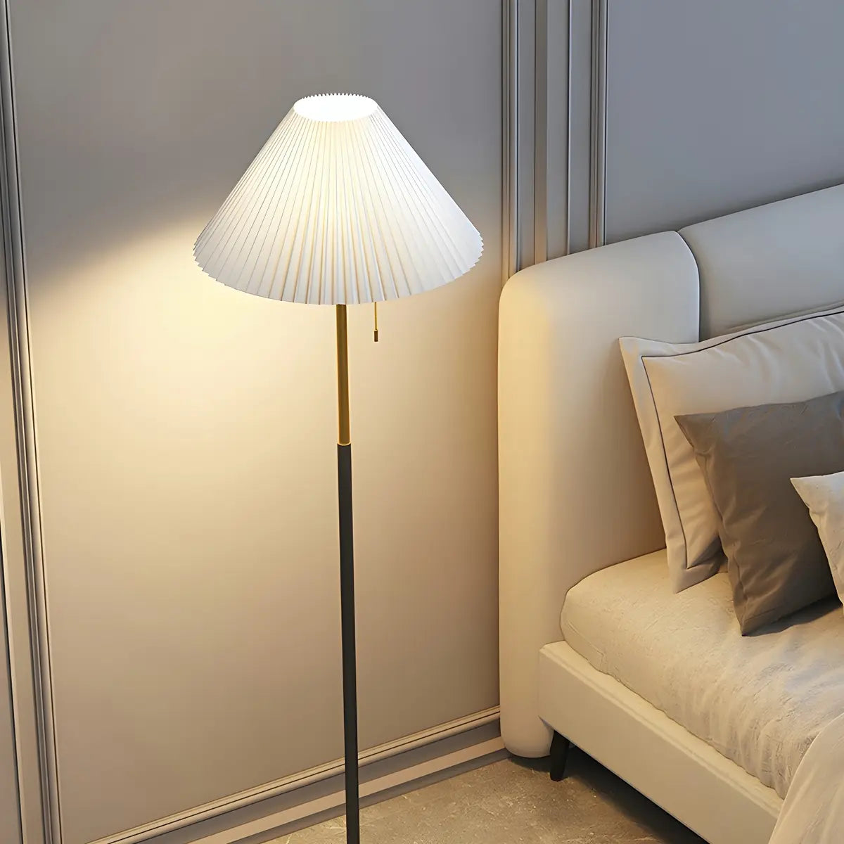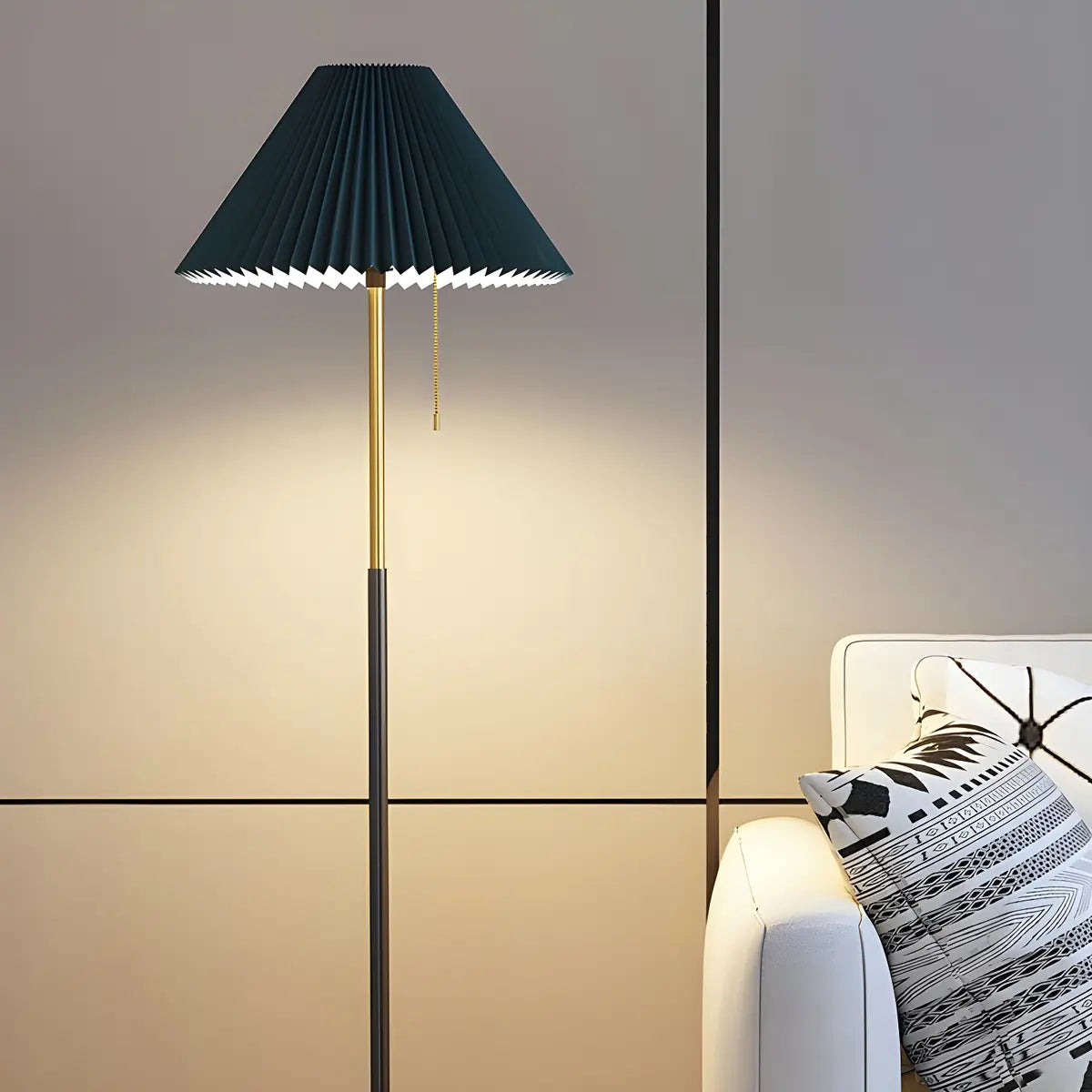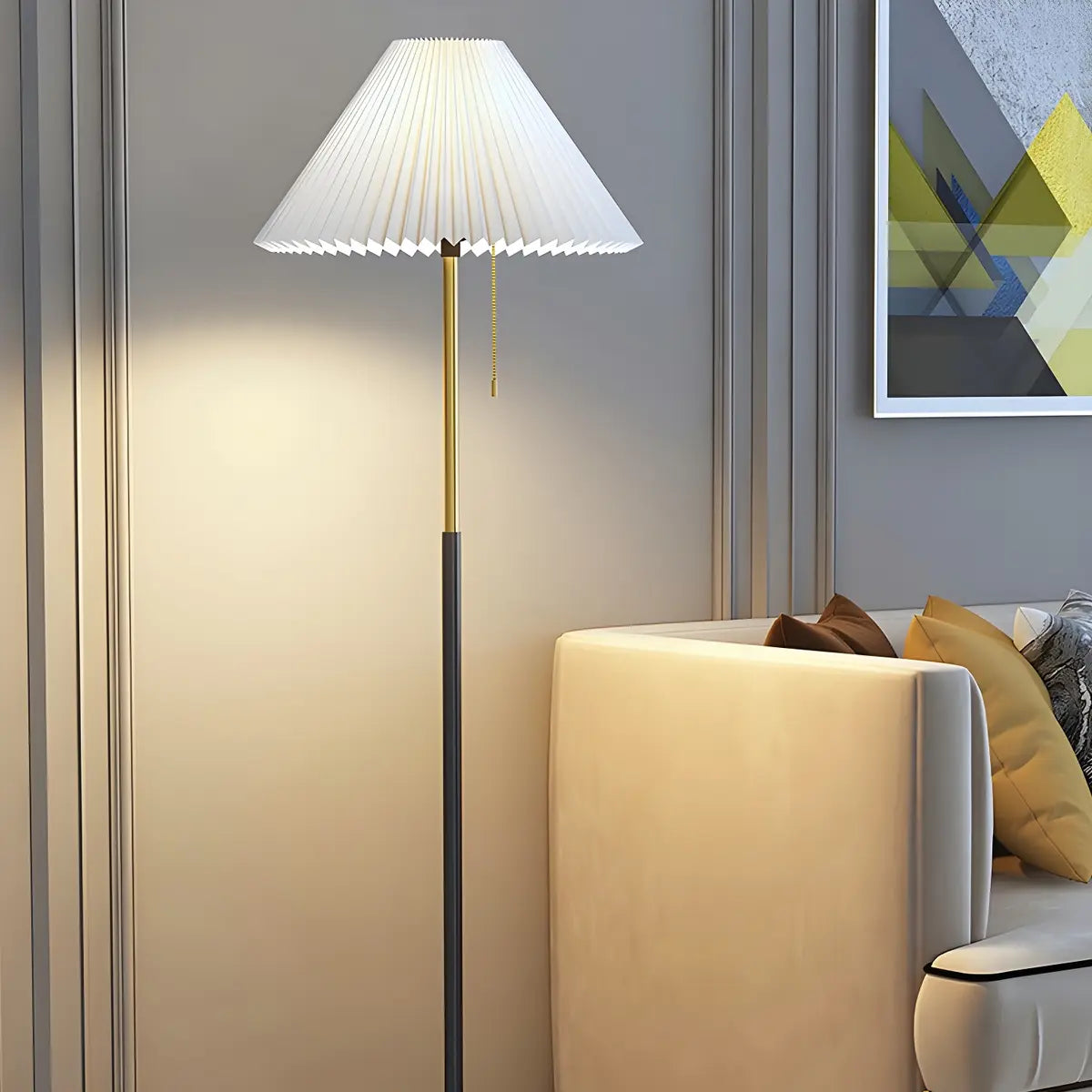 ZOWALA - Trendy Fabric Black-Gold Floor Lamp with Pull Chain