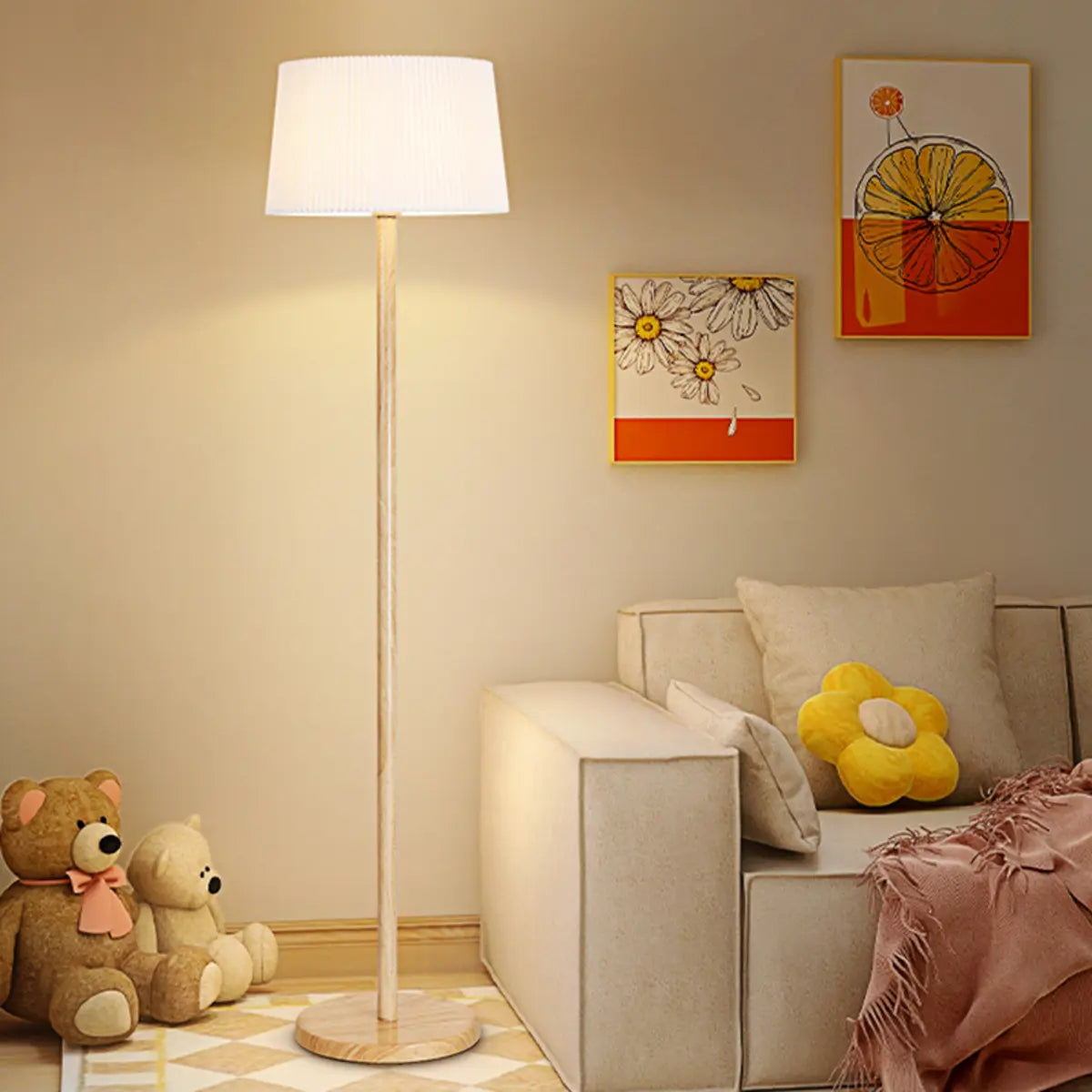 ZOWALA - Trendy White Pleated Drum Floor Lamp