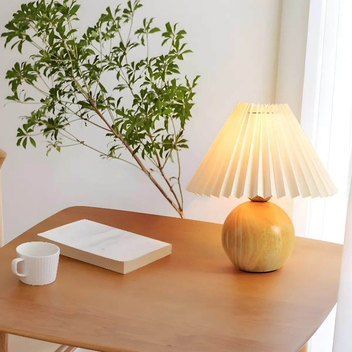 ZOWALA - Umbrella Pleated Natural Wood Globe Table Lamp