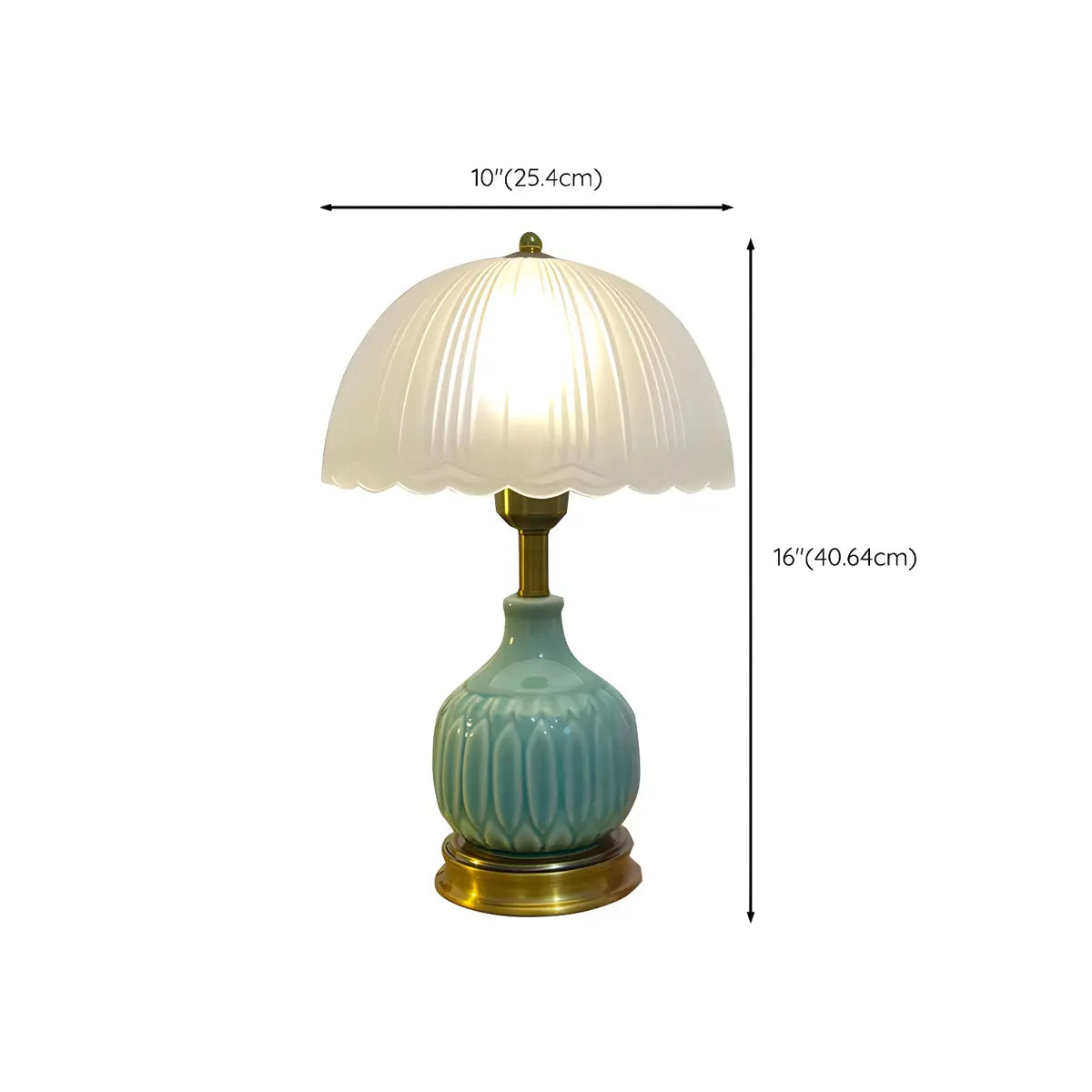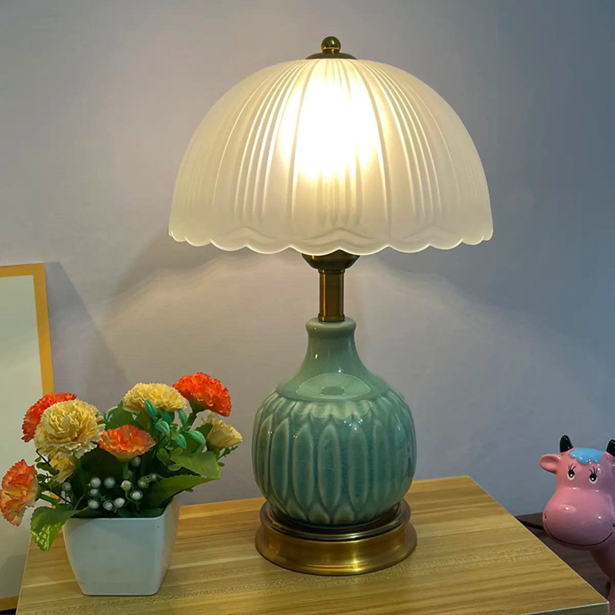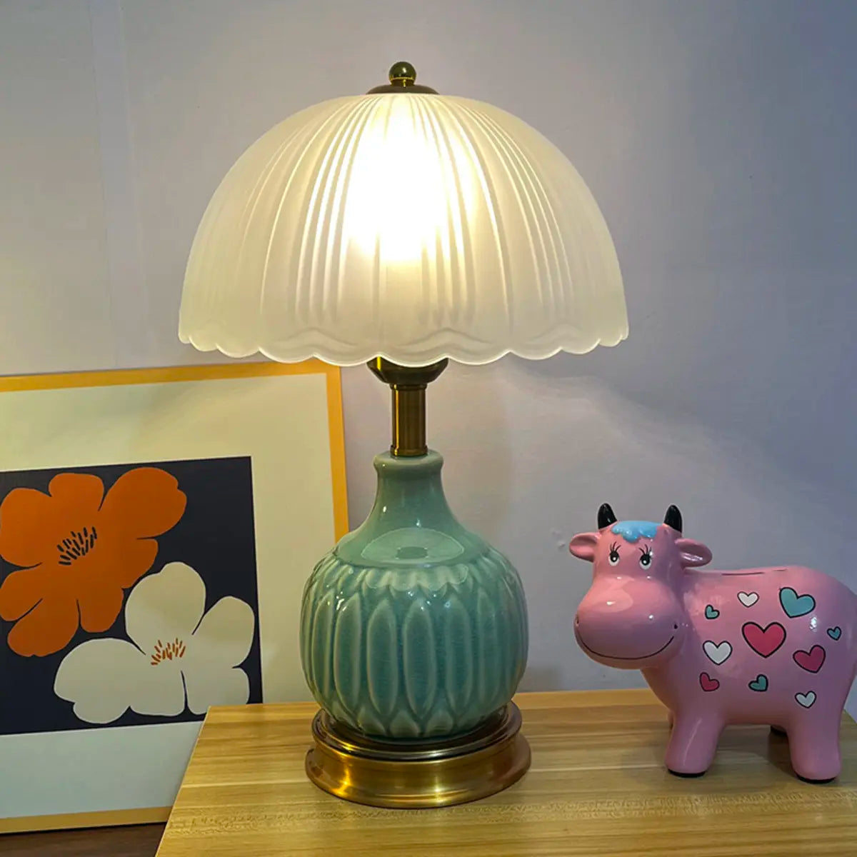 ZOWALA - Glass Umbrella Green Ceramic Table Lamp