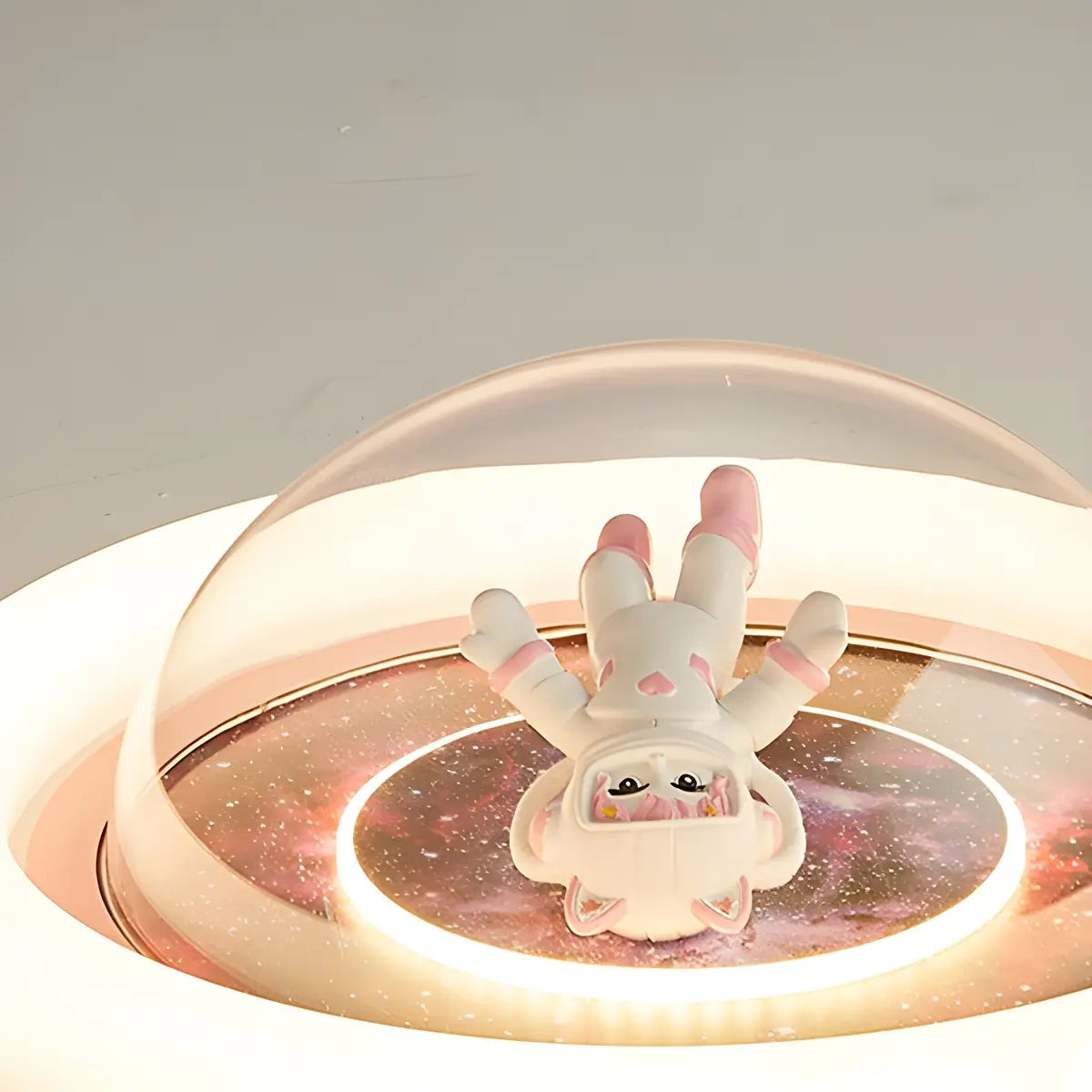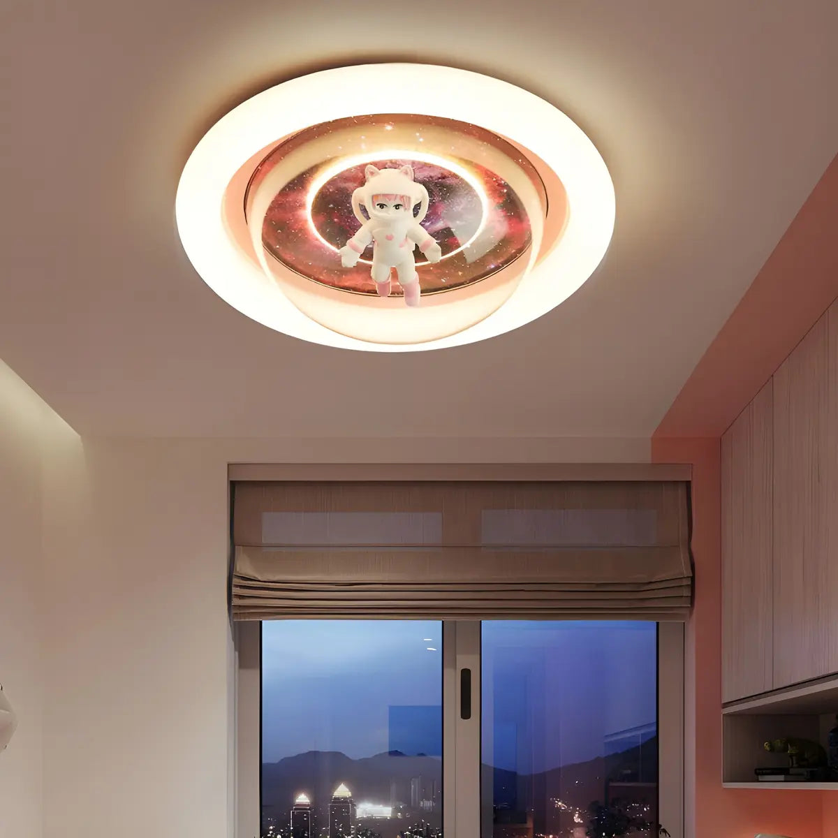 This pink round ceiling lamp is like a work of art, cleverly combining fantasy and romance. The space pattern in the center and the cute astronaut decoration seem to add a touch of cosmic mysterious charm to the room, becoming the focus of attention.