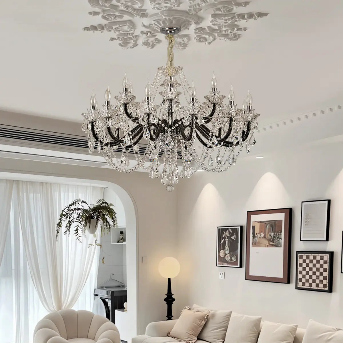 This Victorian-style crystal chandelier adds infinite charm to your living room with its luxurious and elegant appearance. Carefully crafted from metal and crystal, it displays a dazzling brilliance.