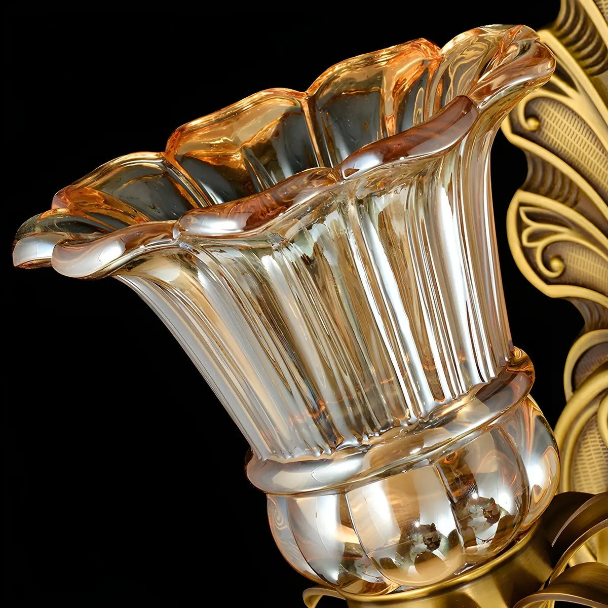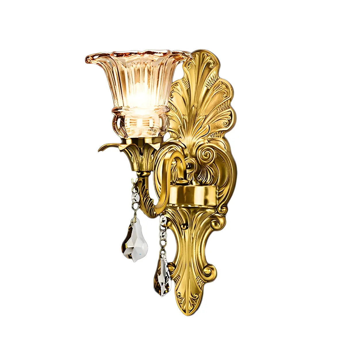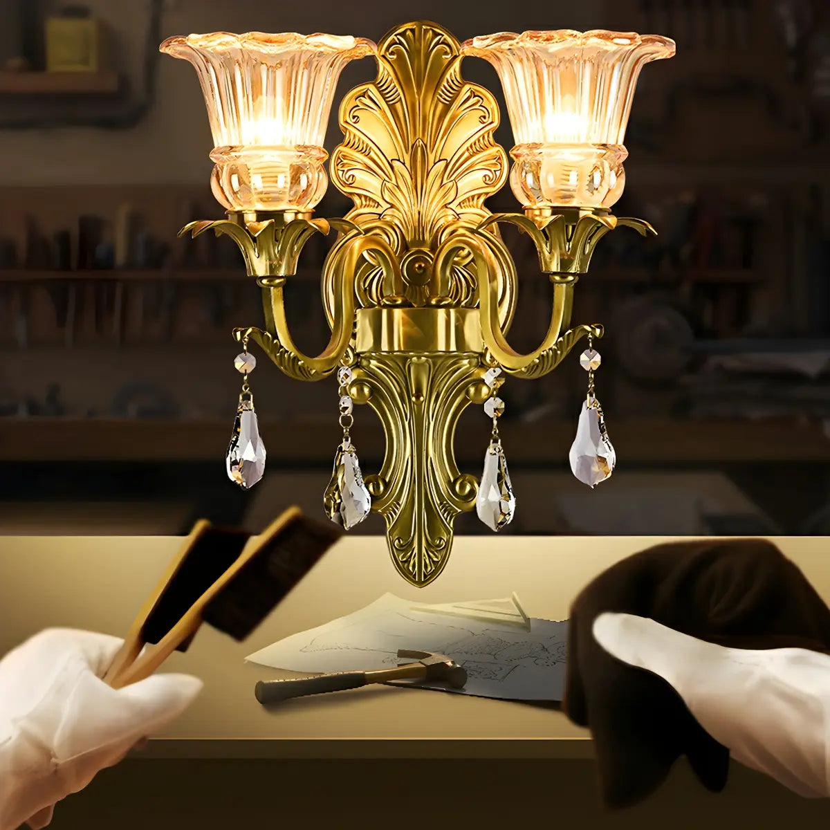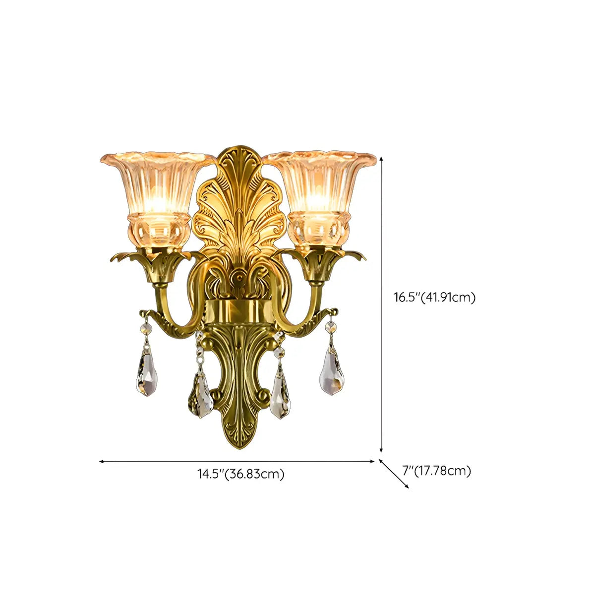 ZOWALA - Vintage Brass Floral 2-Light Glass Wall Light