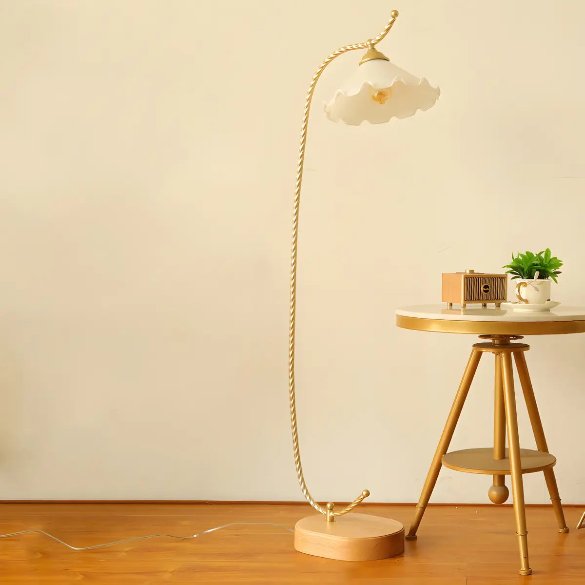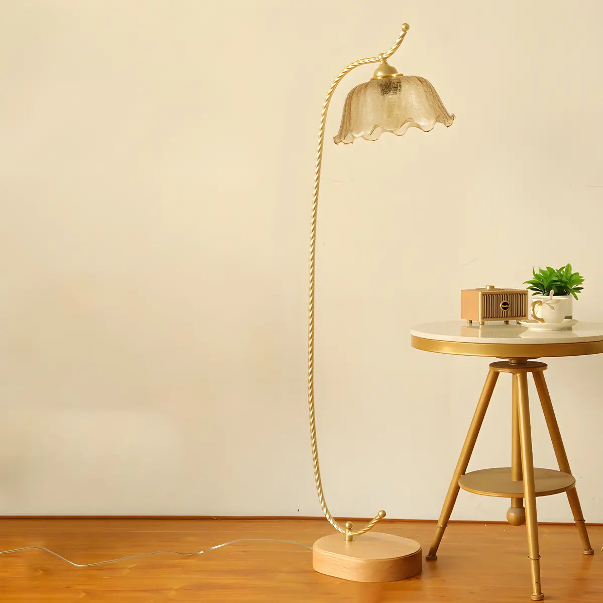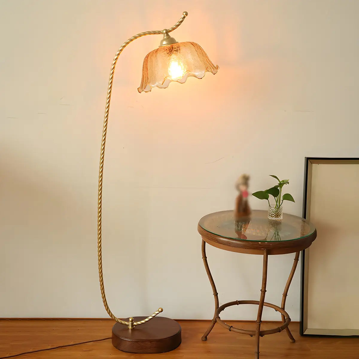 ZOWALA - Vintage Amber Flower Scrolled Gold Floor Lamp