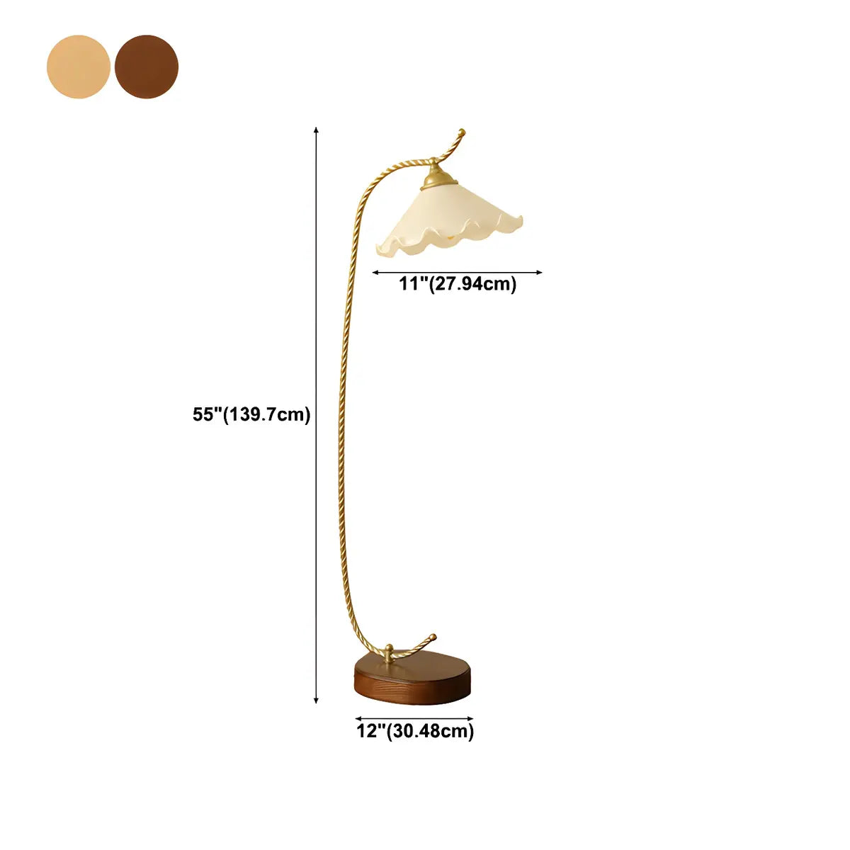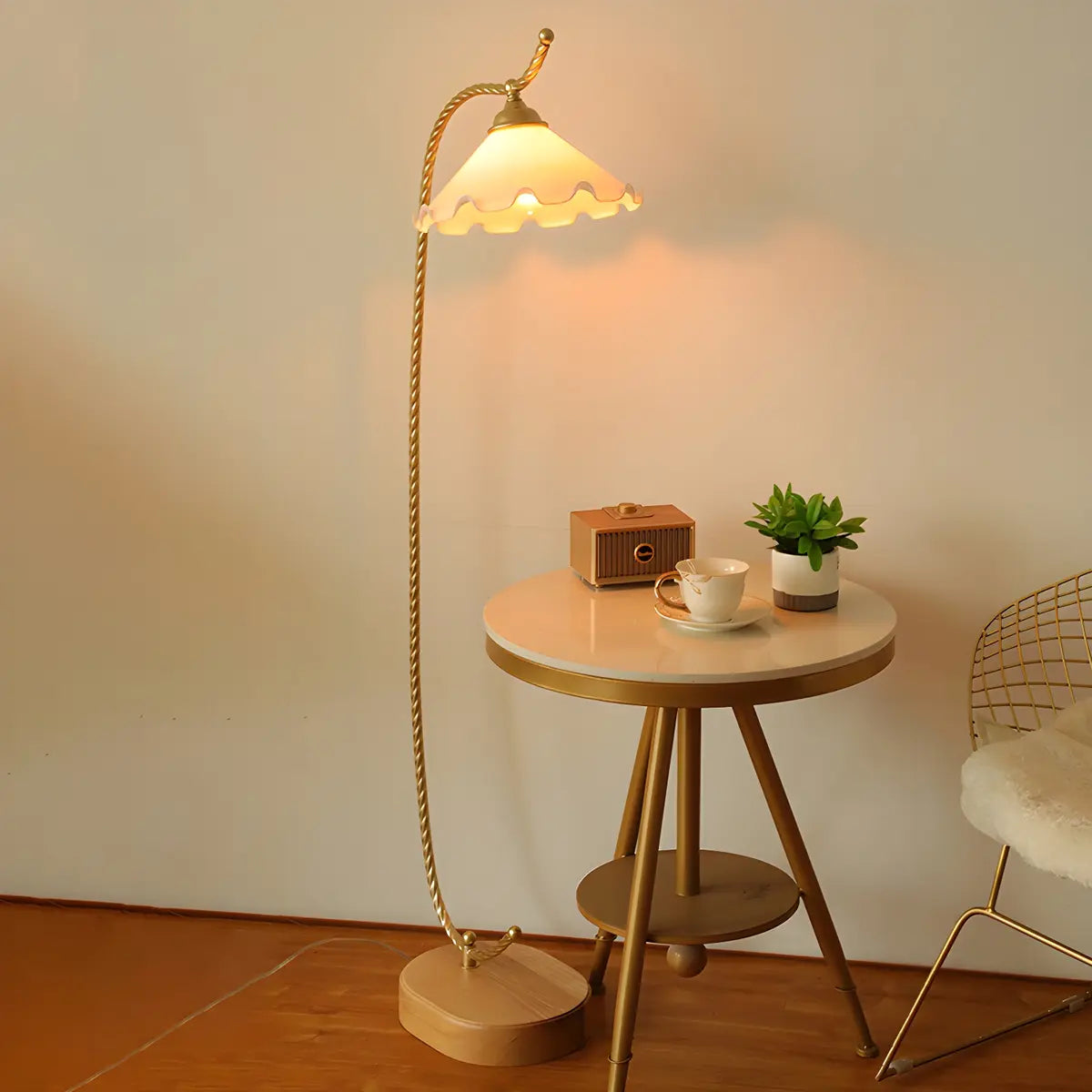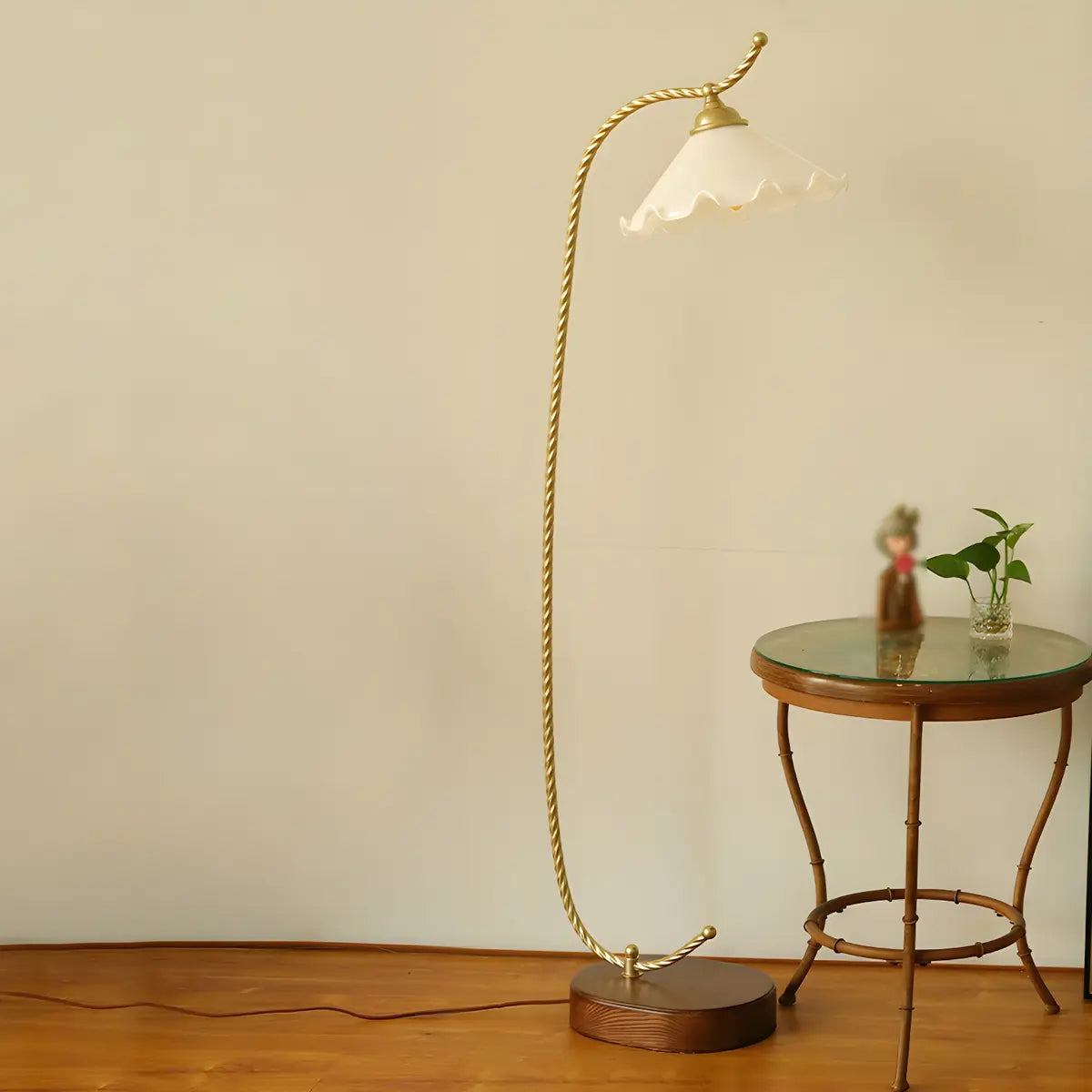 ZOWALA - Vintage Amber Flower Scrolled Gold Floor Lamp