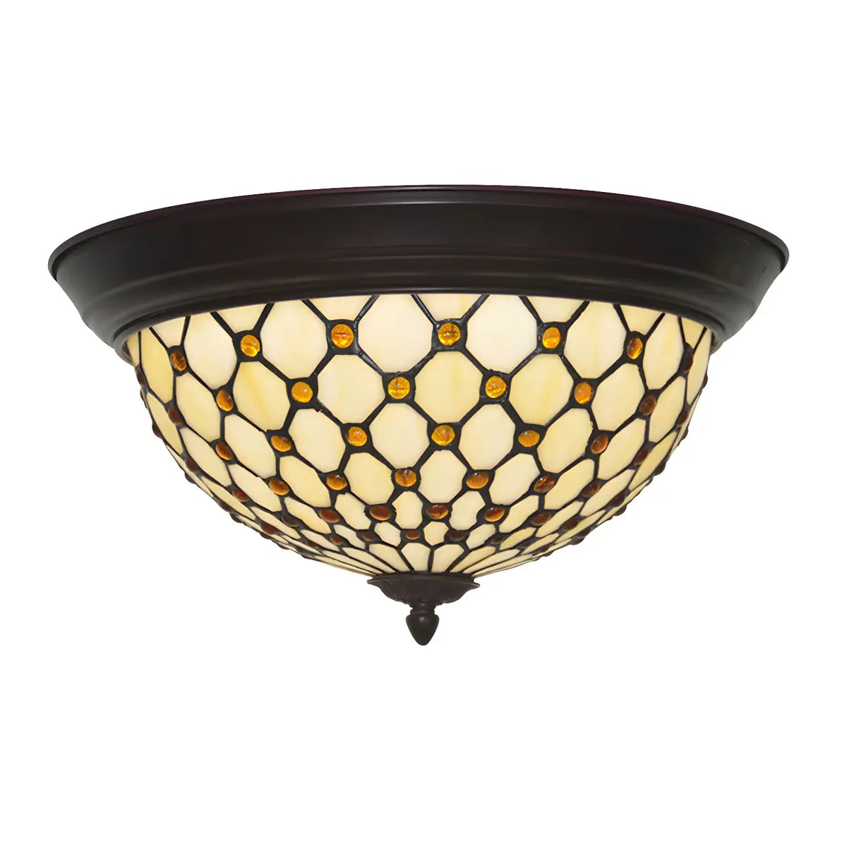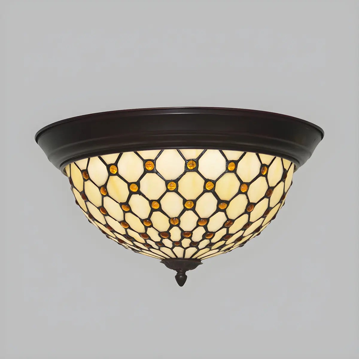 ZOWALA - Vintage Beige Bowl-Shaped Glass Flush Mount Light