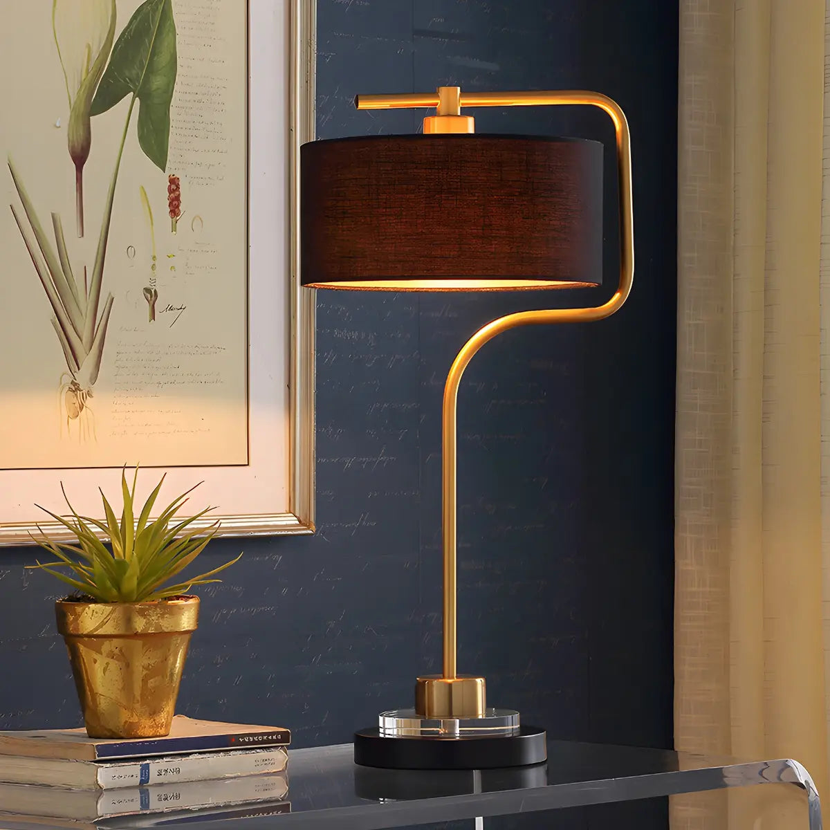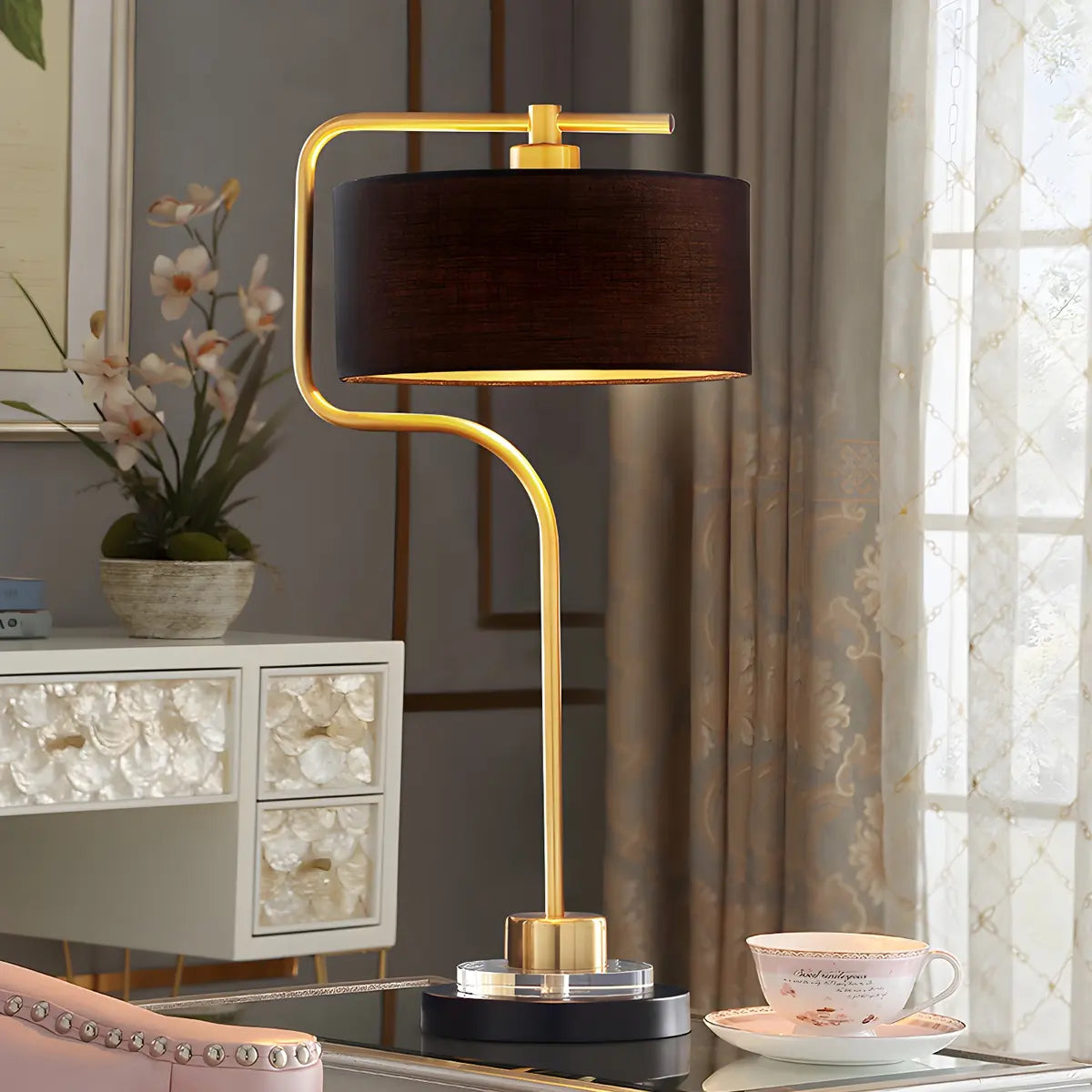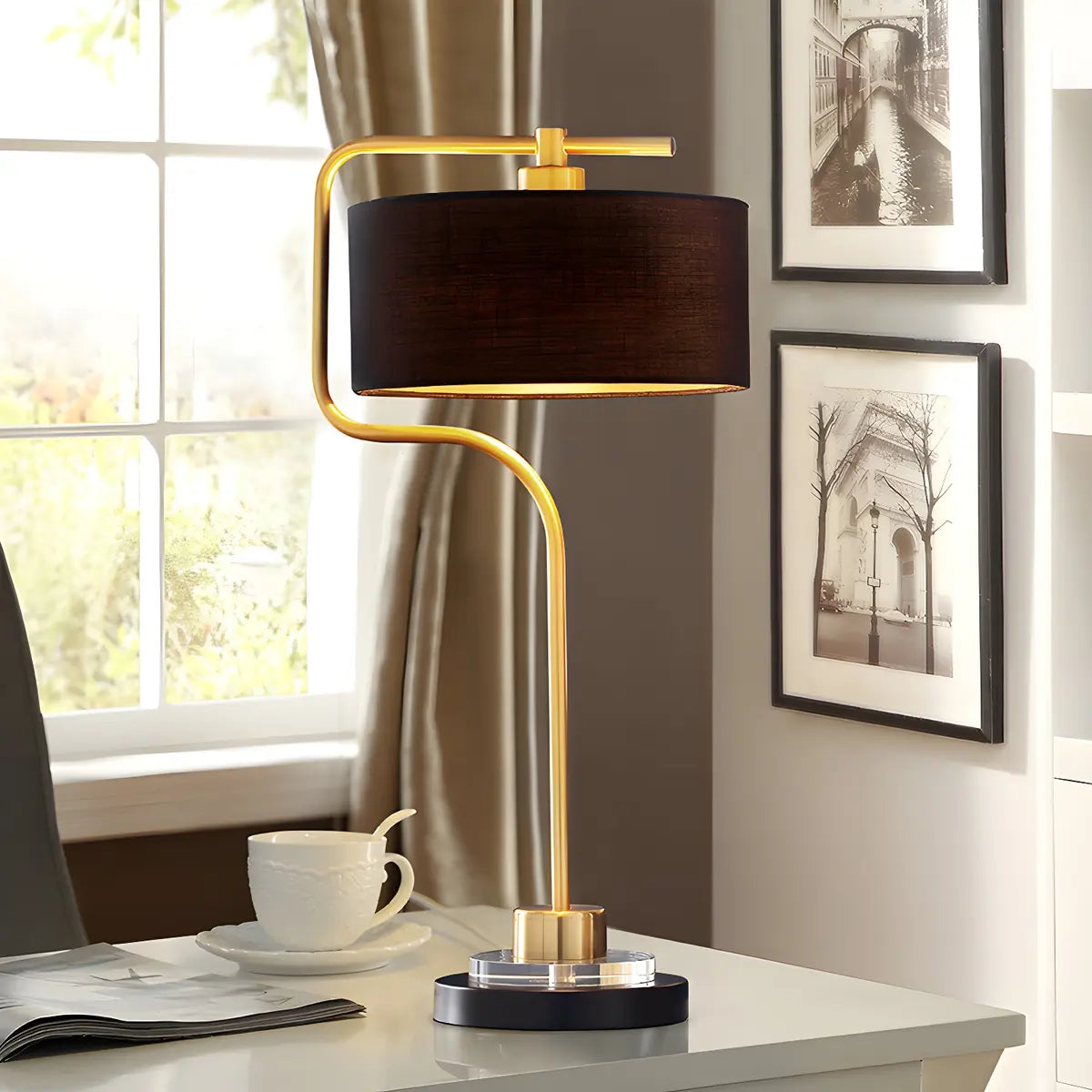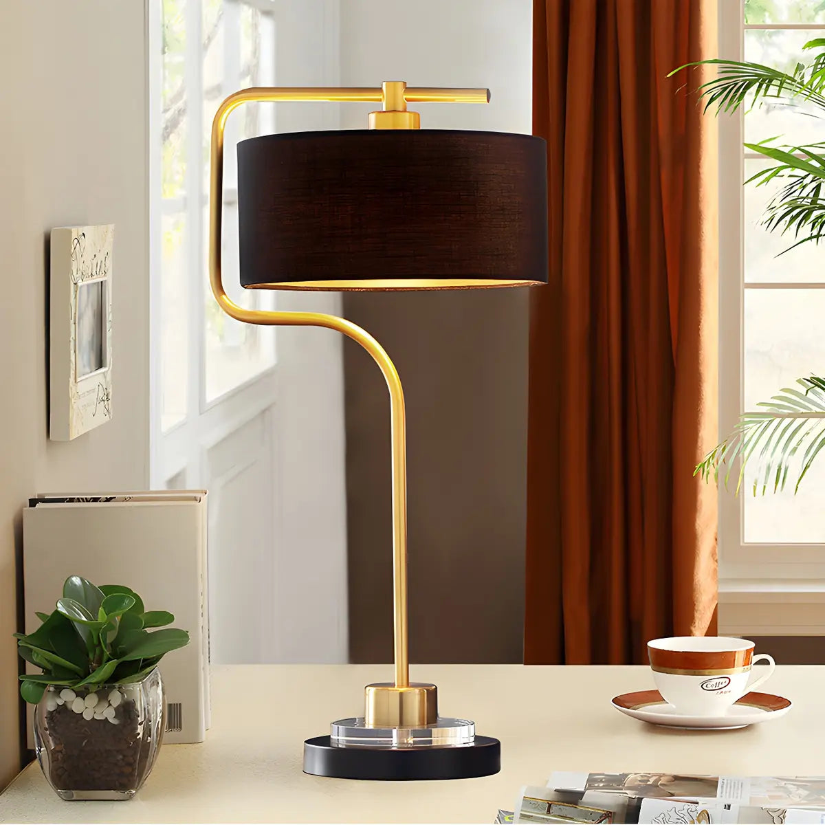 ZOWALA - Vintage Black Fabric Drum Gold Table Lamp