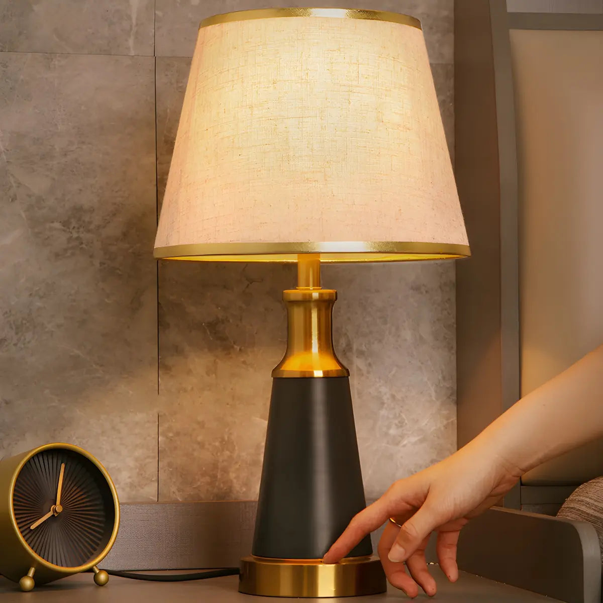 ZOWALA - Vintage Black-Gold Base Drum White Table Lamp
