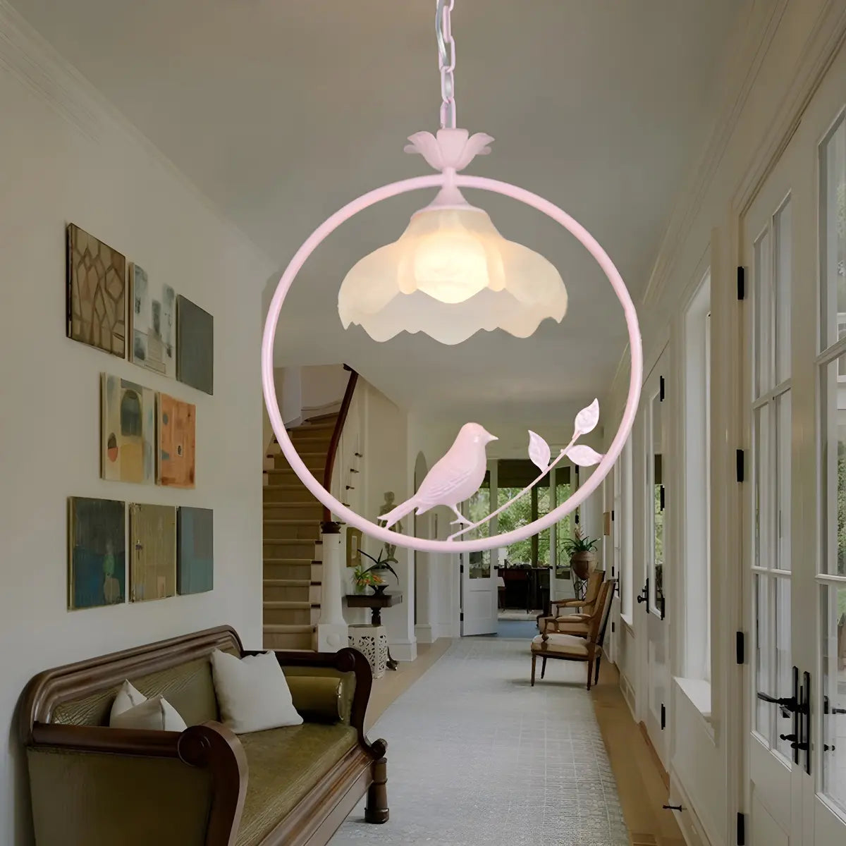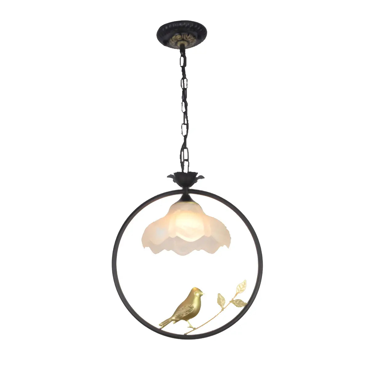 ZOWALA - Vintage Black-Gold Birdcage Floral Glass Pendant Light