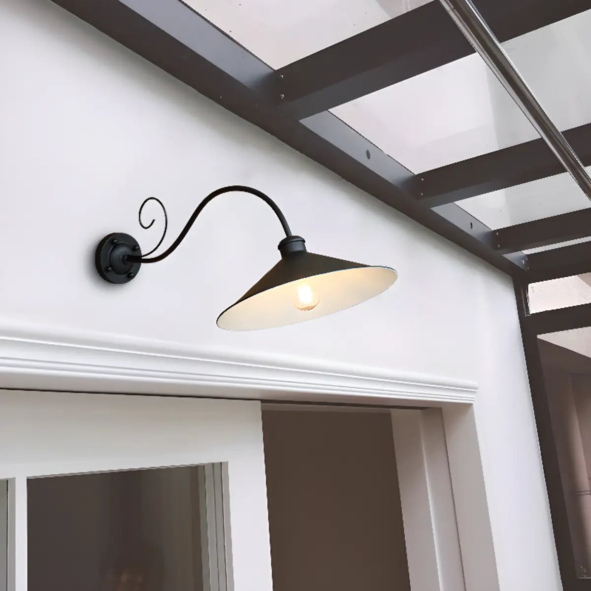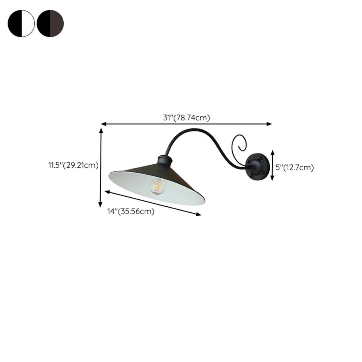 ZOWALA - Vintage Industrial Black Curved Outdoor Wall Light