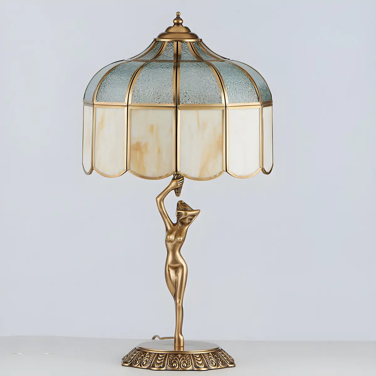 ZOWALA - Vintage Brass Figure Scalloped Dome Glass Table Light