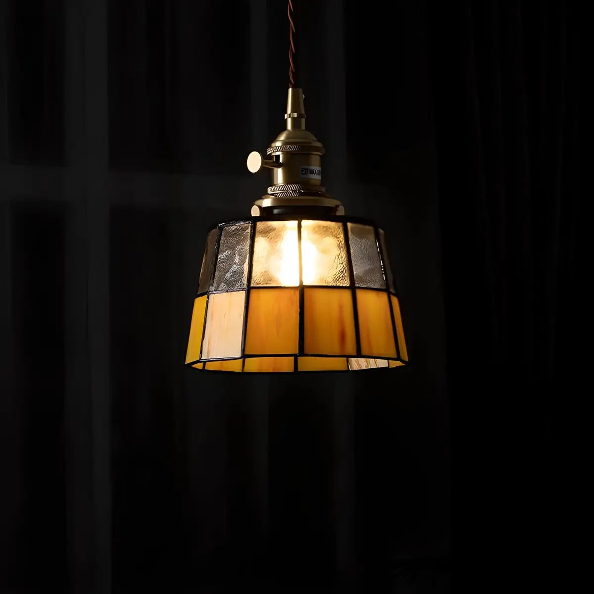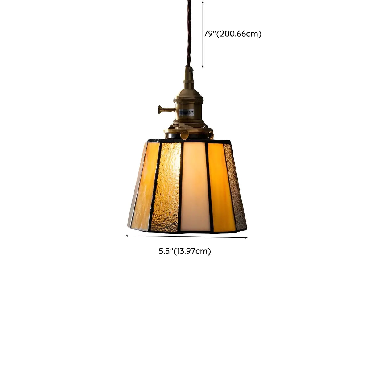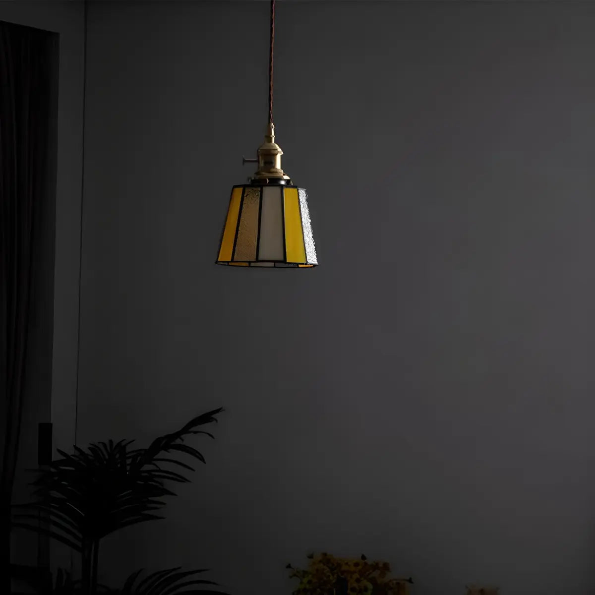 ZOWALA - Vintage Brass Yellow Glass Tapered Pendant Light
