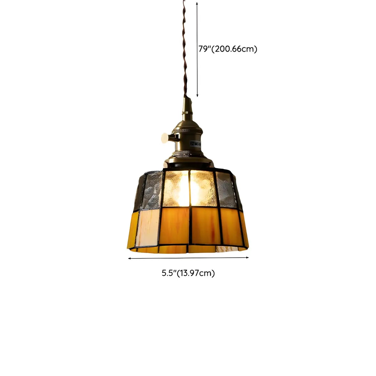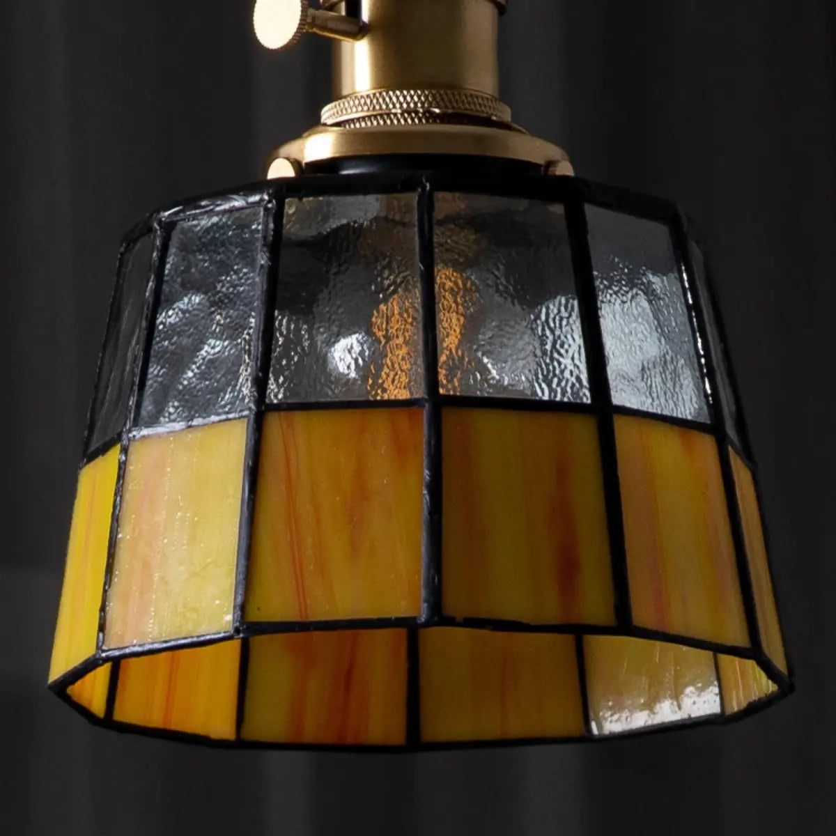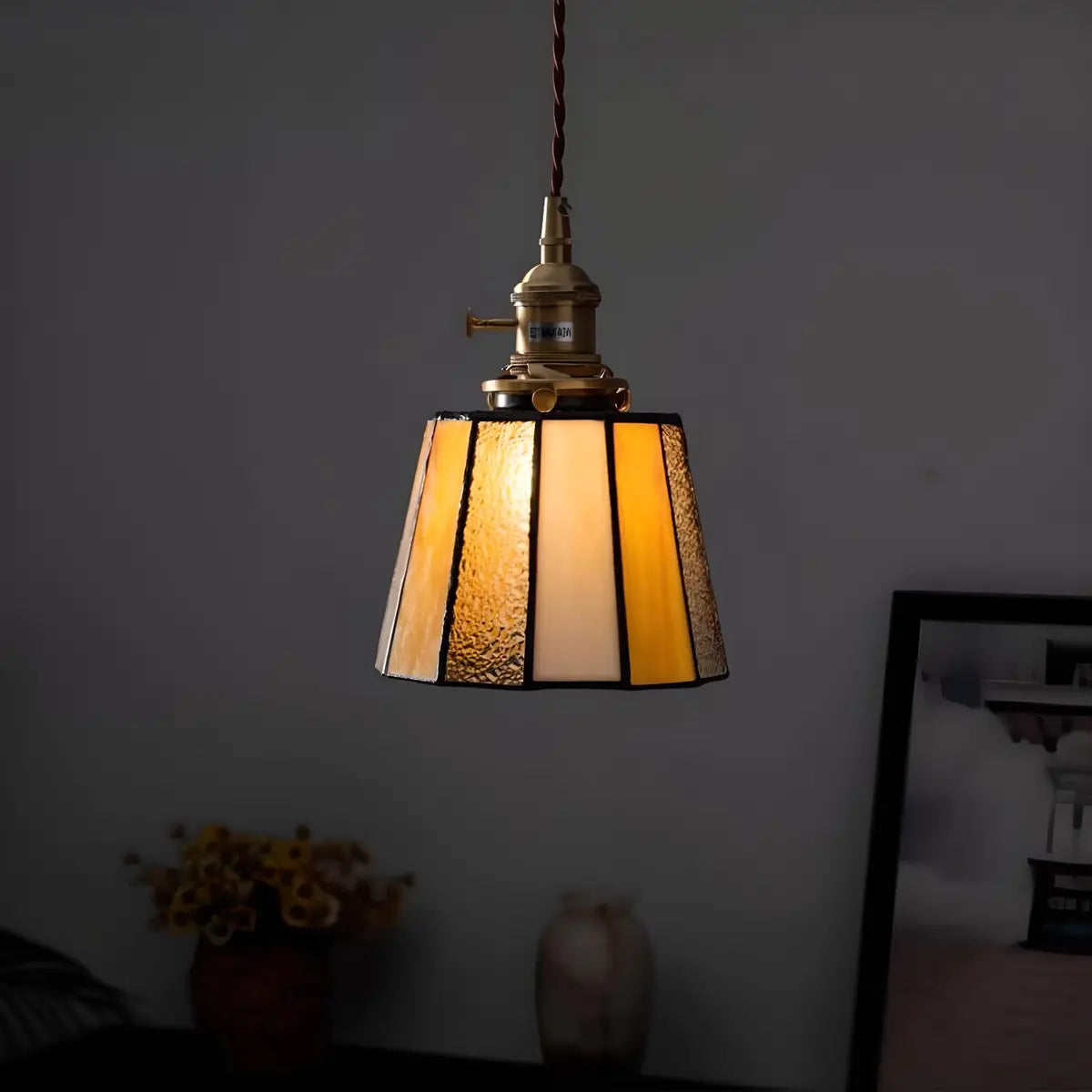 ZOWALA - Vintage Brass Yellow Glass Tapered Pendant Light