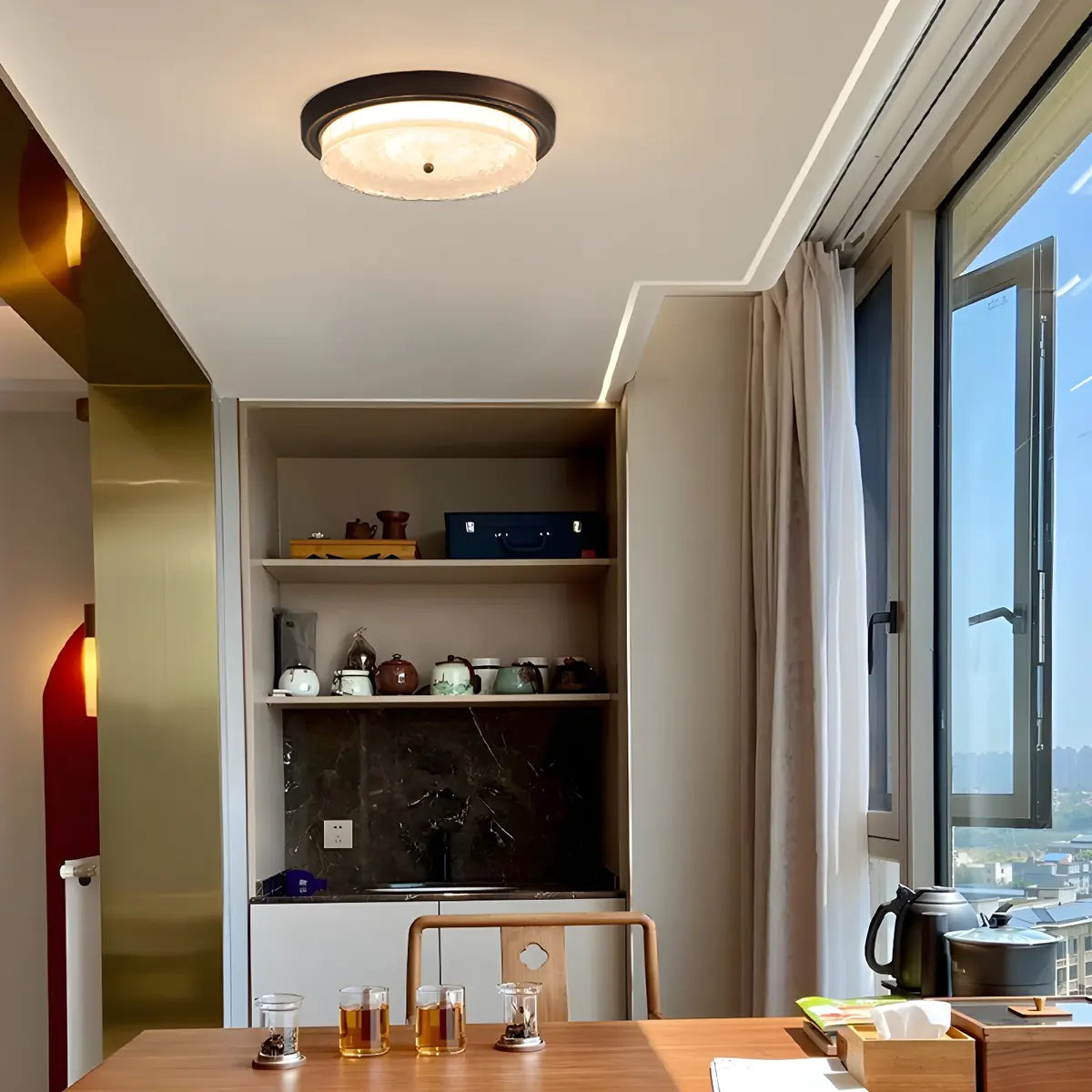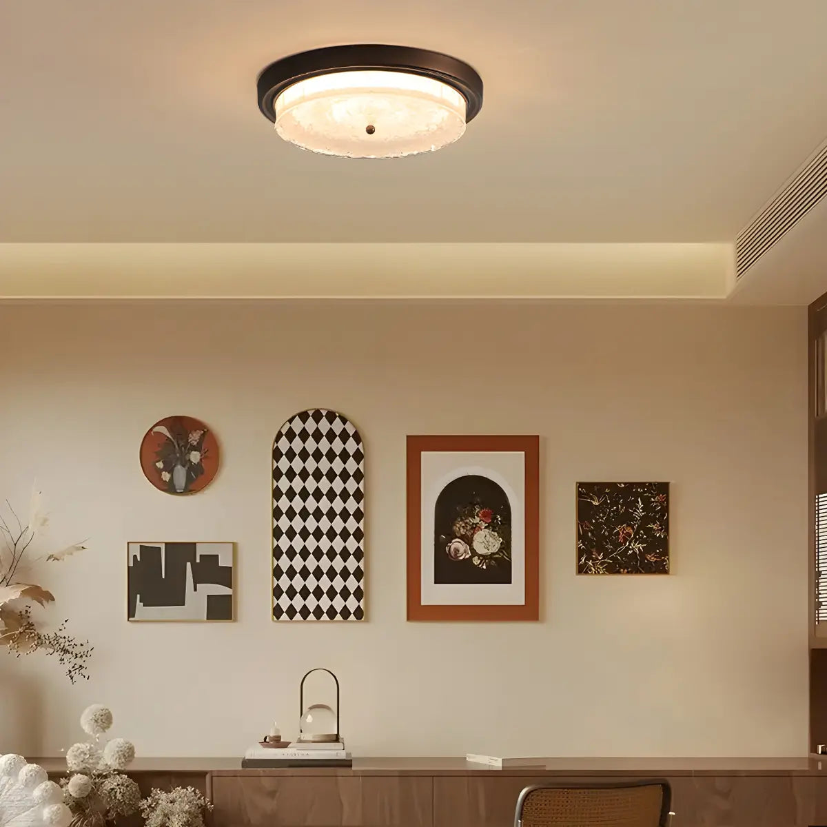 ZOWALA - Vintage Brown Round Glass Bedroom Flush Mount Light