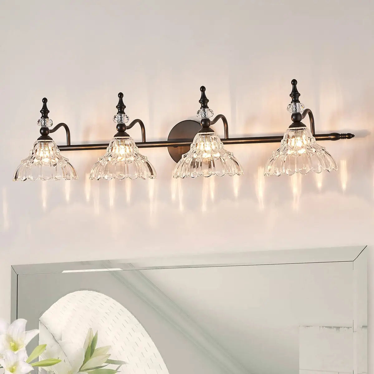 ZOWALA - Vintage Carved Flower Glass Black Vanity Light