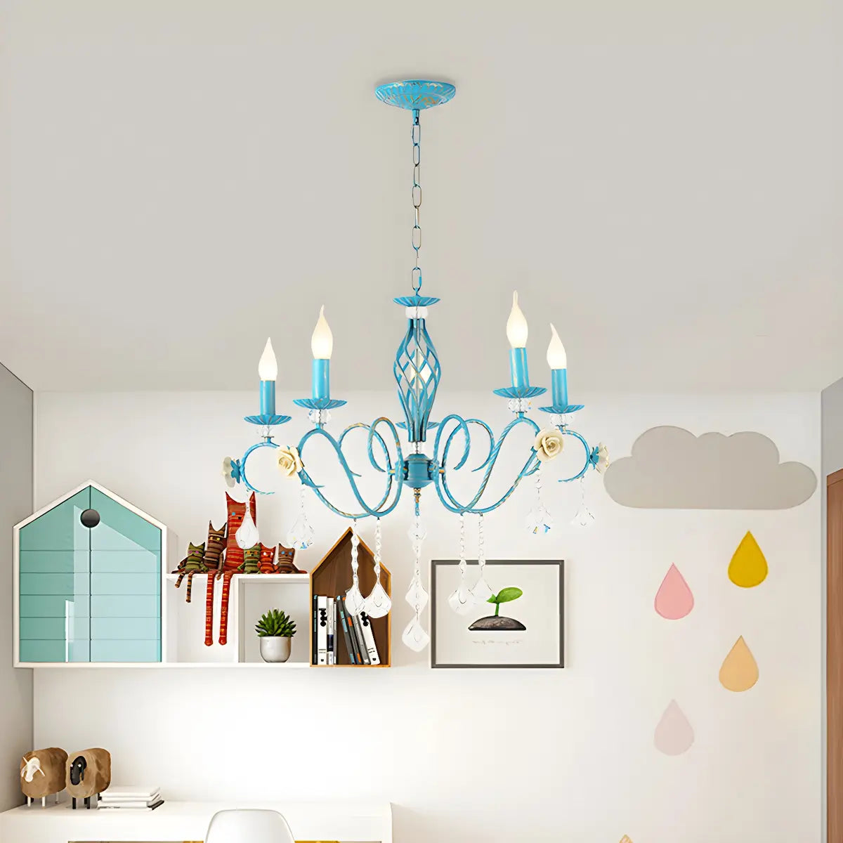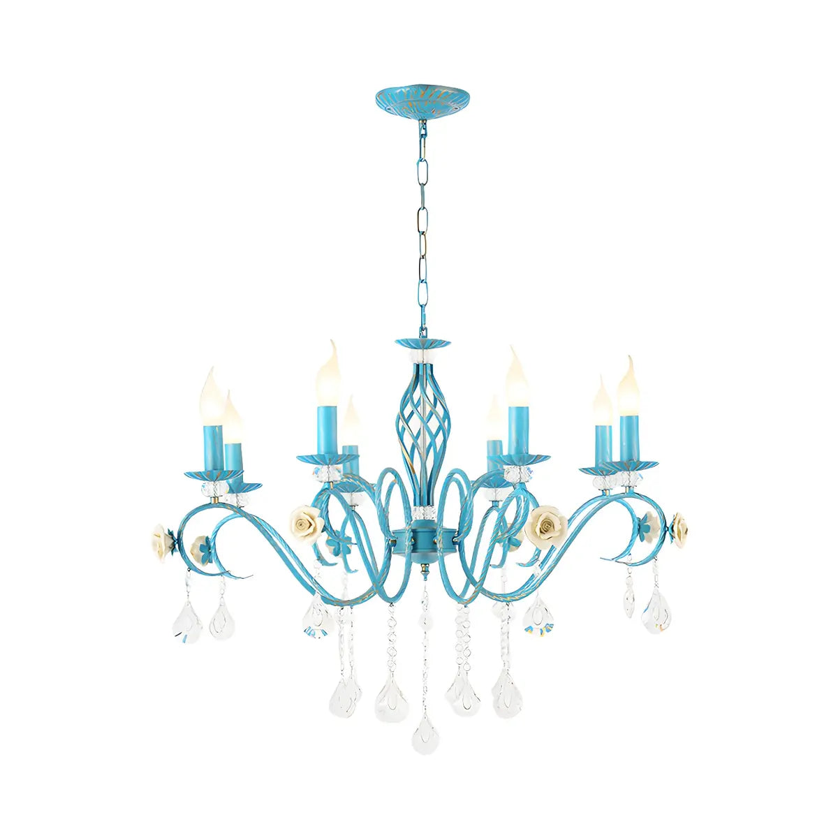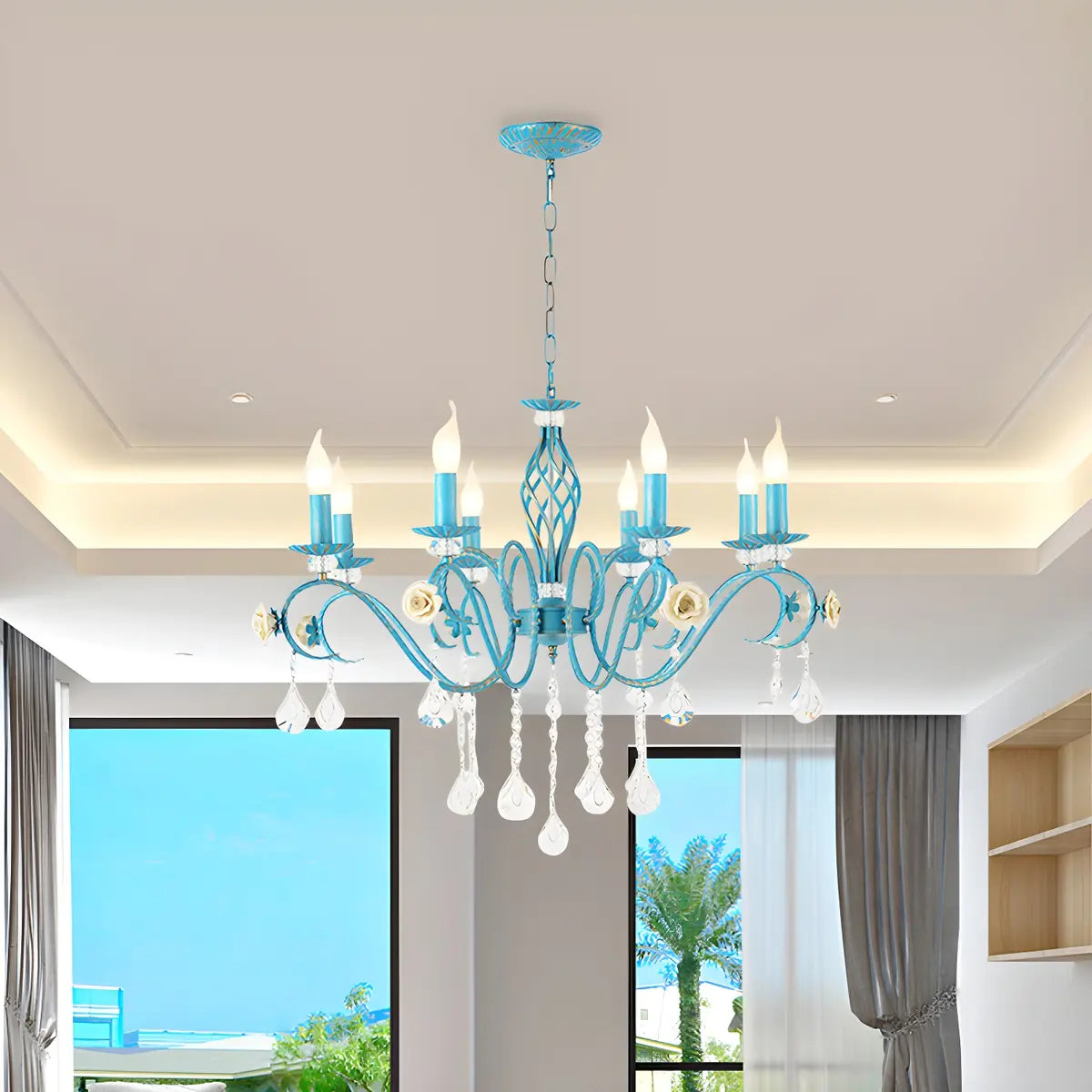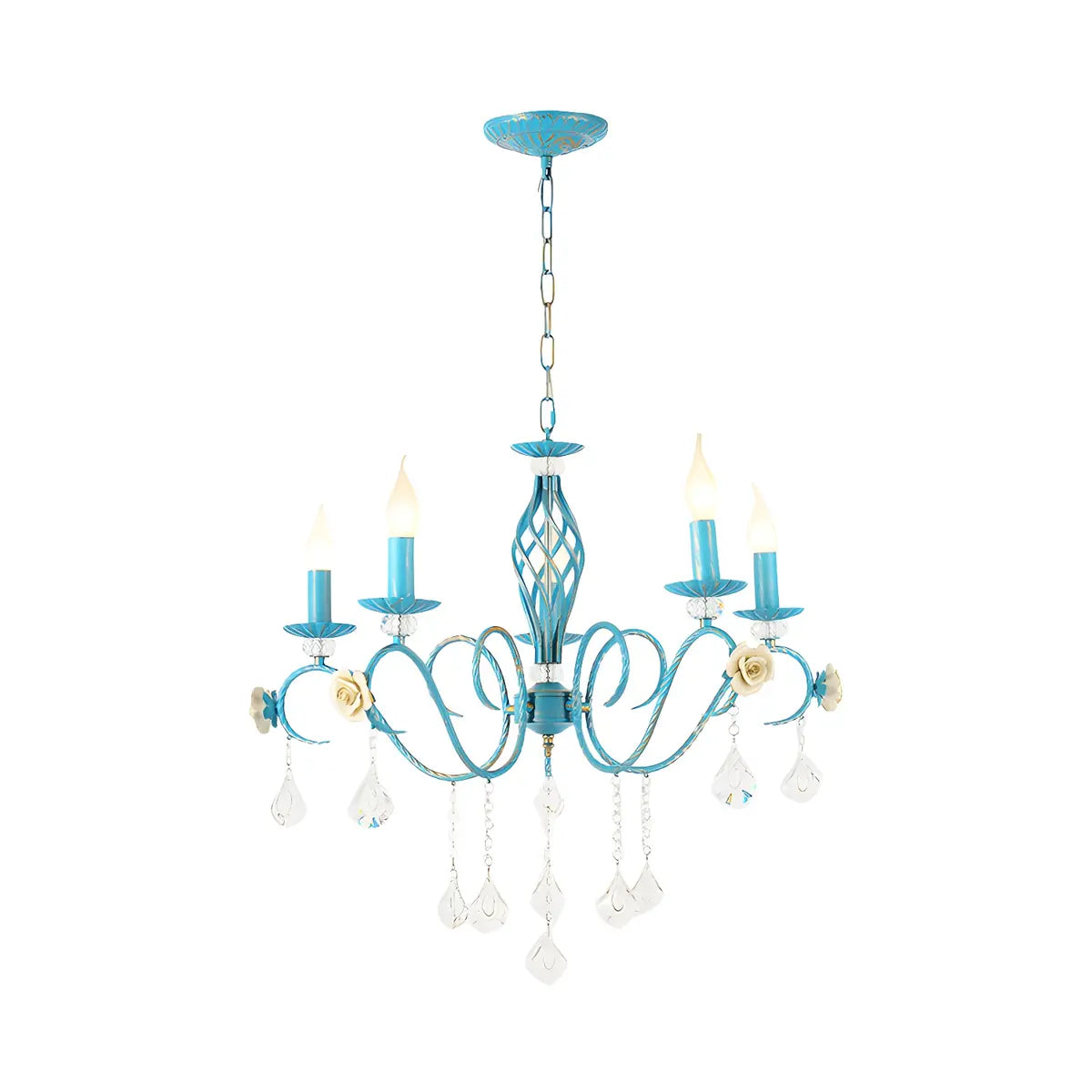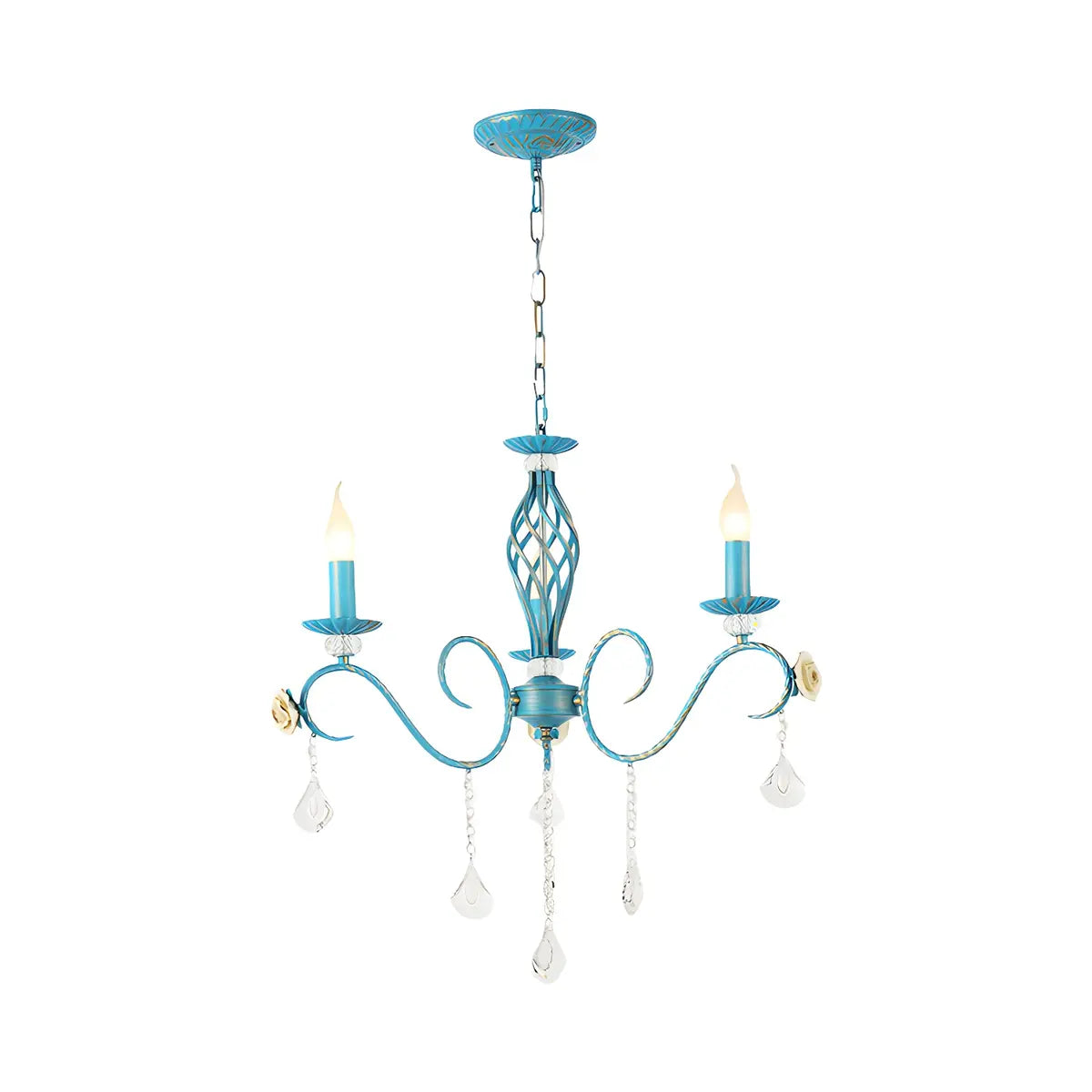 ZOWALA - Shabby Chic Blue Metal Candle Chandelier