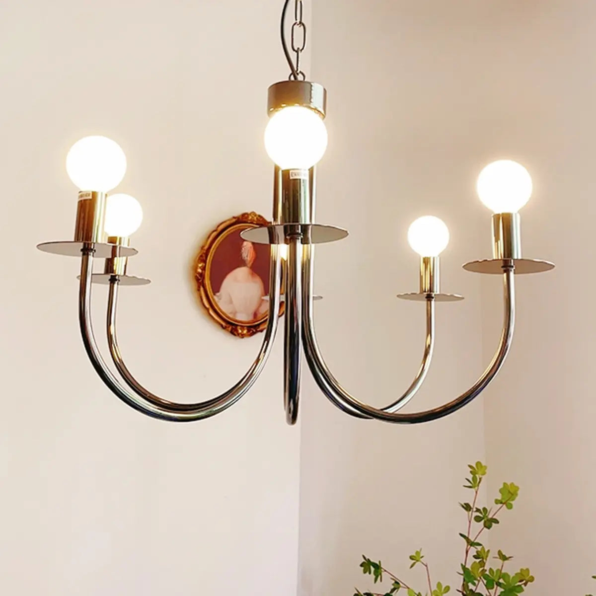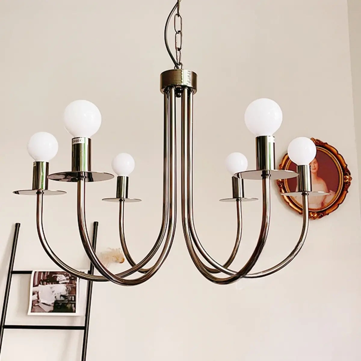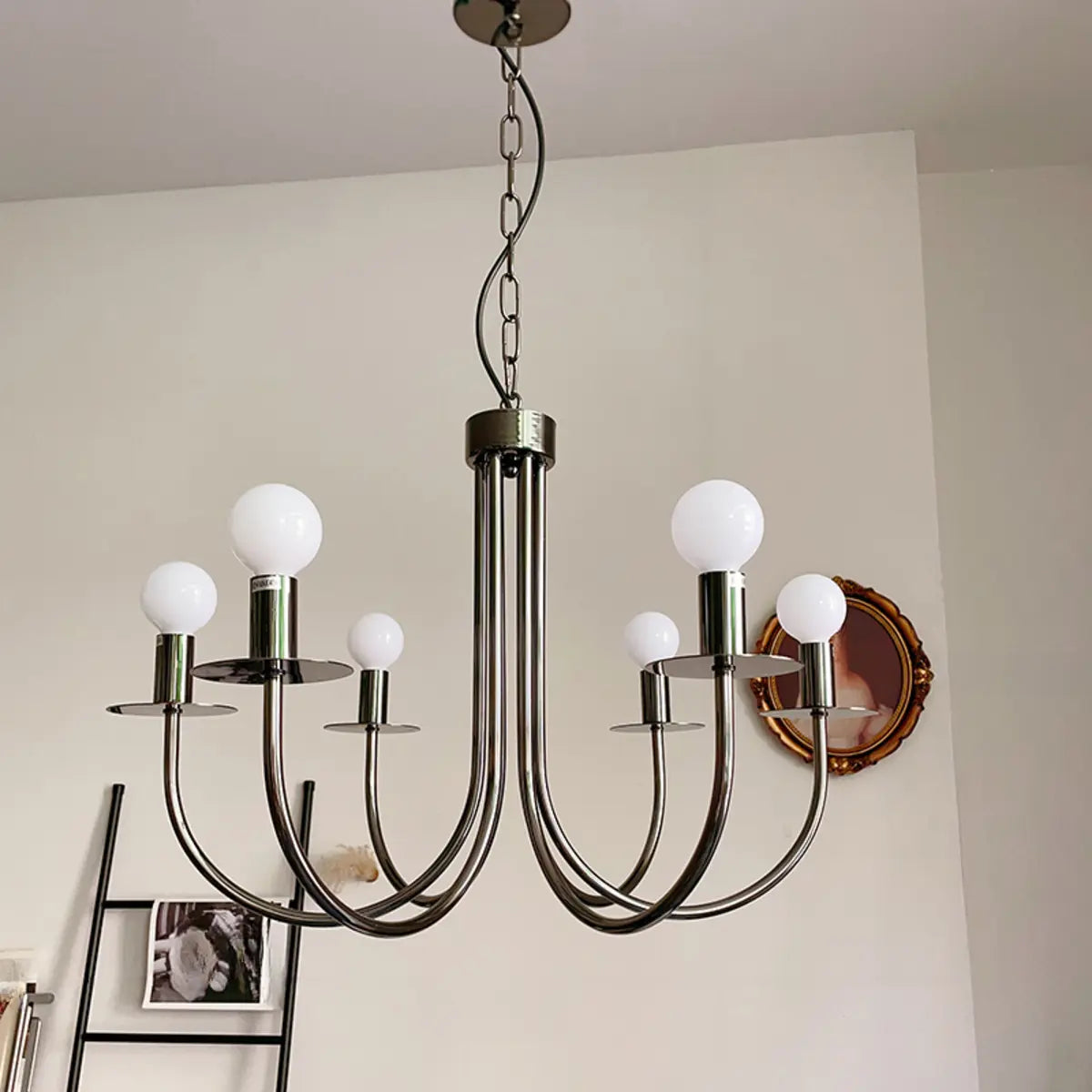 ZOWALA - Vintage Nickel Curve Arm Orb Candle Chandelier