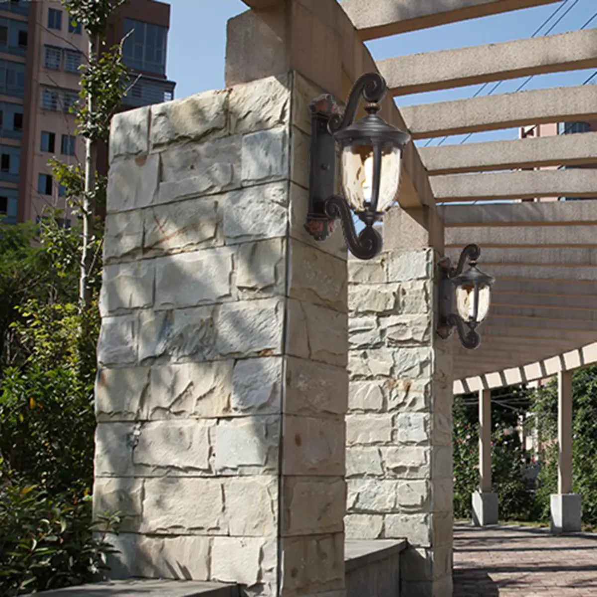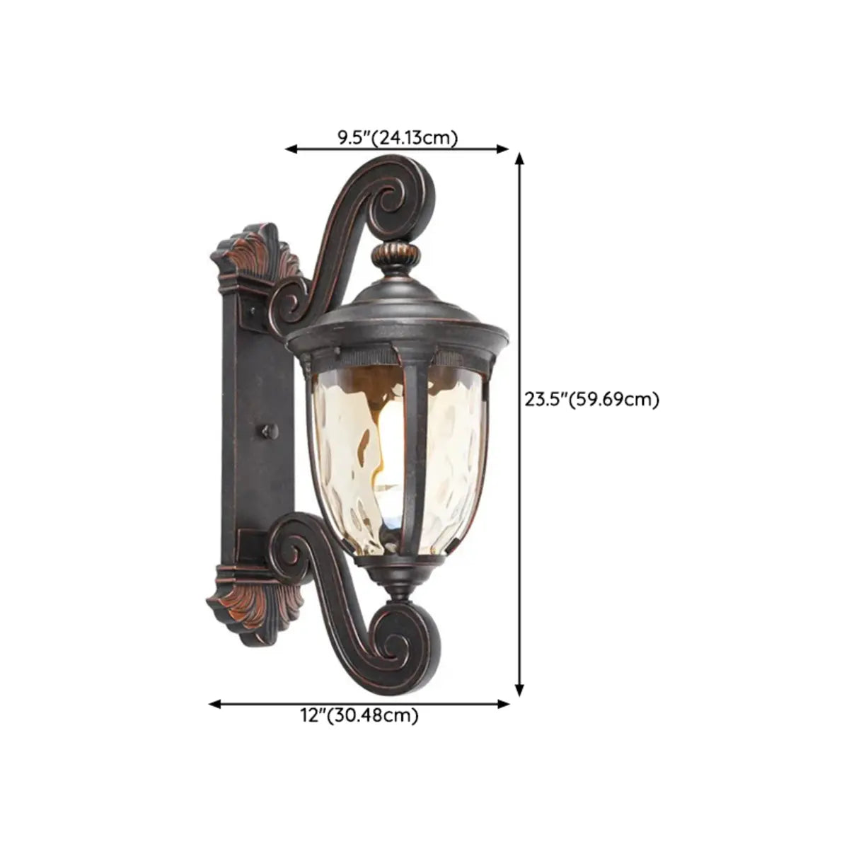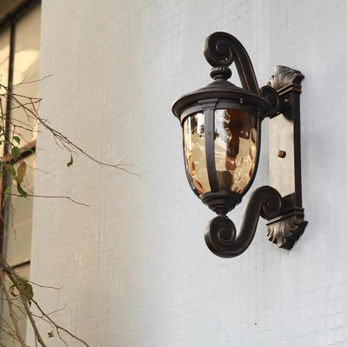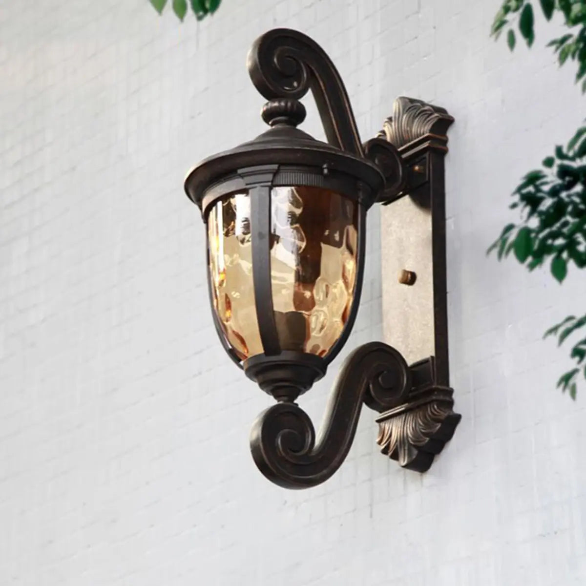 This vintage wall lamp perfectly combines elegant curves with a classic design, suitable for any exterior decoration style. The glass lampshade combined with bronze metal highlights a unique classical charm.