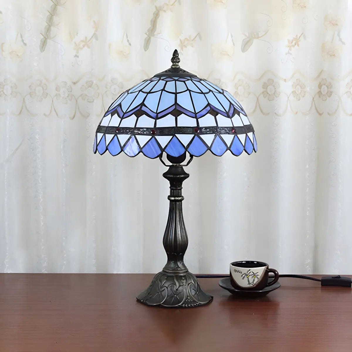 ZOWALA - Vintage Dome Bronze Metal Stained Glass Table Light