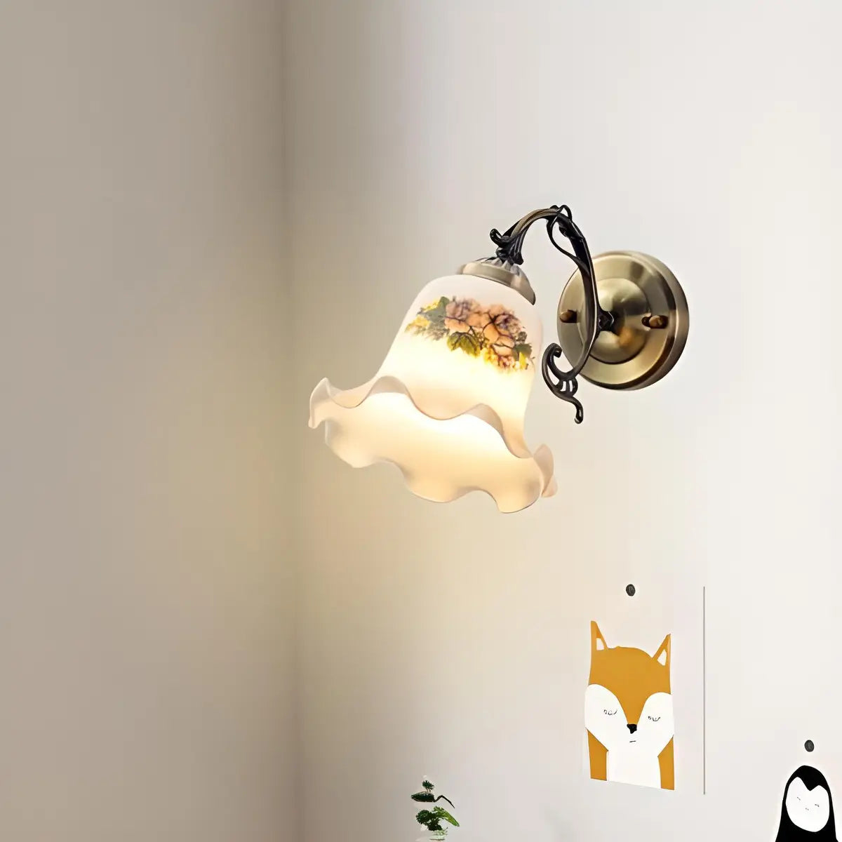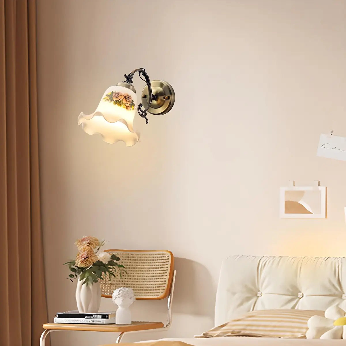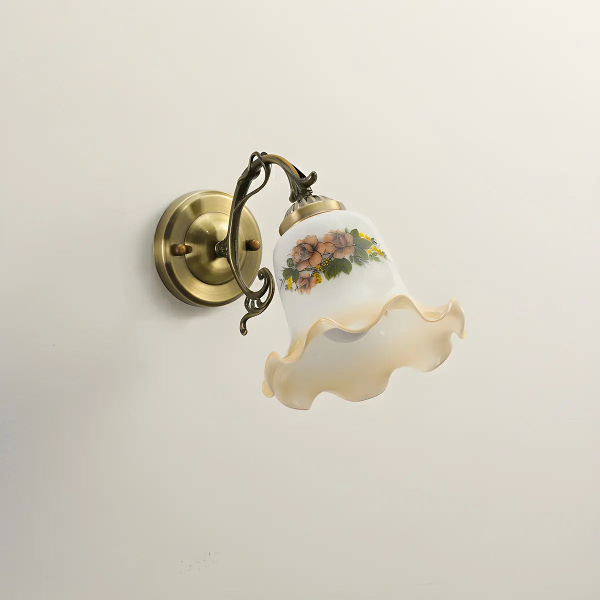 Combining traditional and modern design styles, this wall lamp features an elegant vintage floral white glass shade that provides soft and even lighting, perfect for creating a warm and peaceful atmosphere.