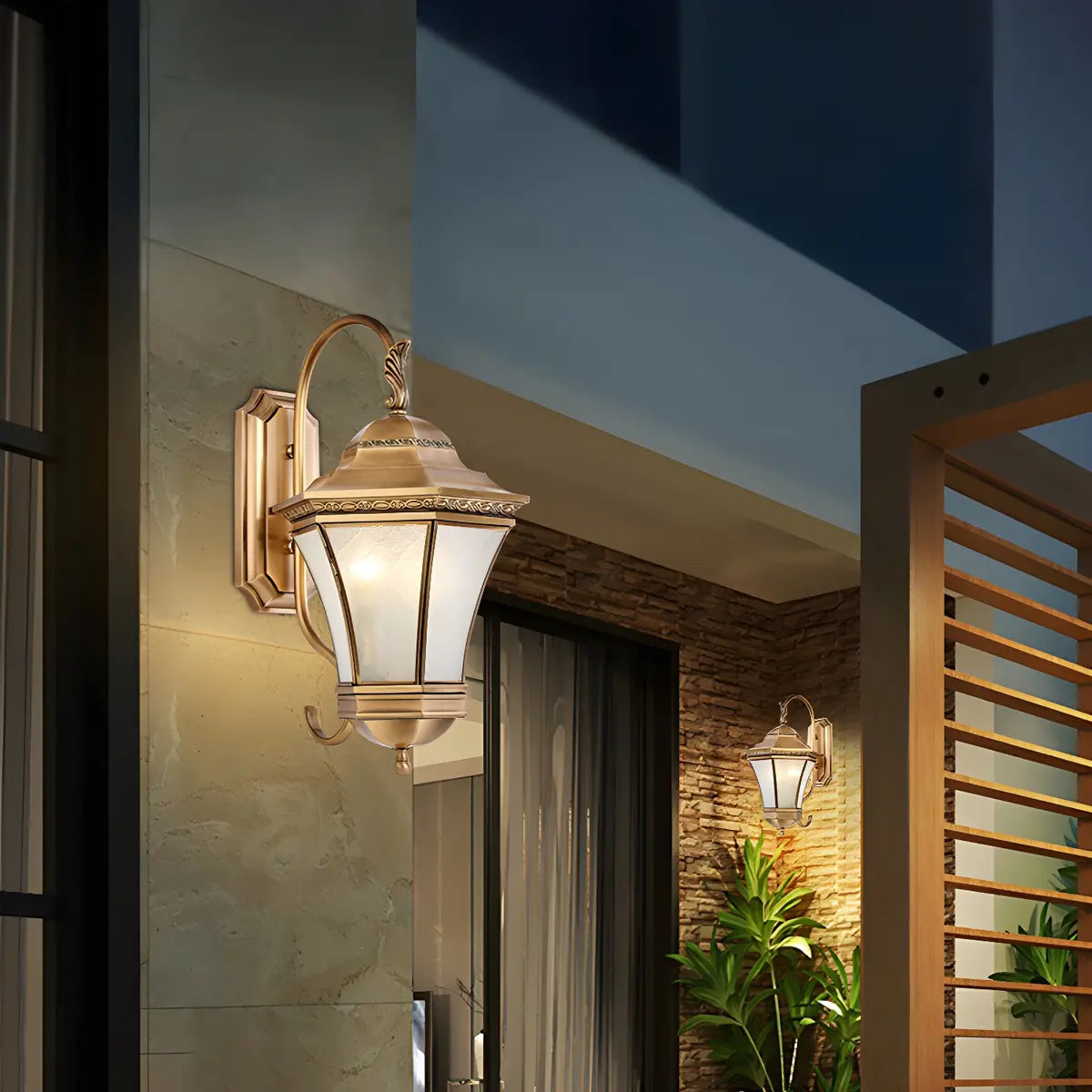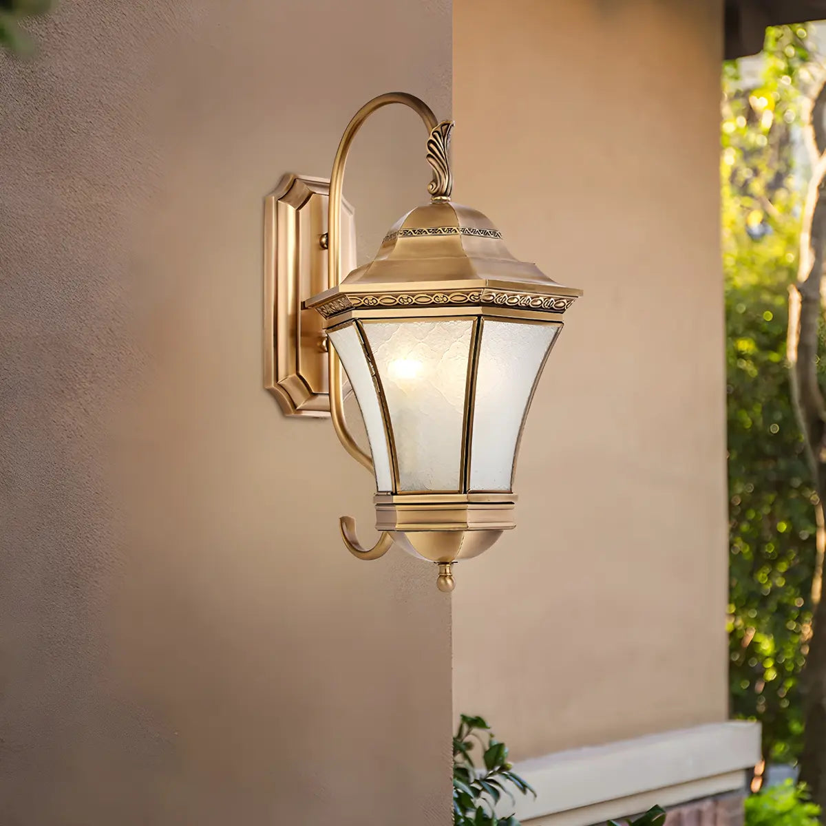 ZOWALA - Vintage Gold Glass Lantern LED Outdoor Wall Light