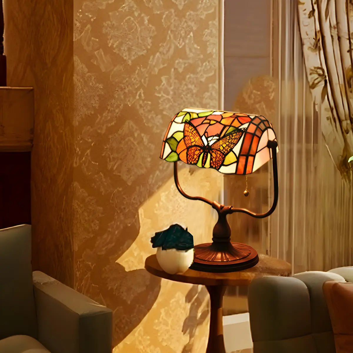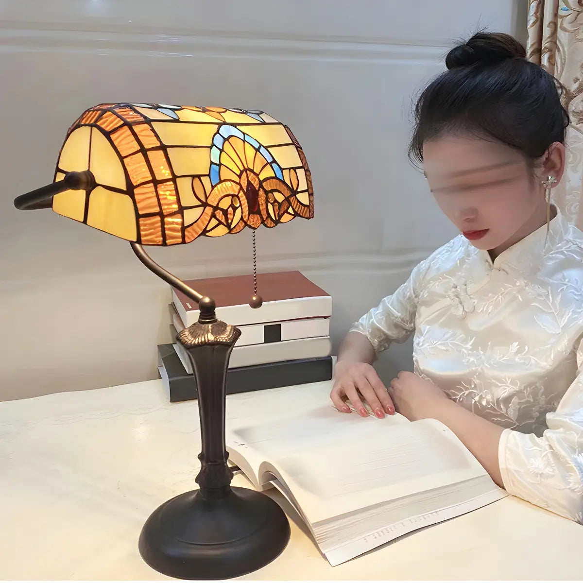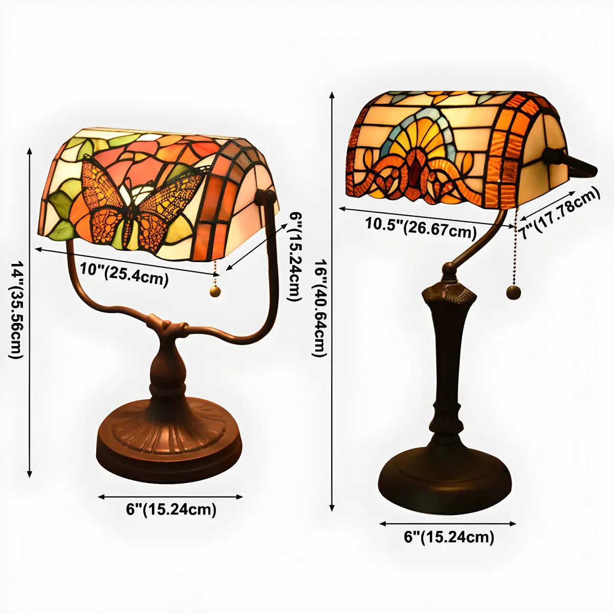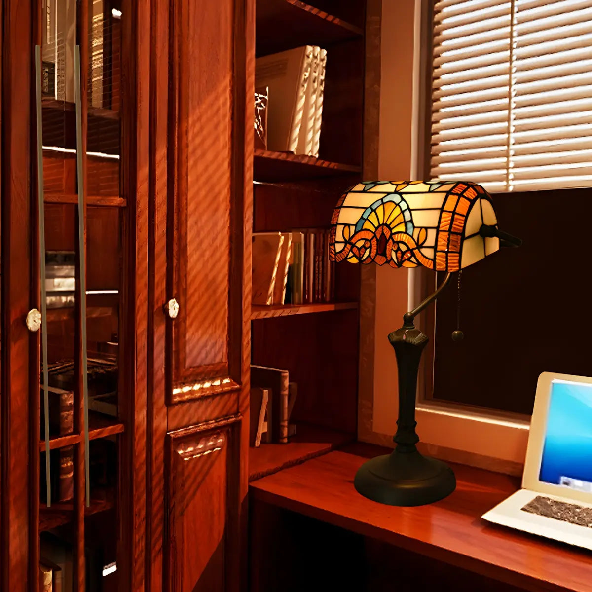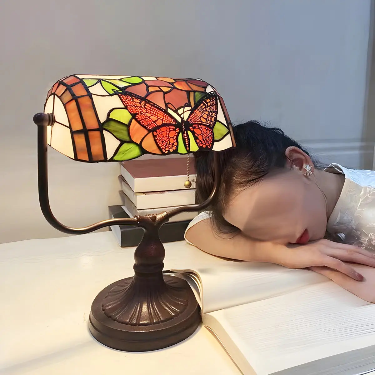 ZOWALA - Vintage Stained Glass Banker Table Lamp
