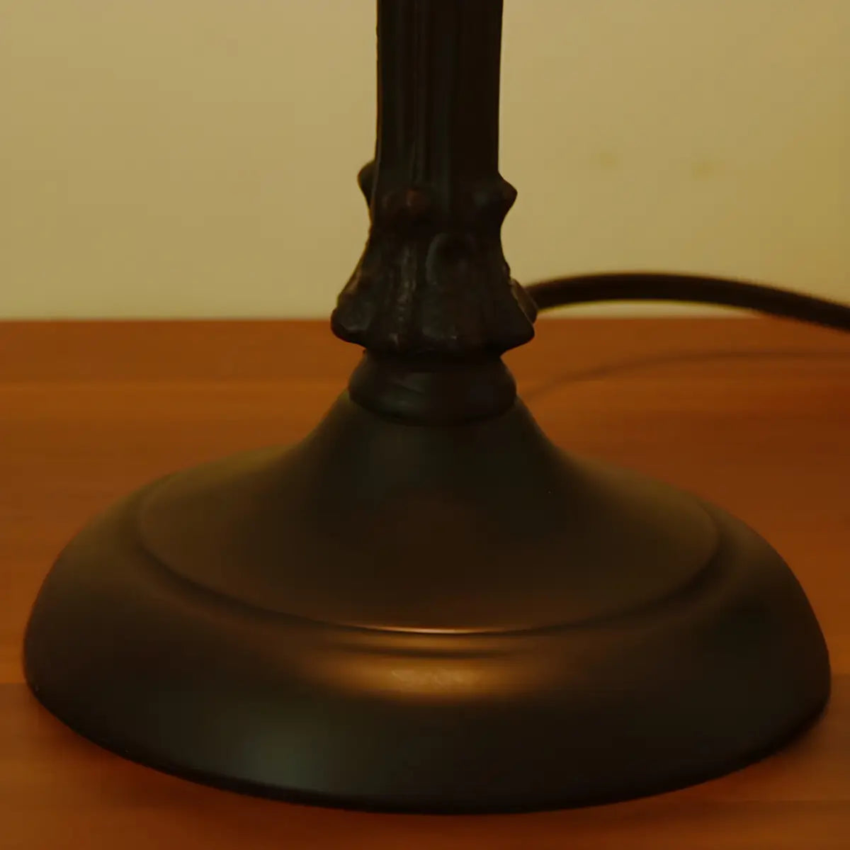 This Vintage-style table lamp, with its unique combination of colored glass shade and metal material, creates a classic and elegant visual effect.