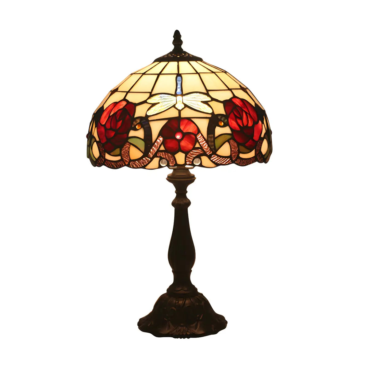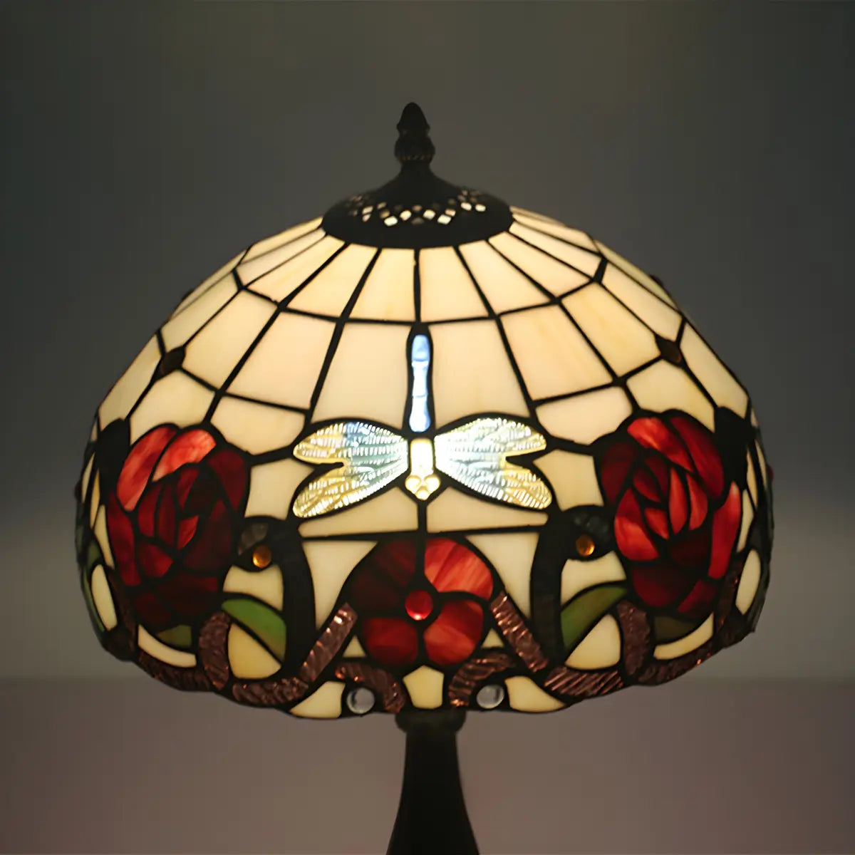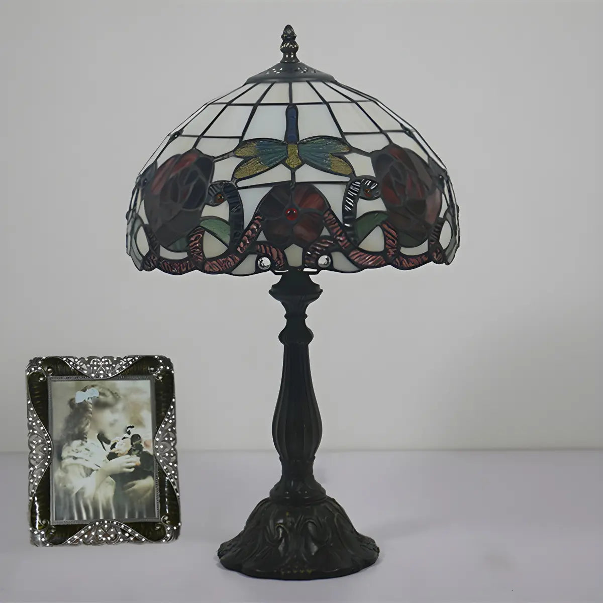 ZOWALA - Vintage Stained Glass Dome Dragonfly Table Lamp