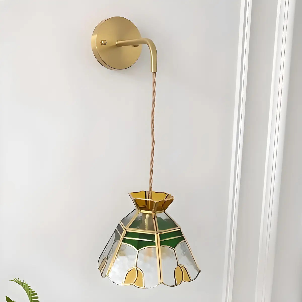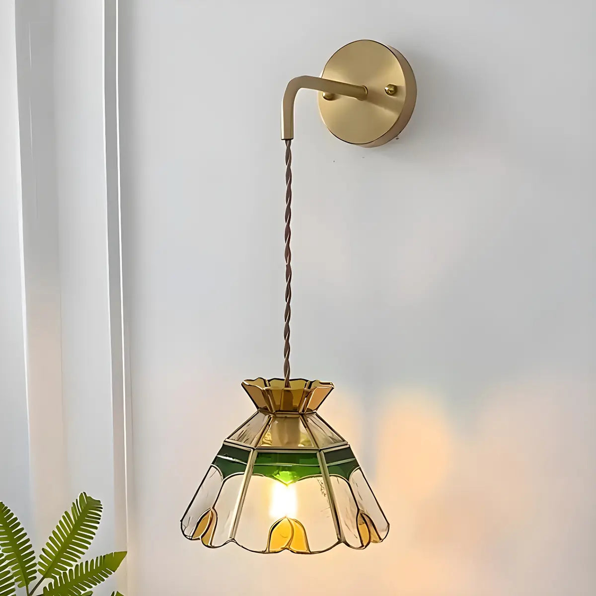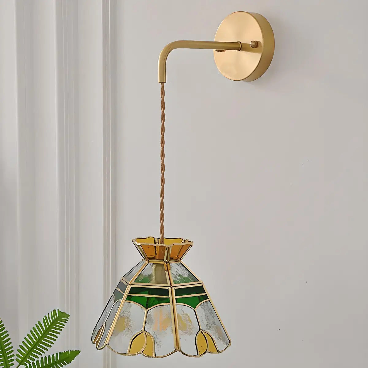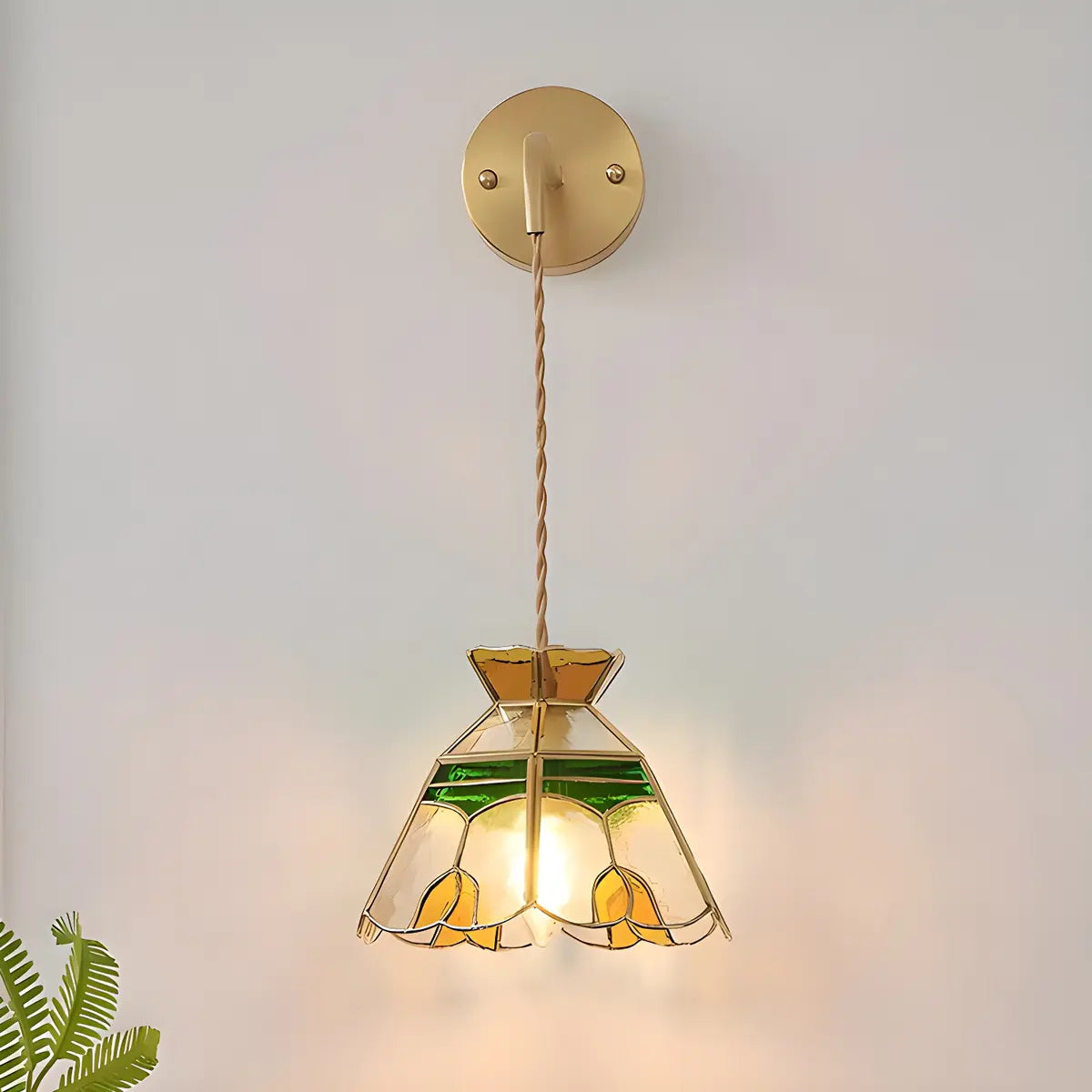 ZOWALA - Vintage Brass Stained Glass Floral Wall Light