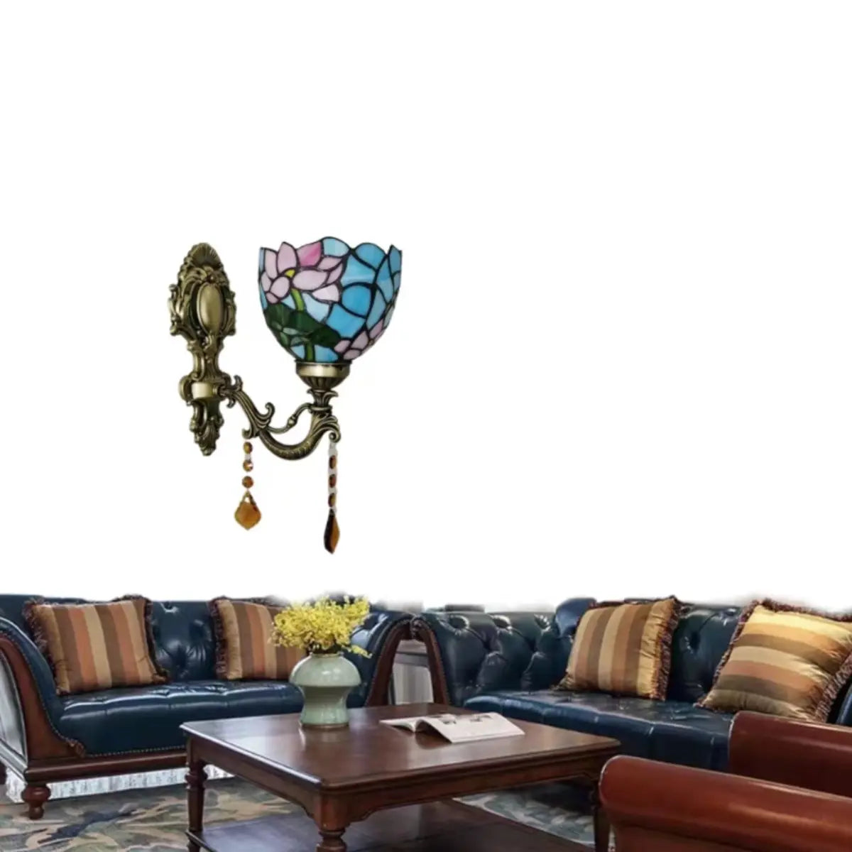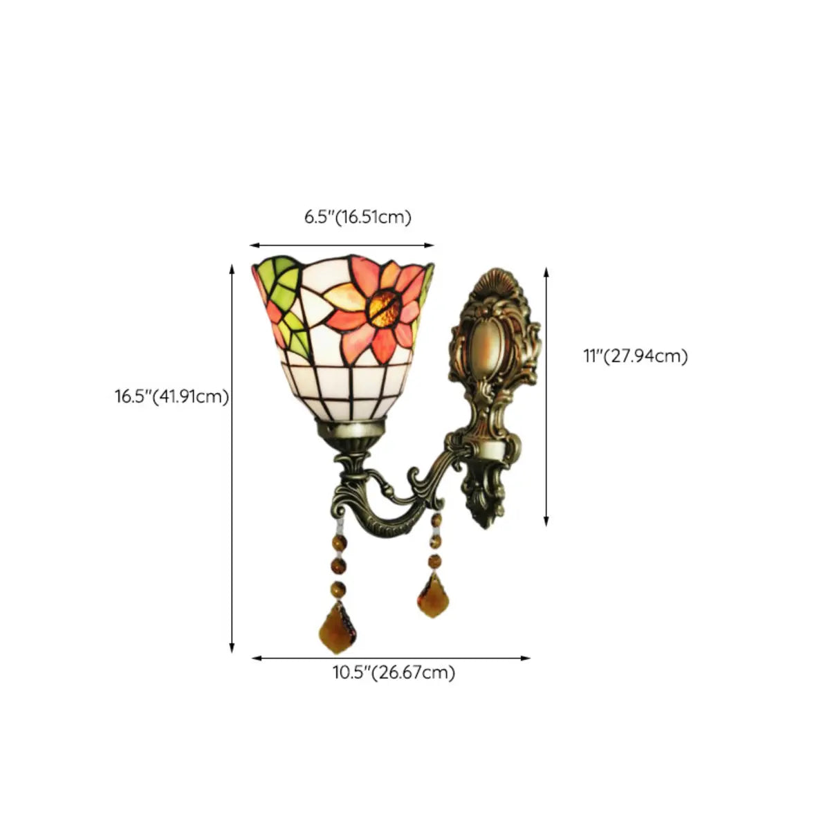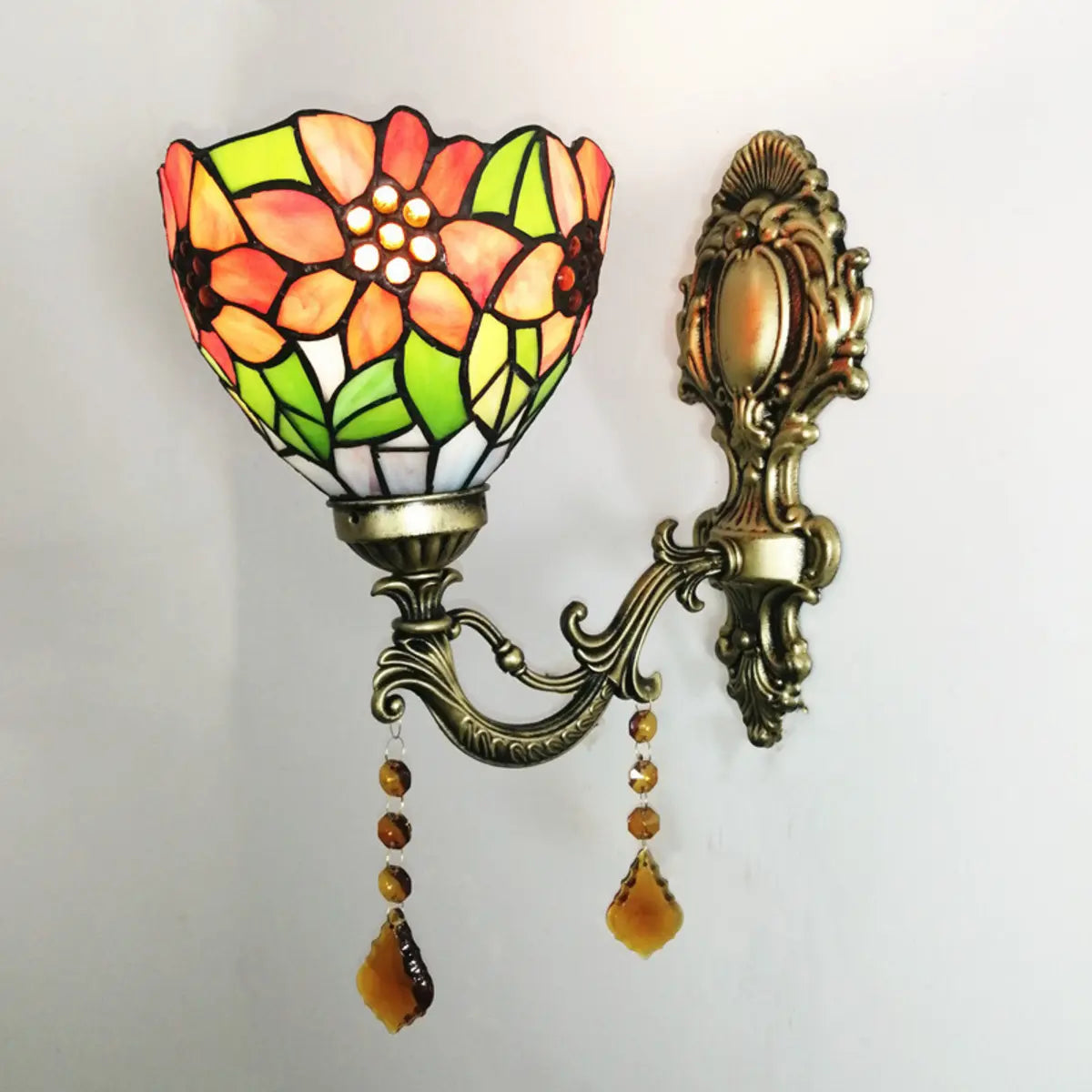 ZOWALA - Vintage Stained Glass Up Flower Wall Light