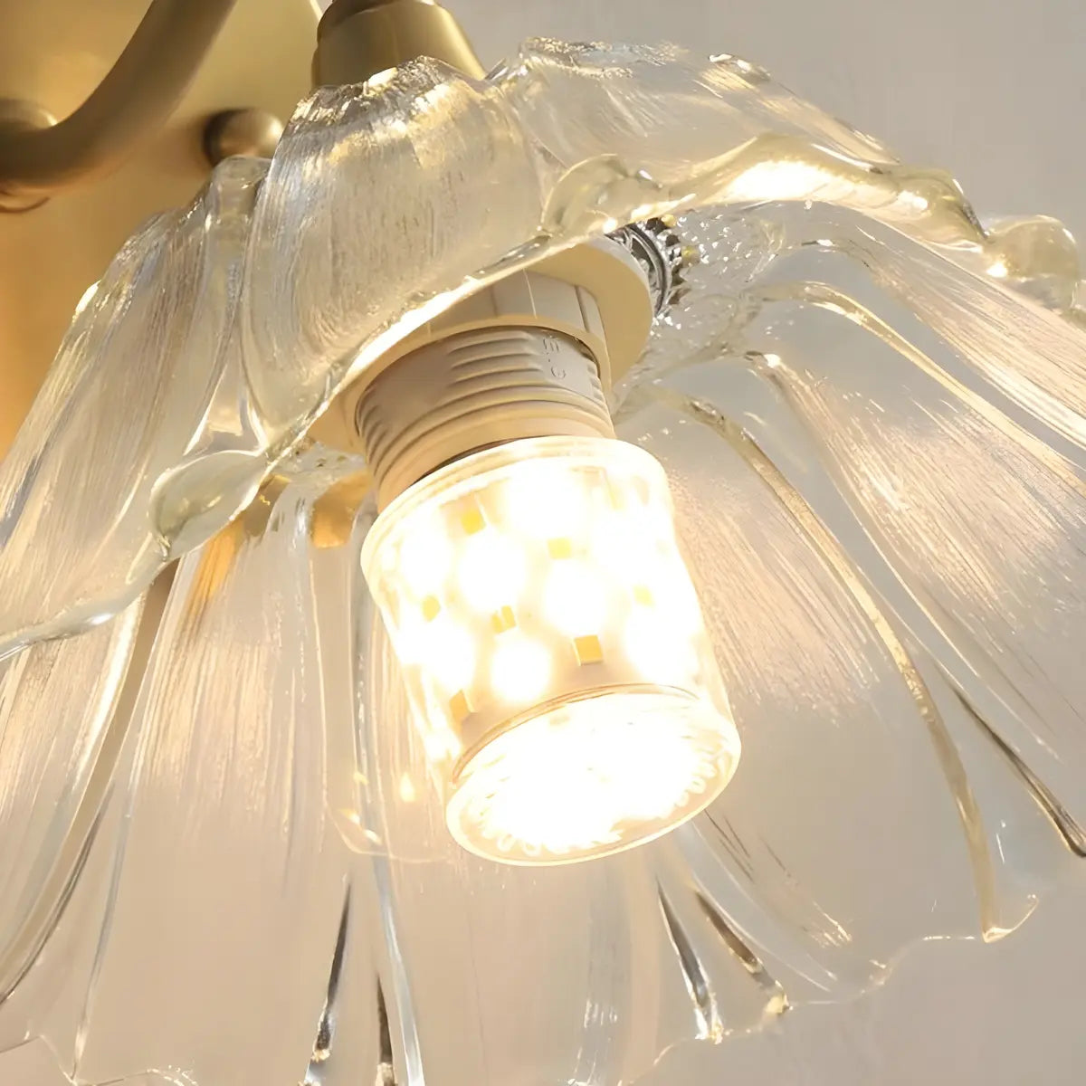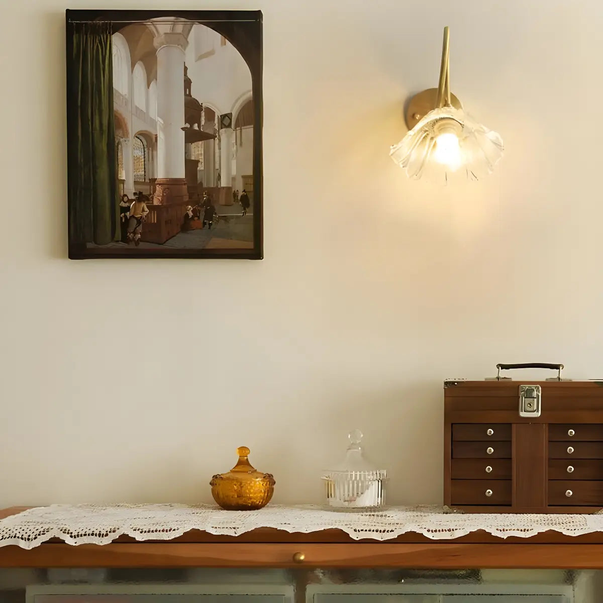 This retro-style glass vanity lamp, with its unique design and exquisite gold finish, adds an elegant glow to your home space. The lampshade utilizes an elegant petal shape, heightening an artistic atmosphere to the environment. Whether decorating the living room, bedroom or dining room, this wall lamp is the best choice to improve the beauty of the space.
