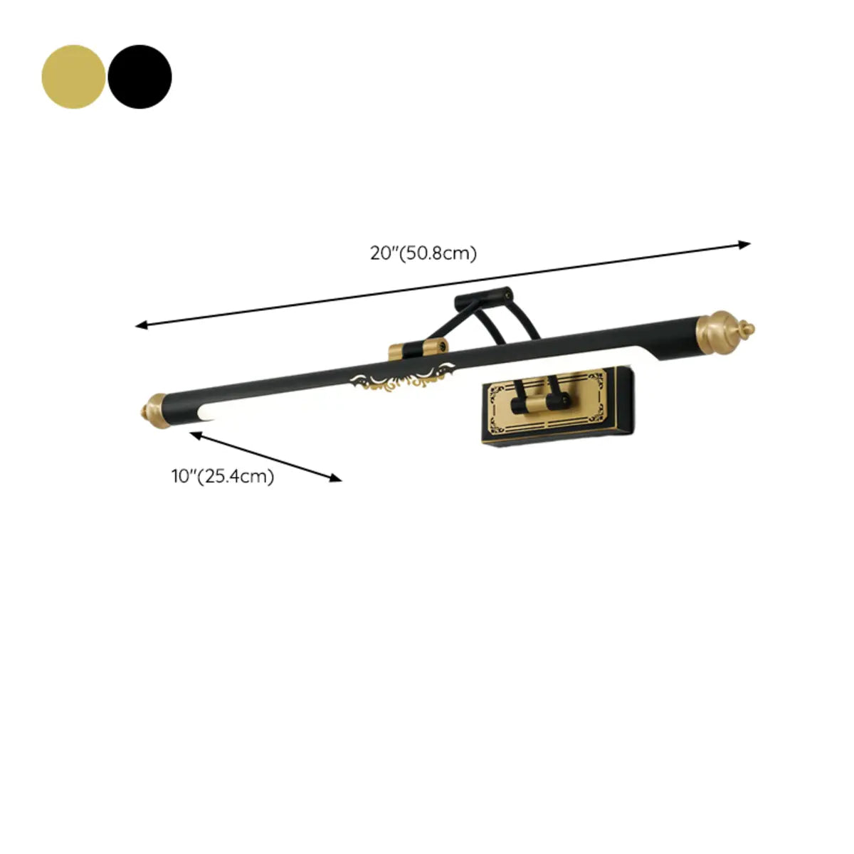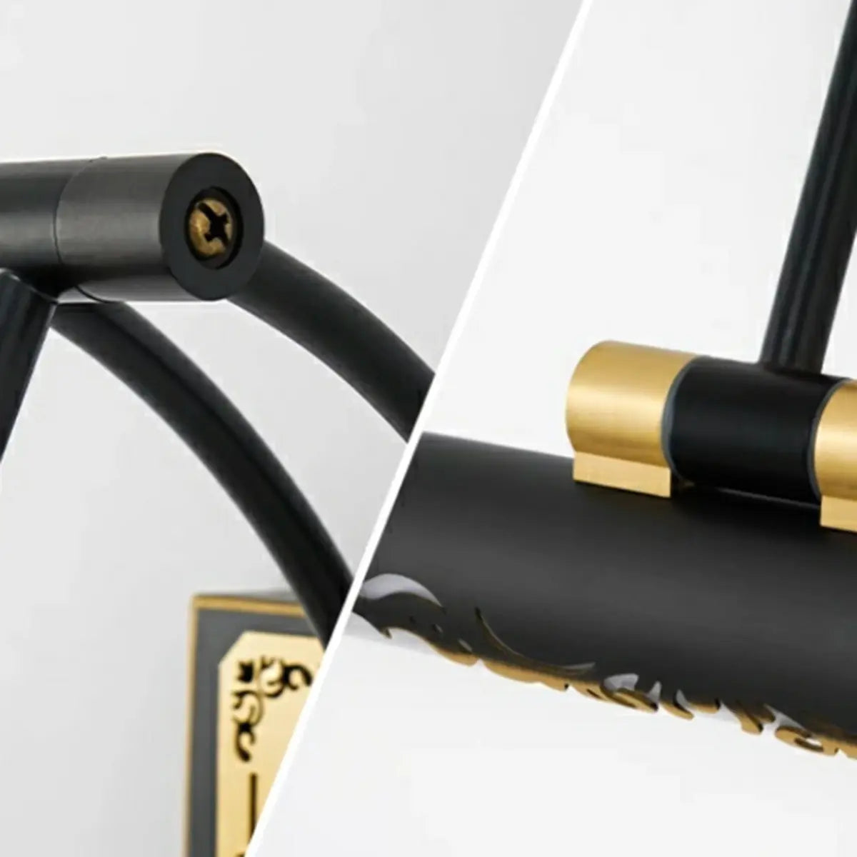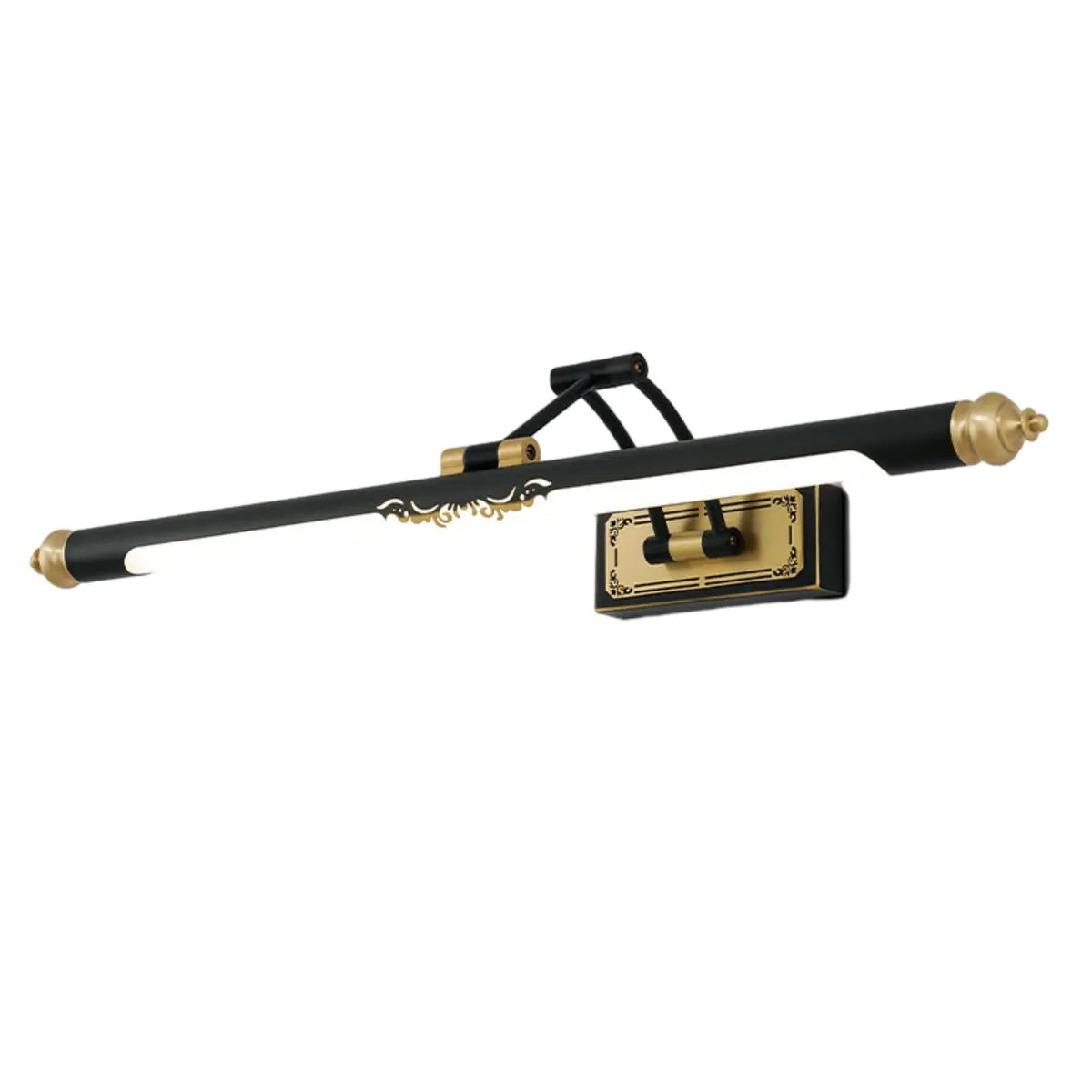 This vintage-style black vanity lamp adds elegance and artistic touches to your home decor. The lamp features high-quality brass and black finishes, highlighting its beautiful shape while increasing durability and stability. It is designed as a gallery light to highlight the details and colors of your wall art. Perfect for modern and traditional interiors.
