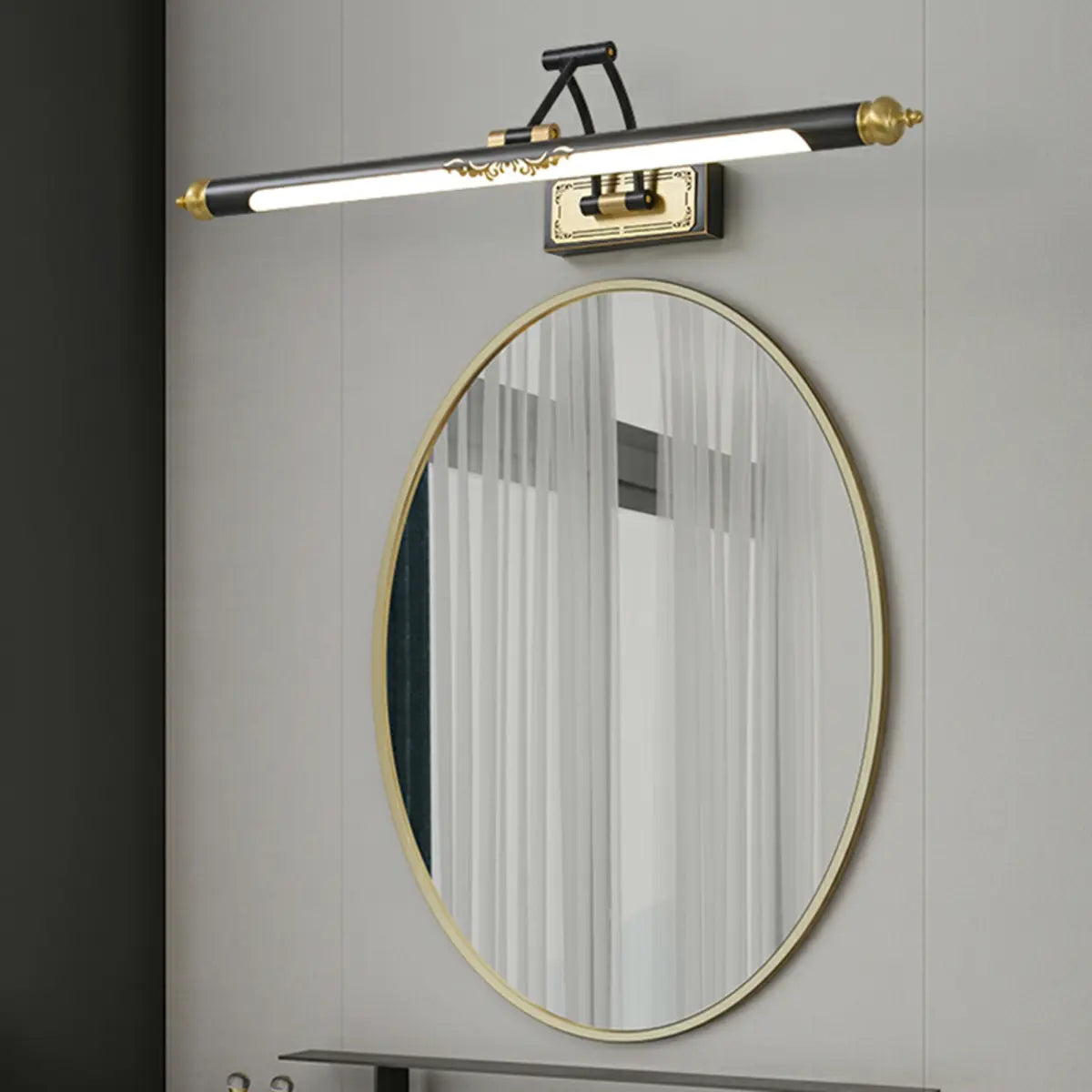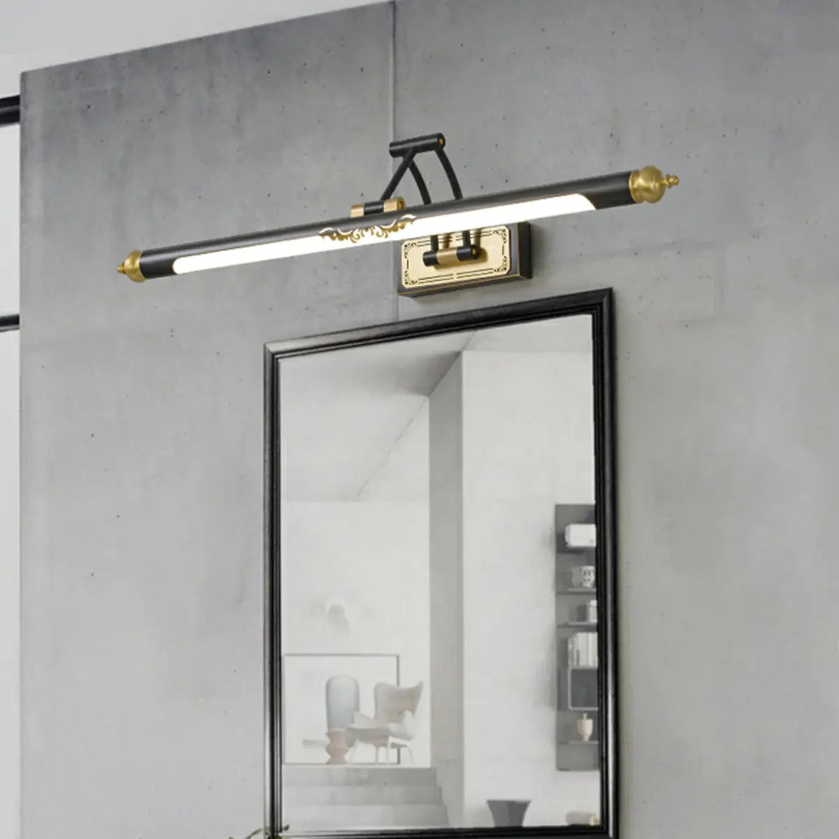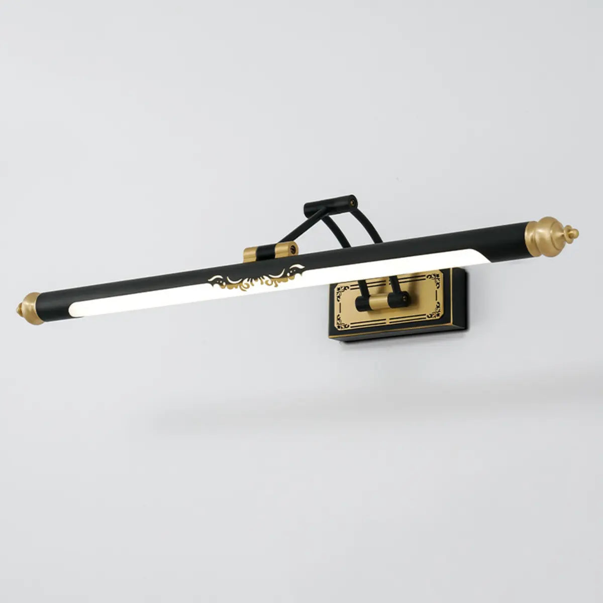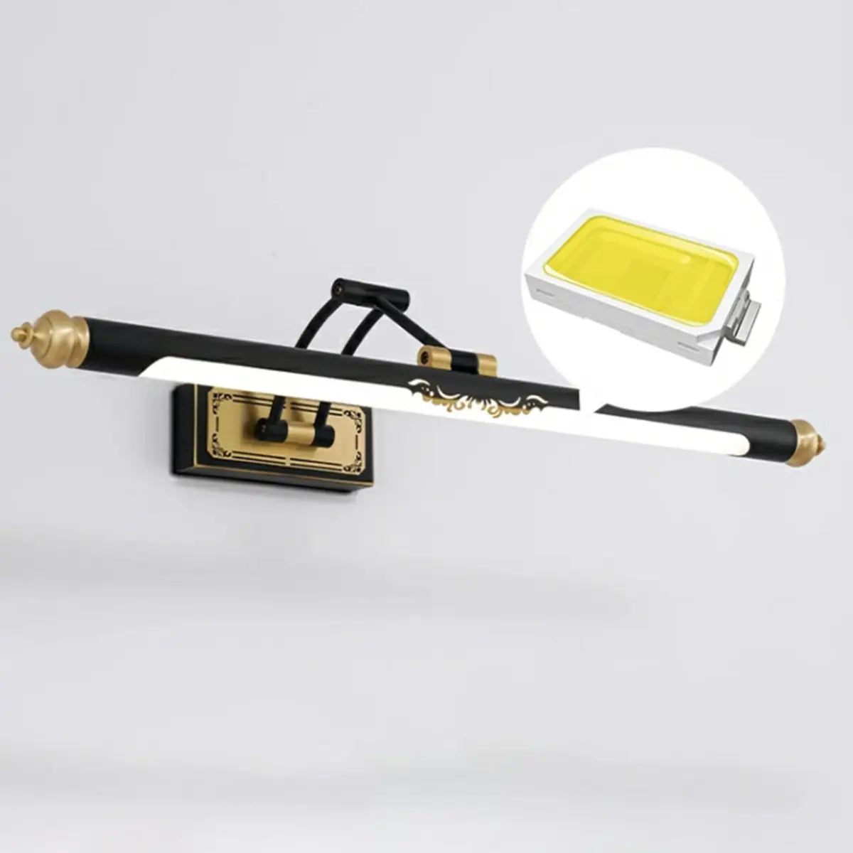 This vintage-style black vanity lamp adds elegance and artistic touches to your home decor. The lamp features high-quality brass and black finishes, highlighting its beautiful shape while increasing durability and stability. It is designed as a gallery light to highlight the details and colors of your wall art. Perfect for modern and traditional interiors.
